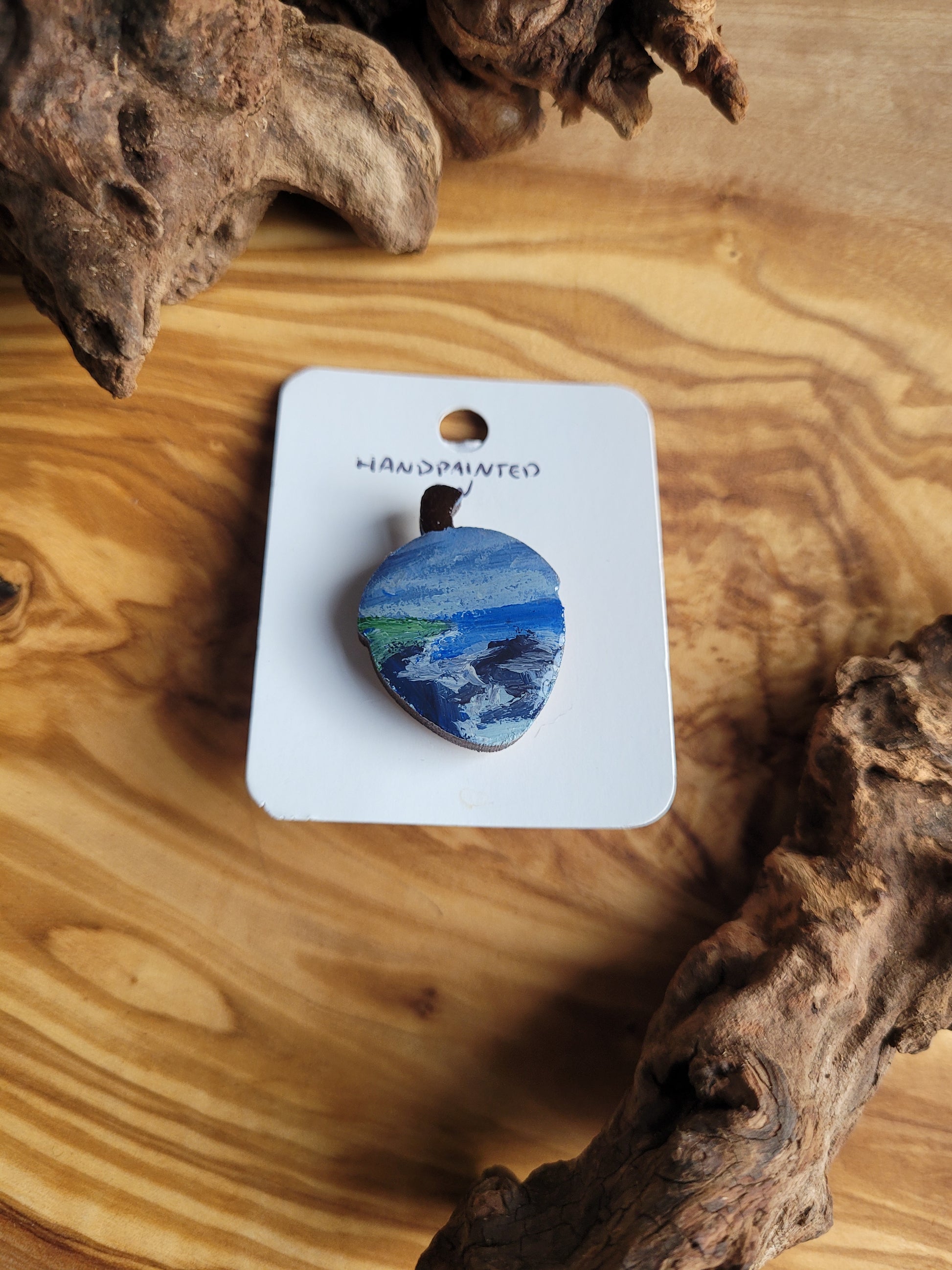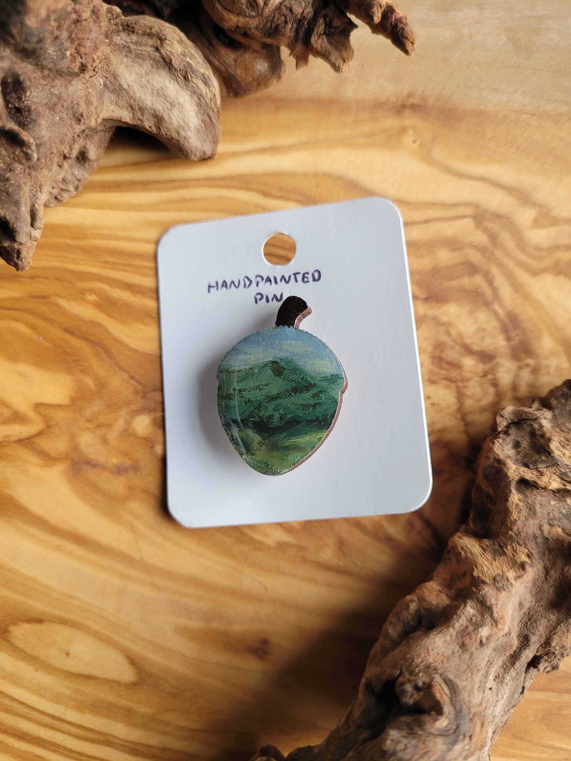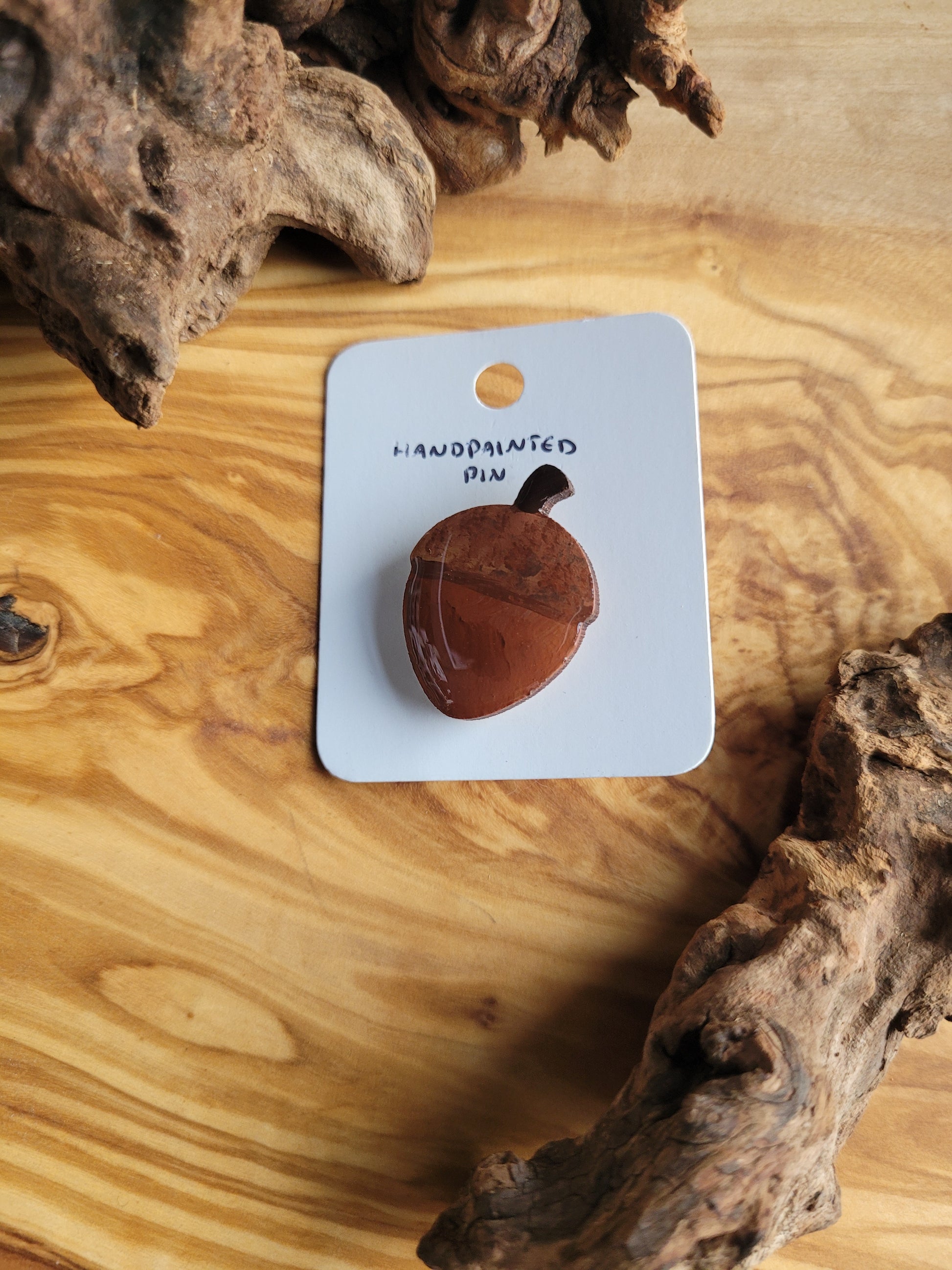 I paint each Acorn pin by hand onto wood, then finish it with a glossy resin varnish to help it shine and stay protected for years to come. Each one is about 3 cm in size, just the right little companion for your jacket, bag, or pin board.