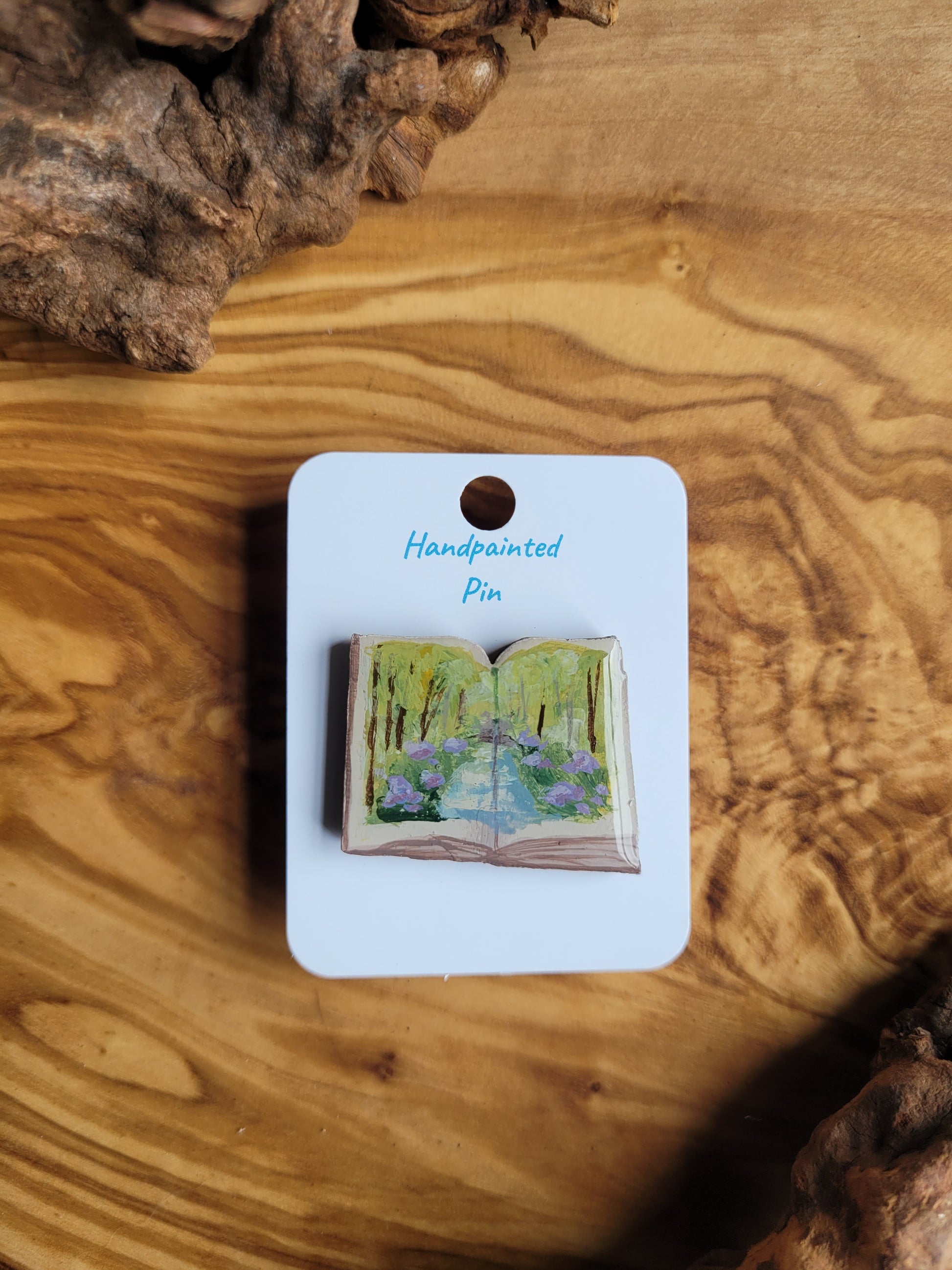 Little Book Pins – Original Hand-Painted Wooden Pins
