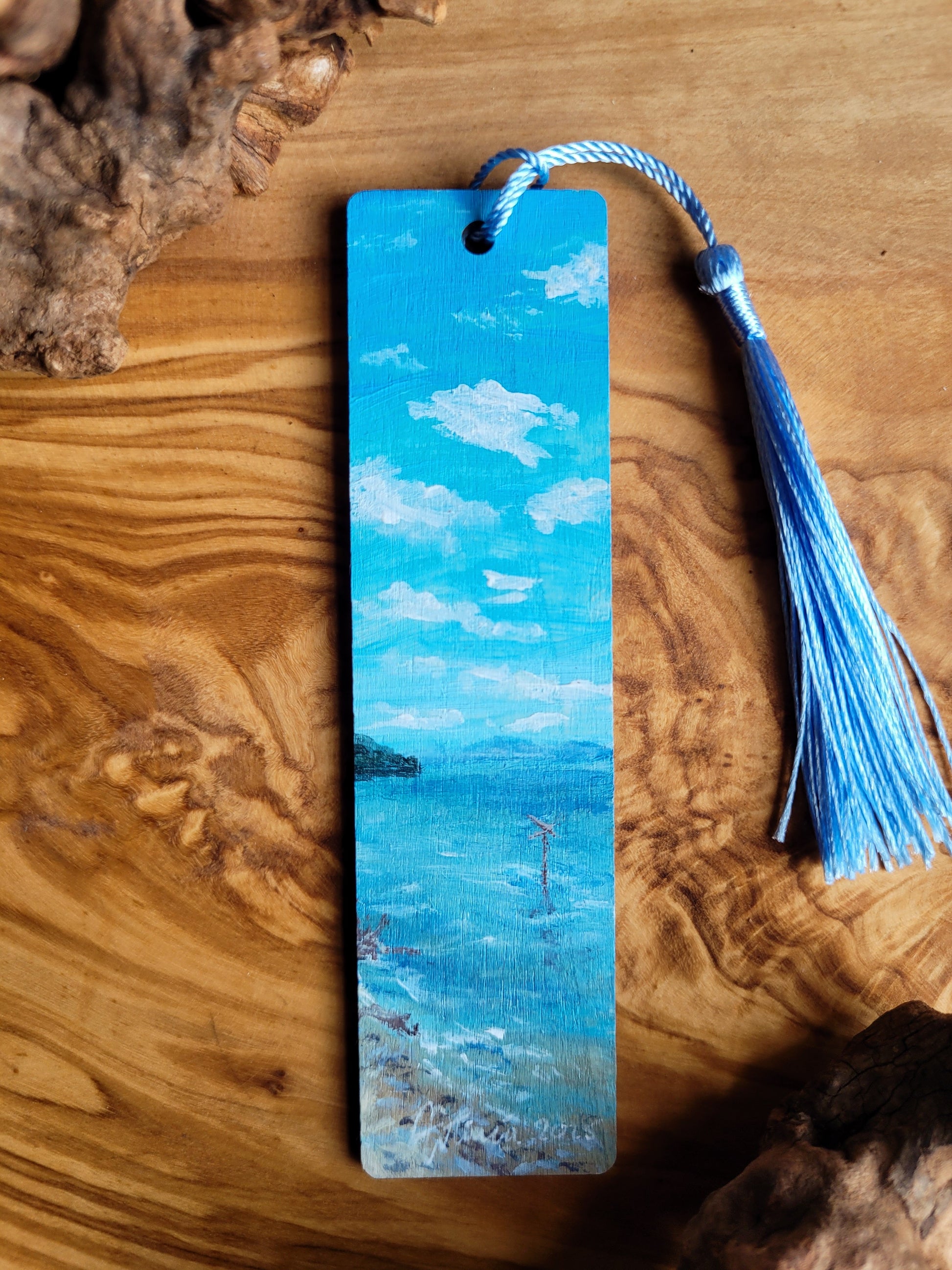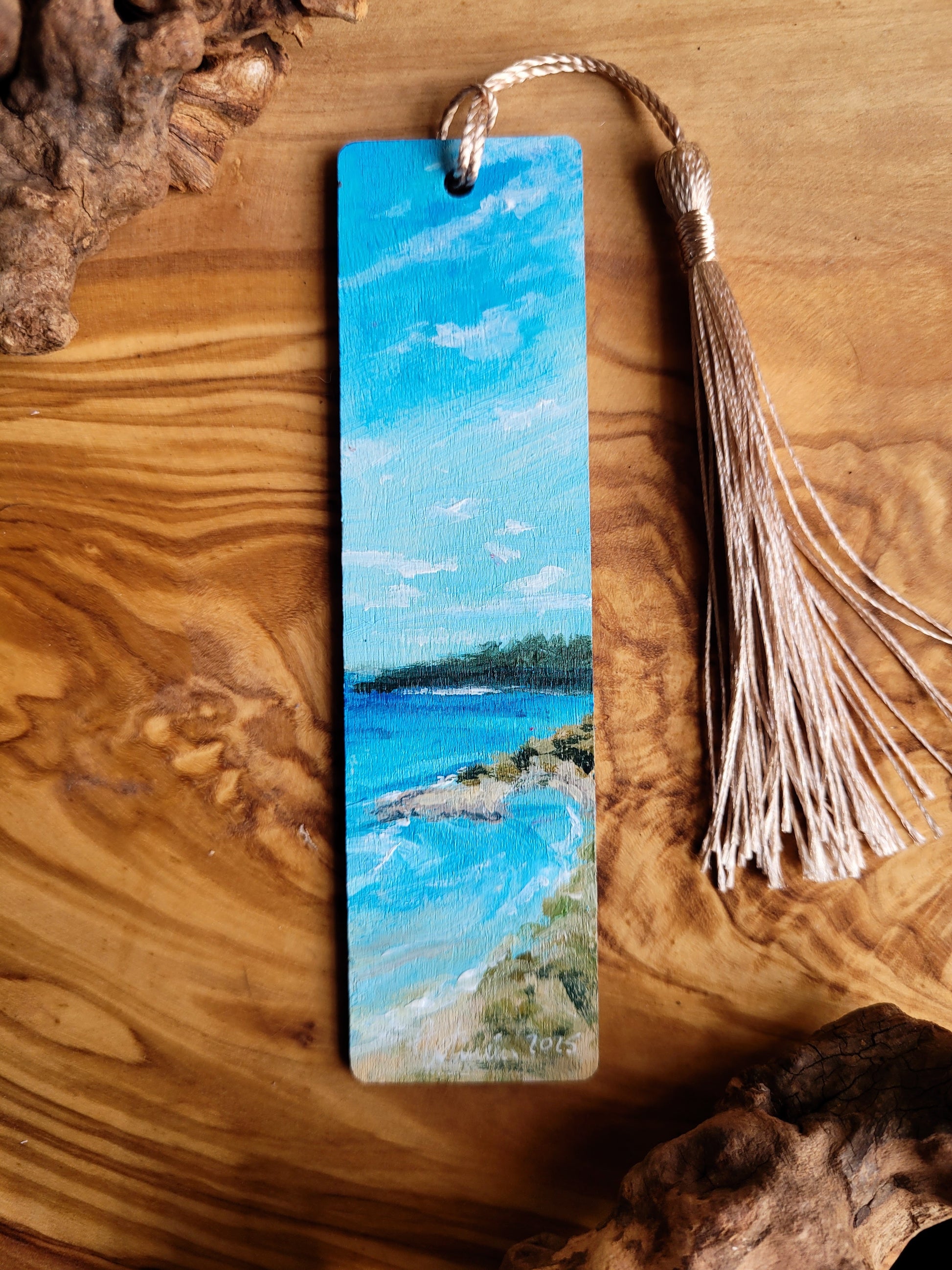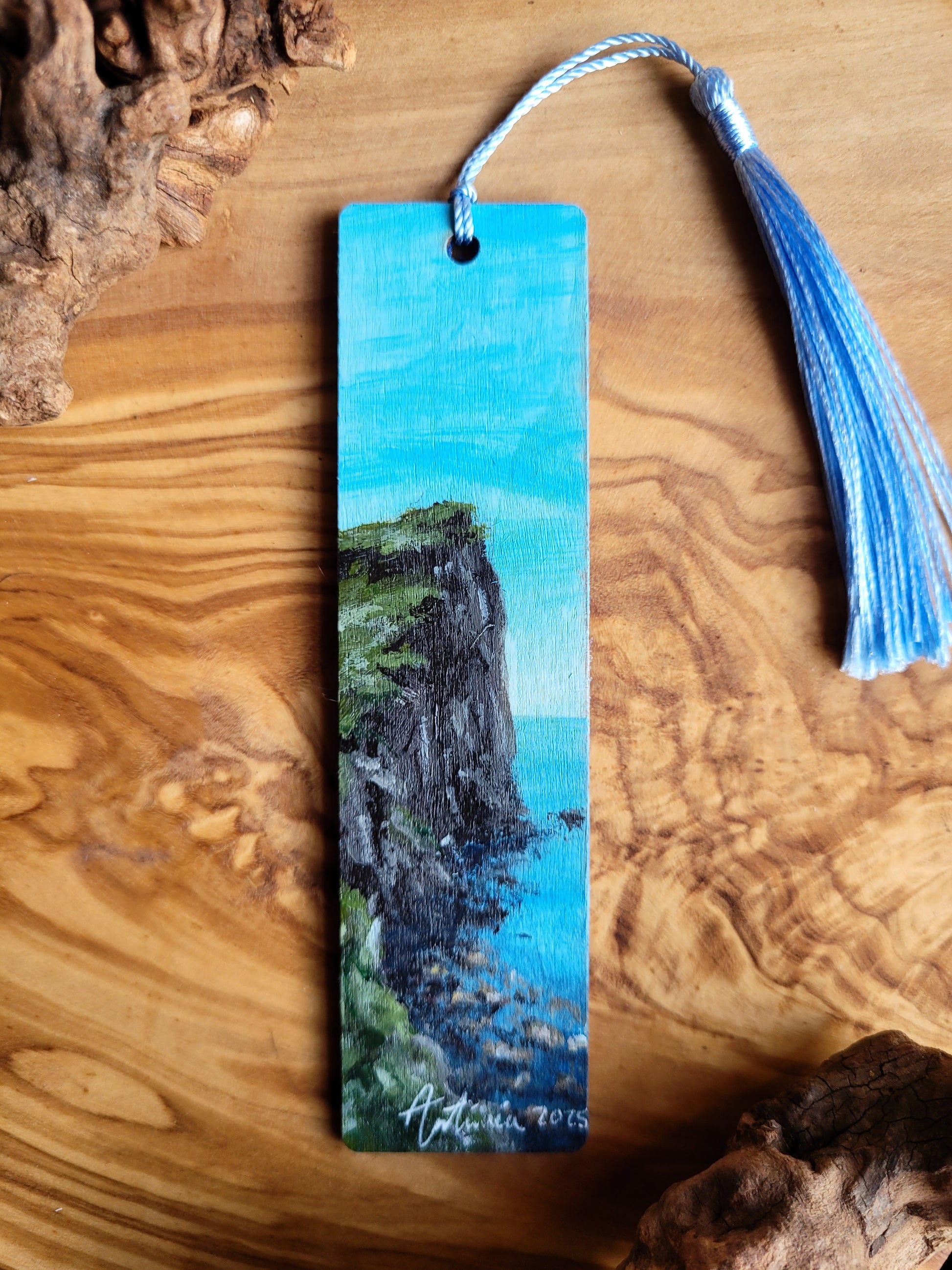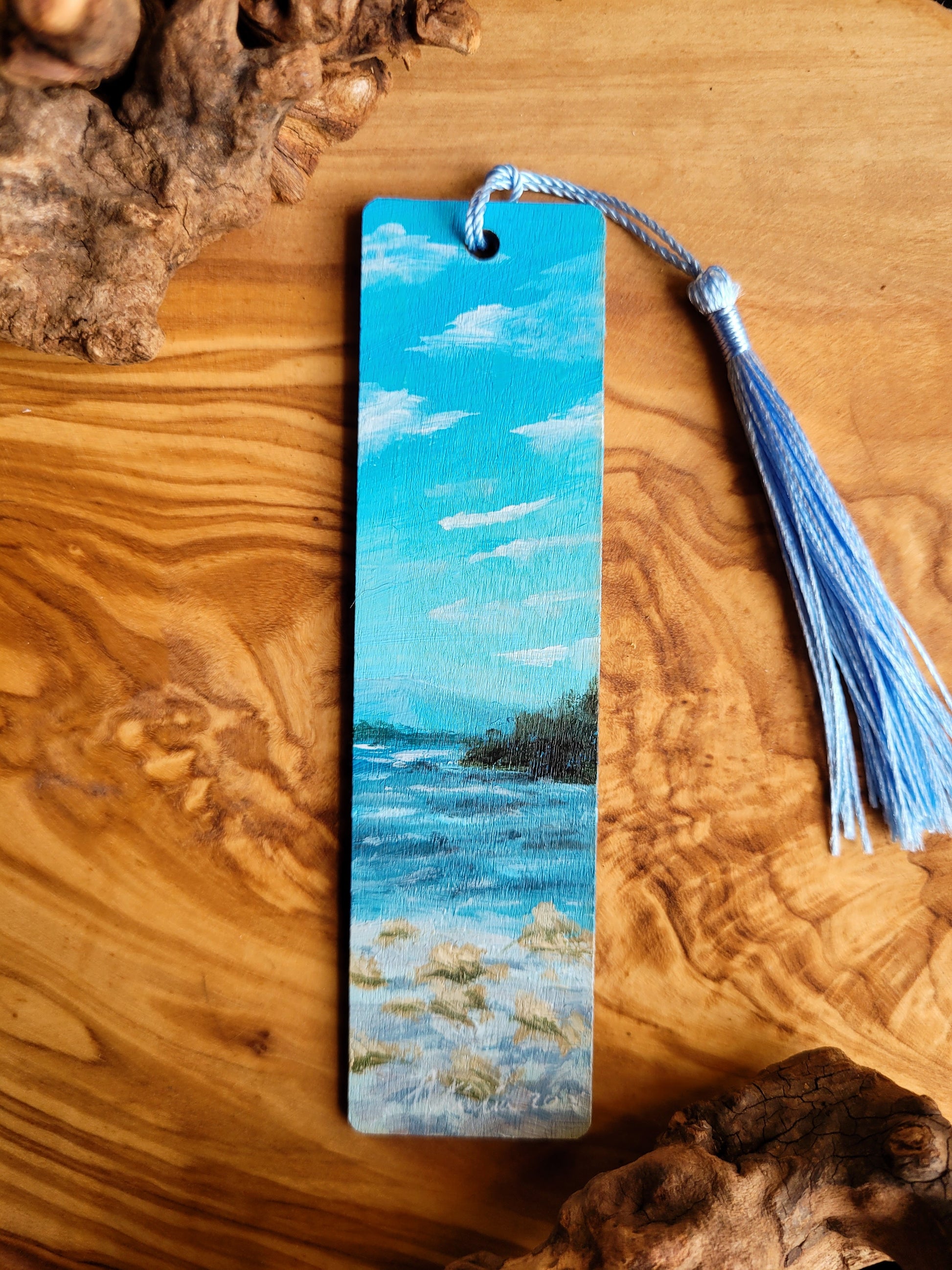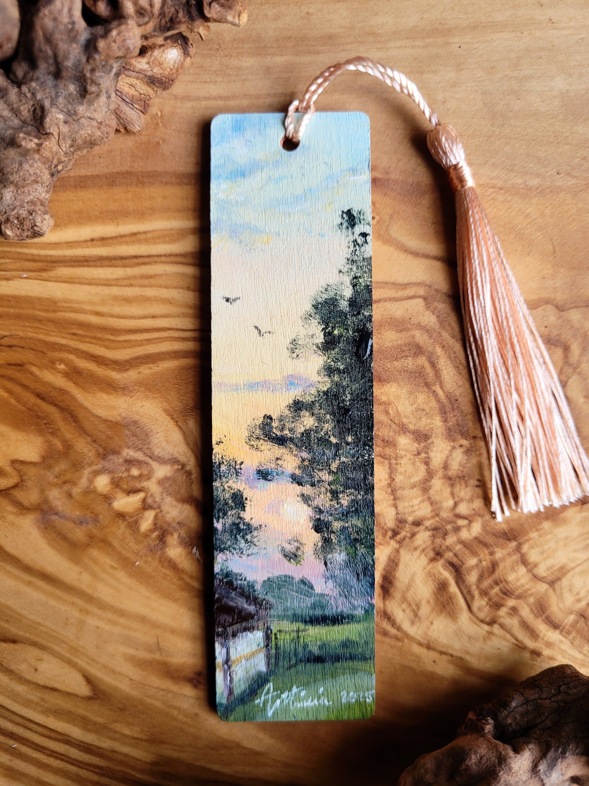 Each bookmark is carefully painted onto smooth wood, then varnished for protection and finished with a soft velvet back for a gentle touch. A colourful tassel adds a bit of charm and makes it easy to find your place.
