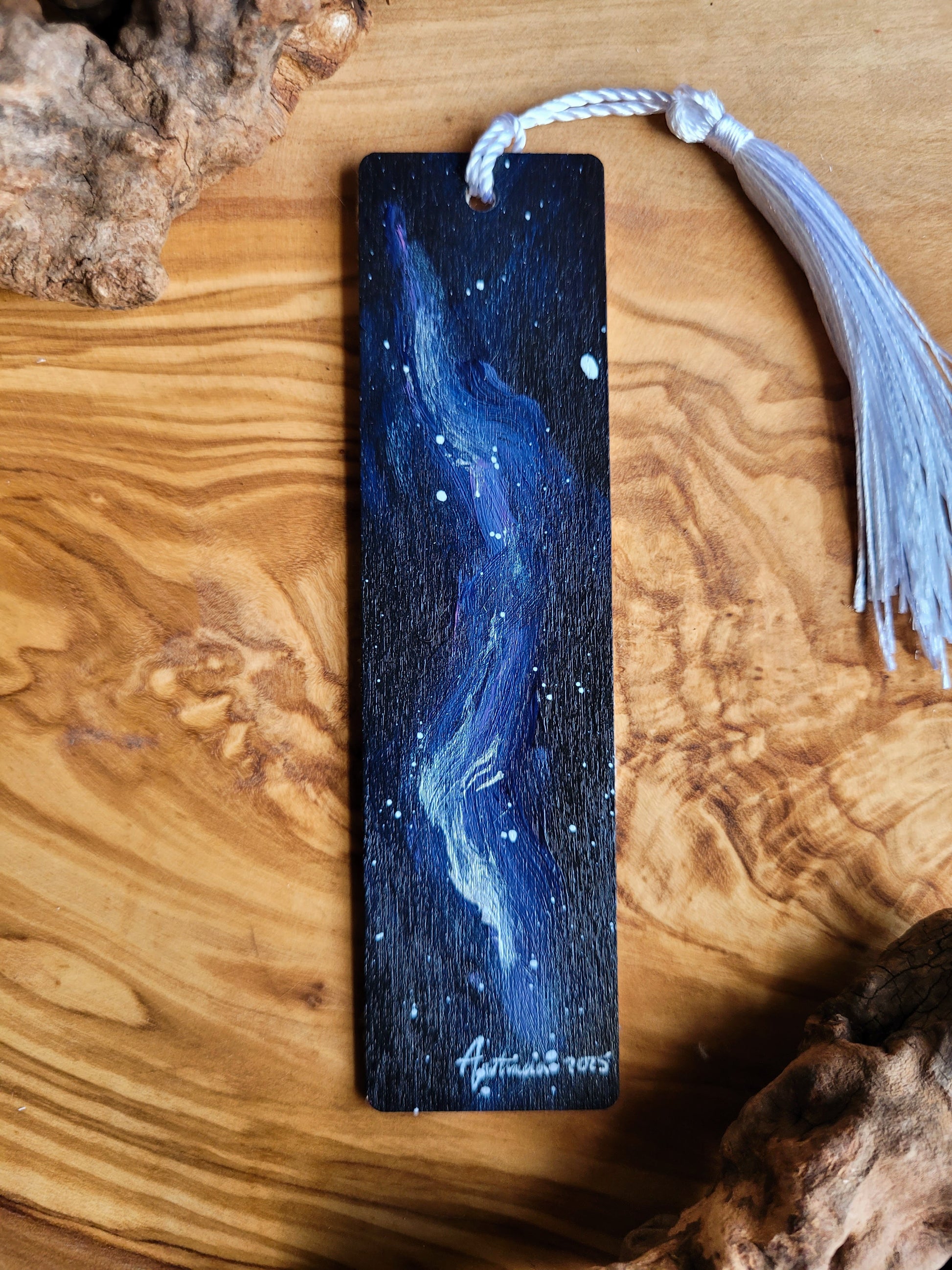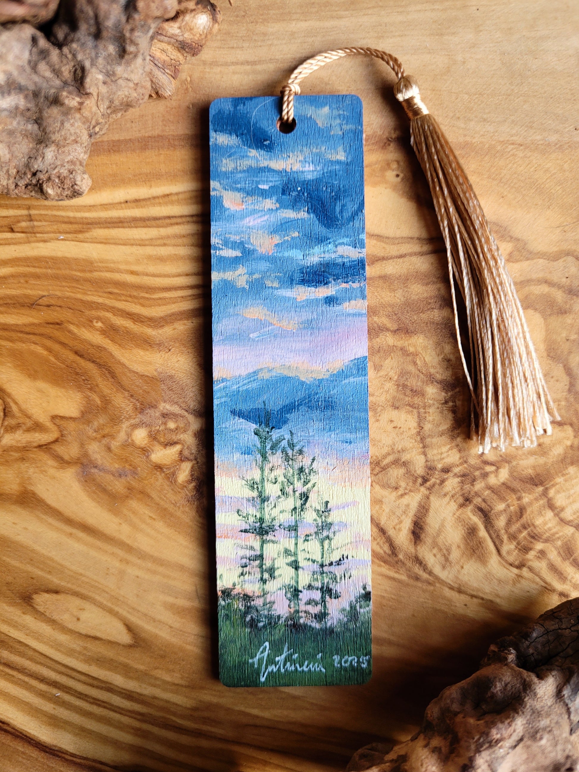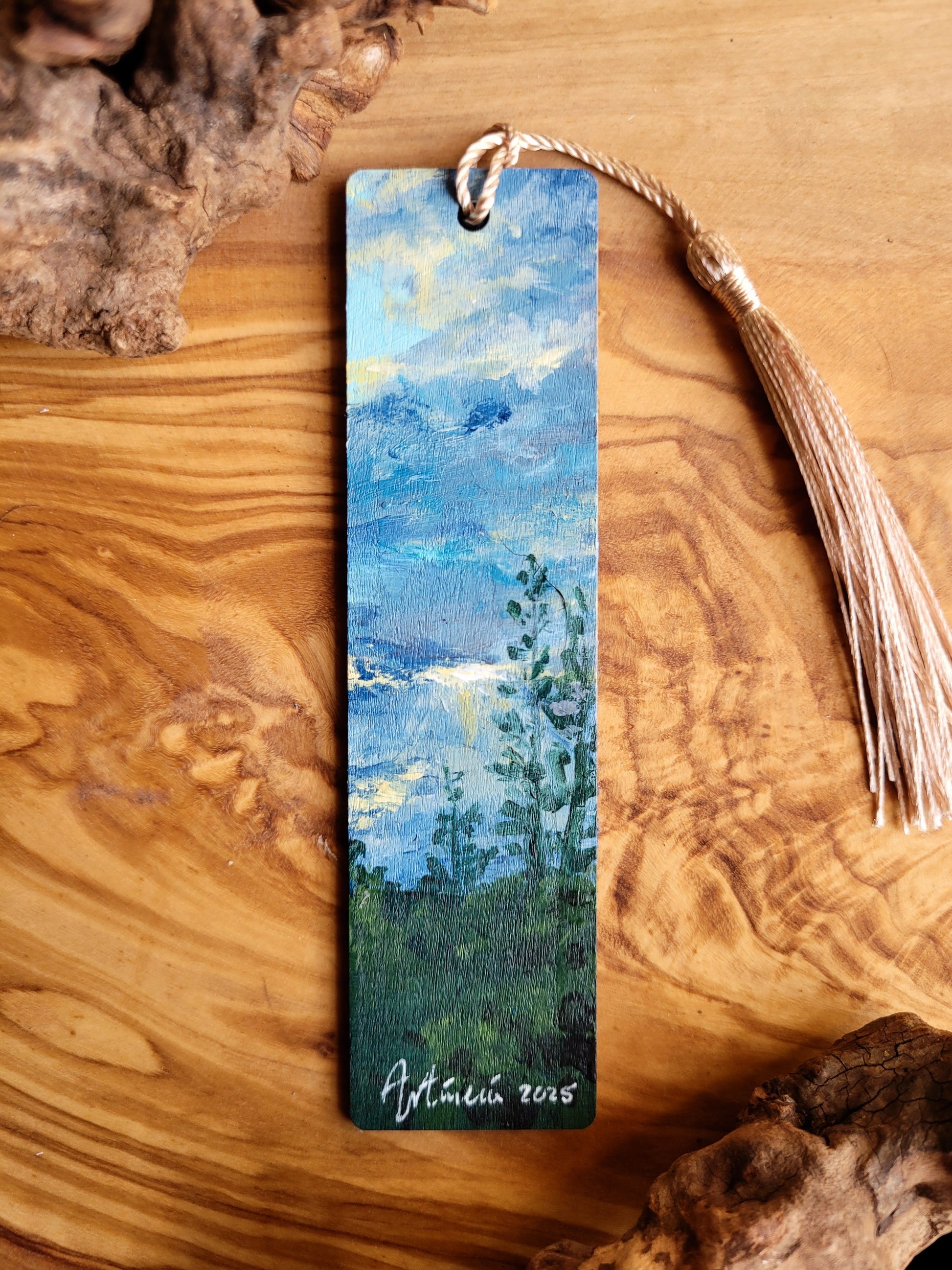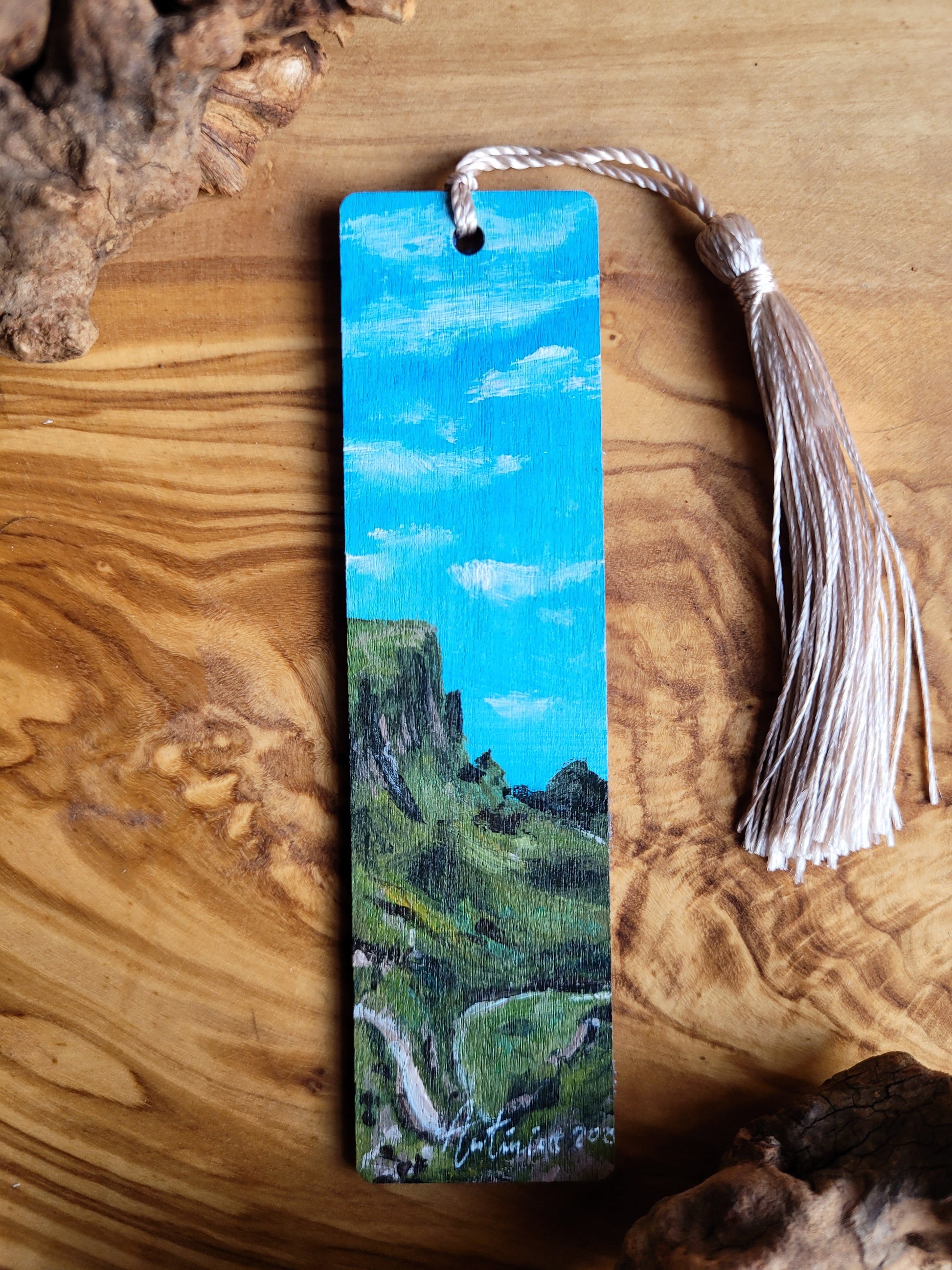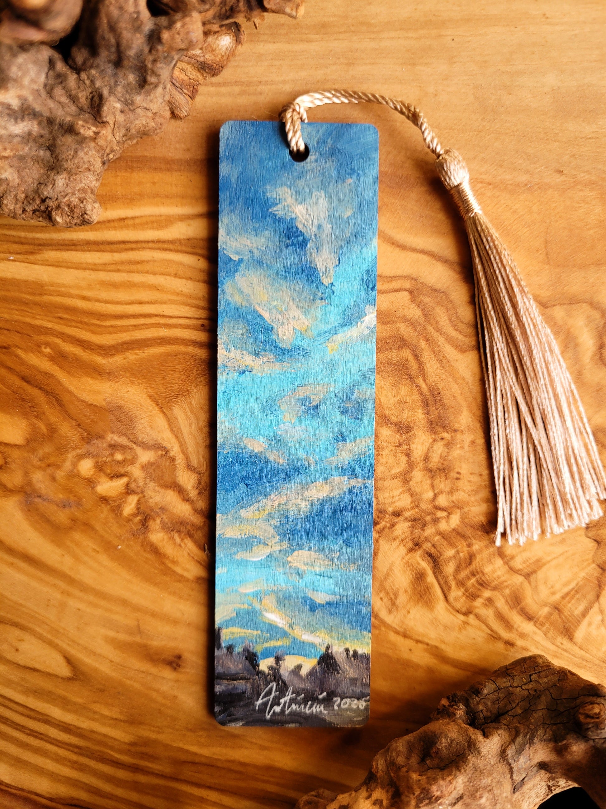 Each bookmark is carefully painted onto smooth wood, then varnished for protection and finished with a soft velvet back for a gentle touch. A colourful tassel adds a bit of charm and makes it easy to find your place.