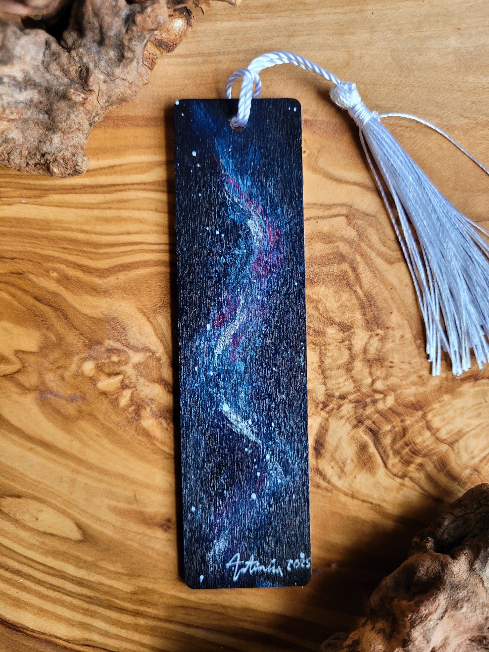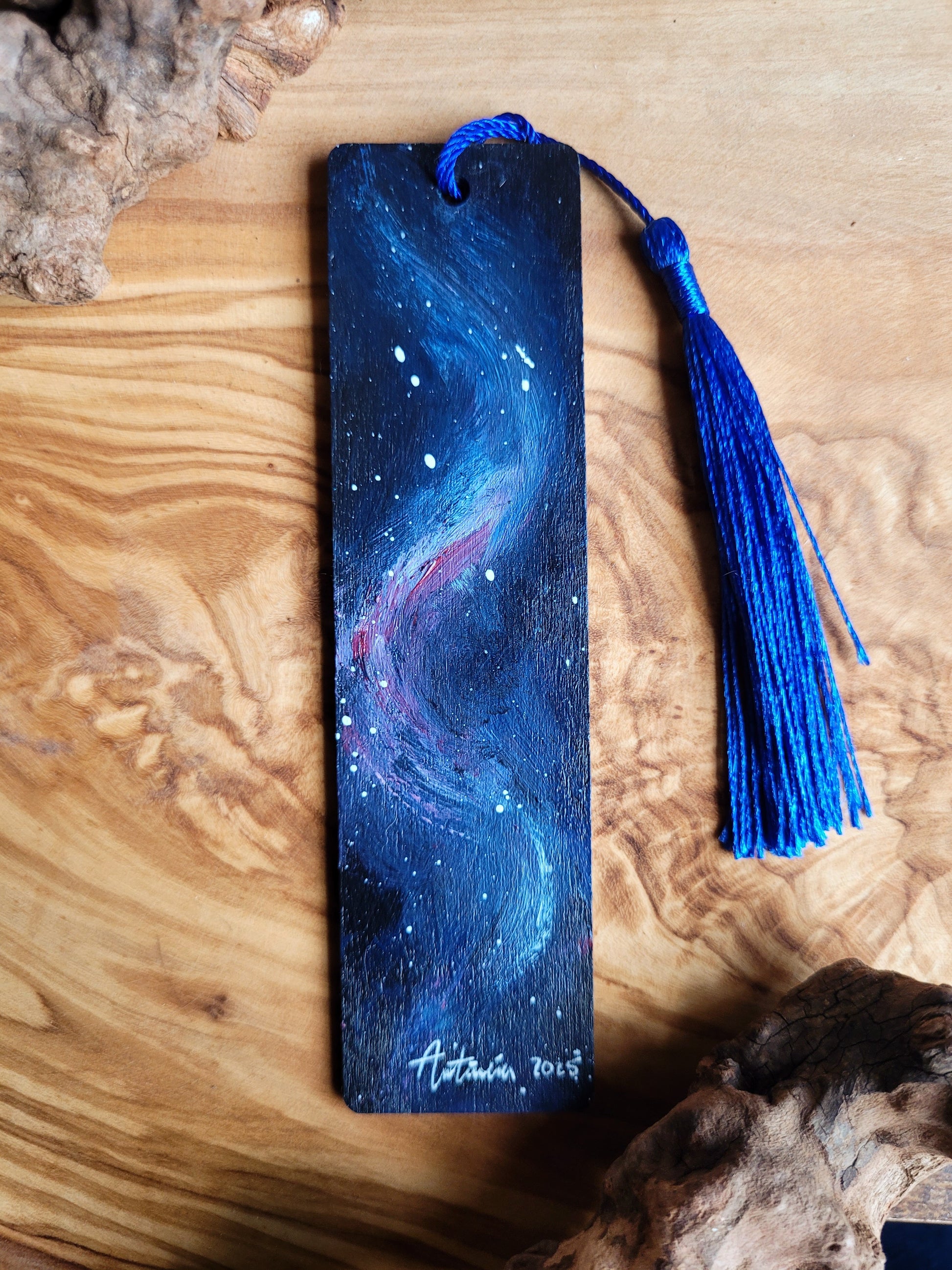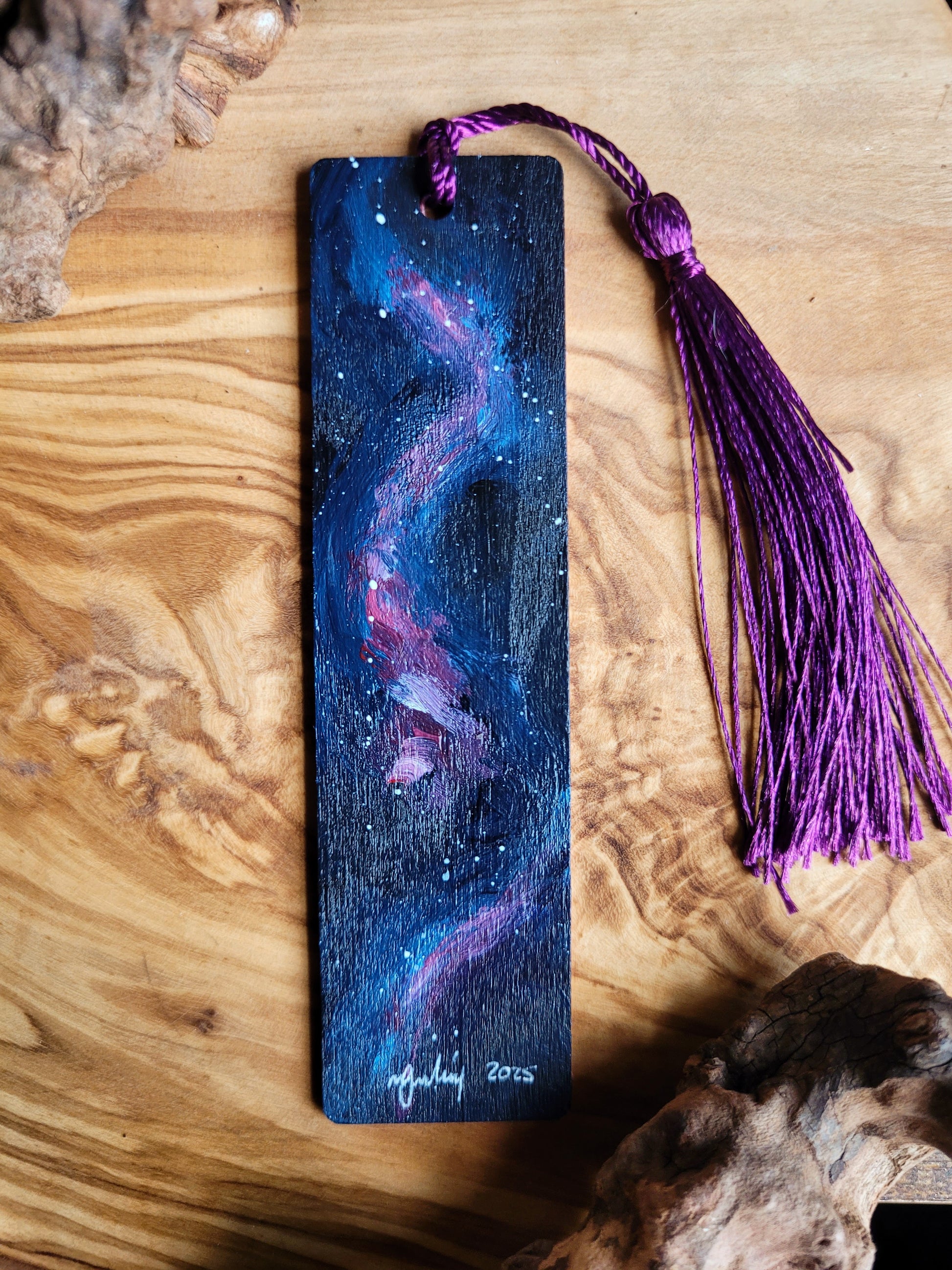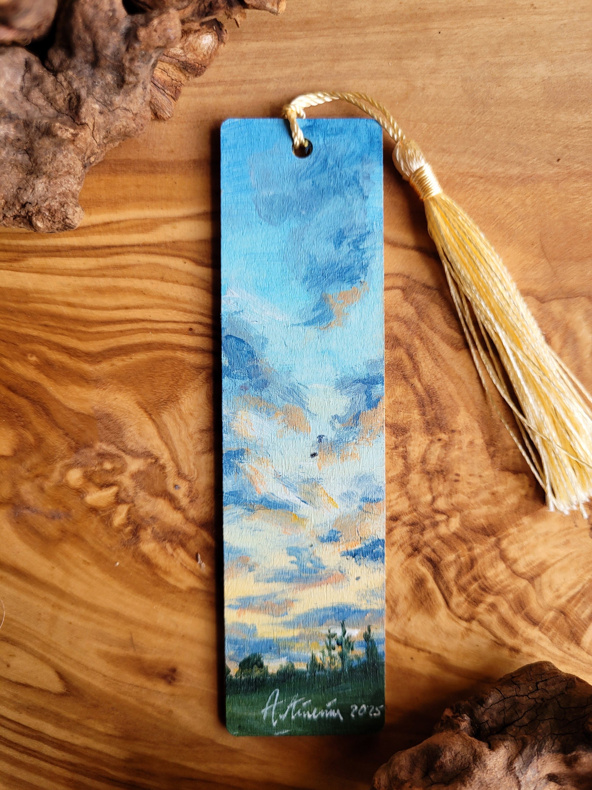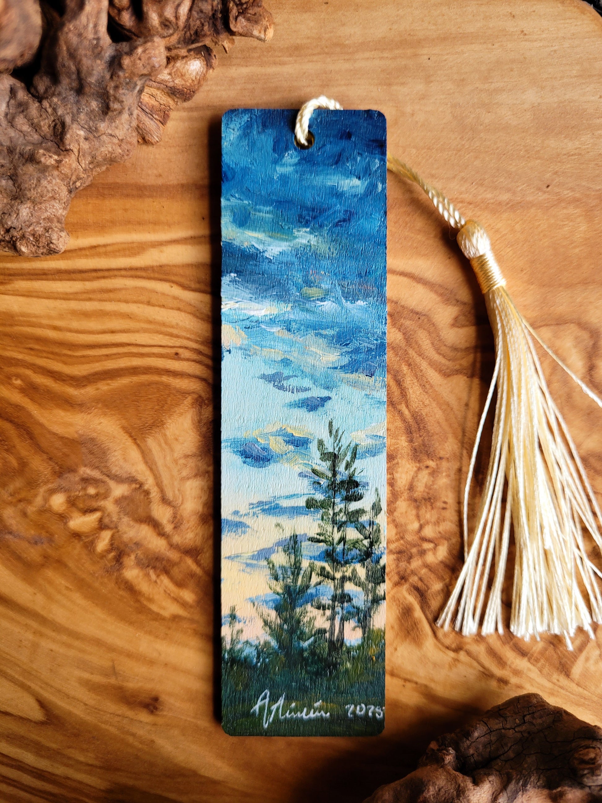 Each bookmark is carefully painted onto smooth wood, then varnished for protection and finished with a soft velvet back for a gentle touch. A colourful tassel adds a bit of charm and makes it easy to find your place.