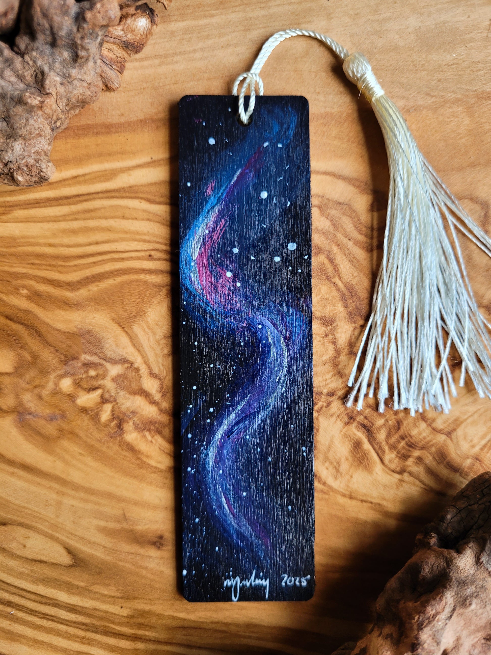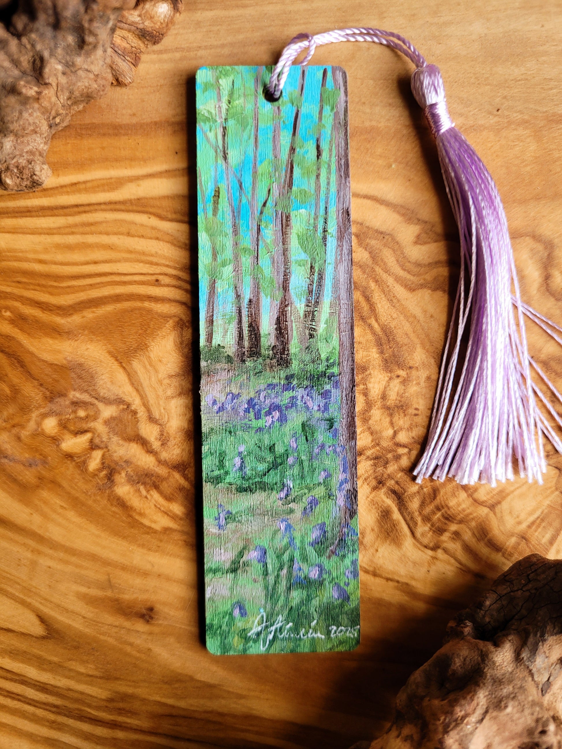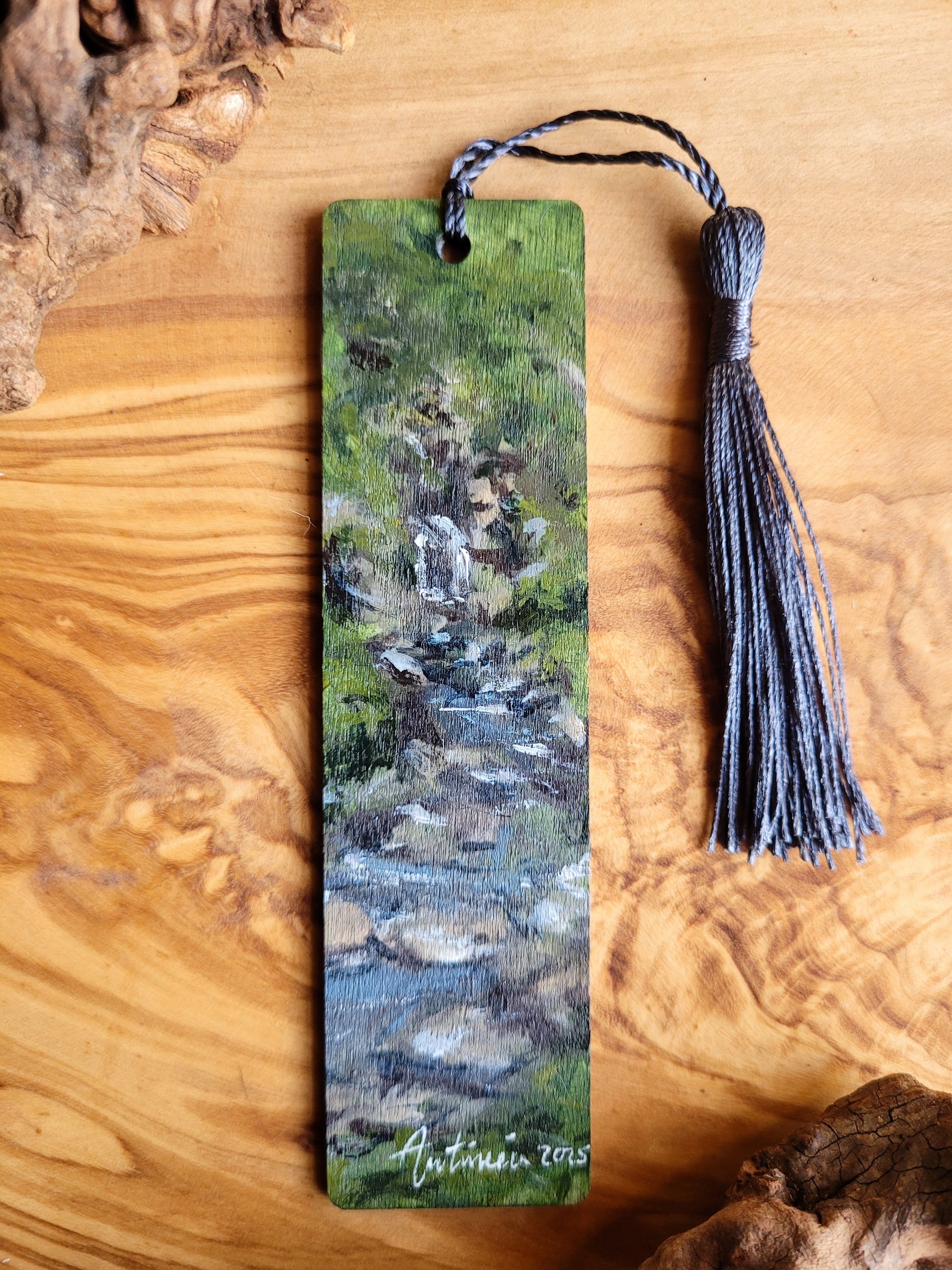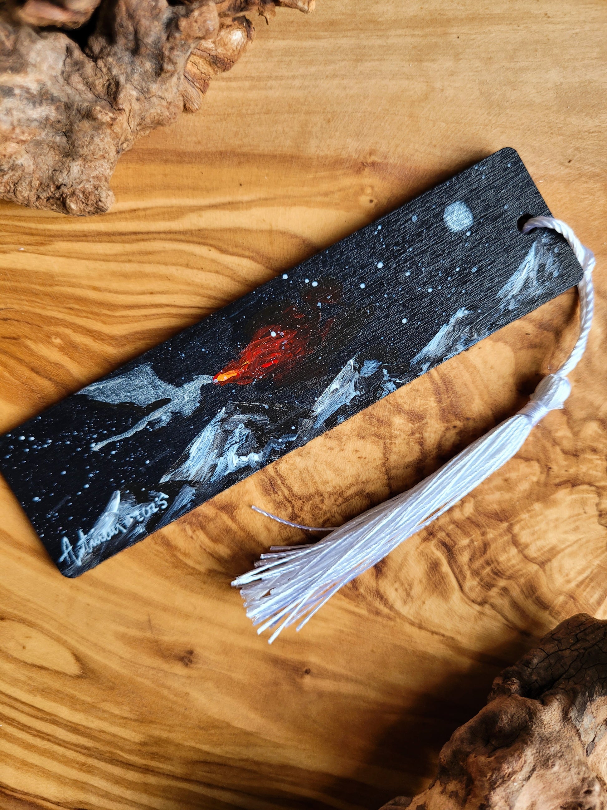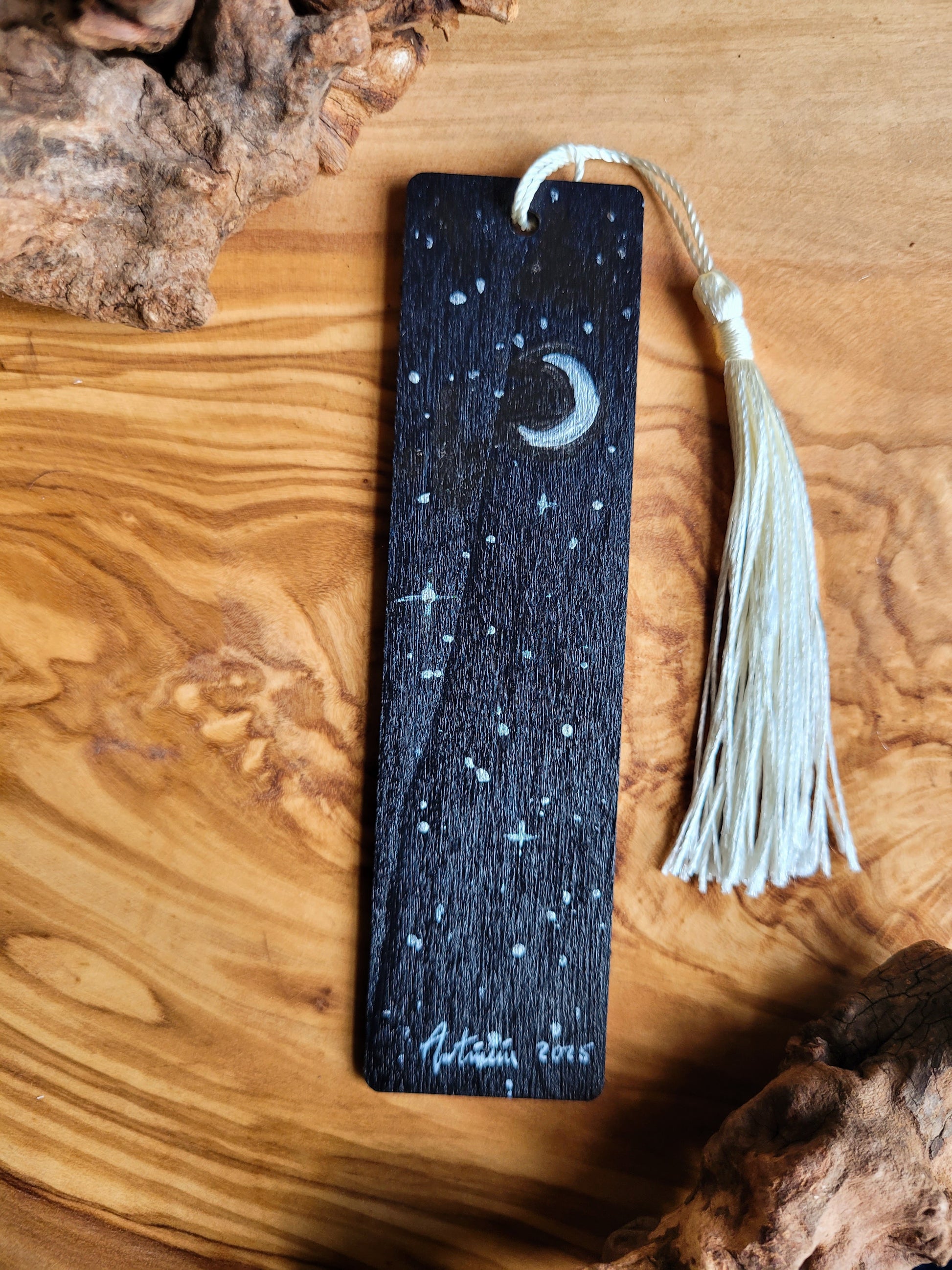 Each bookmark is carefully painted onto smooth wood, then varnished for protection and finished with a soft velvet back for a gentle touch. A colourful tassel adds a bit of charm and makes it easy to find your place.