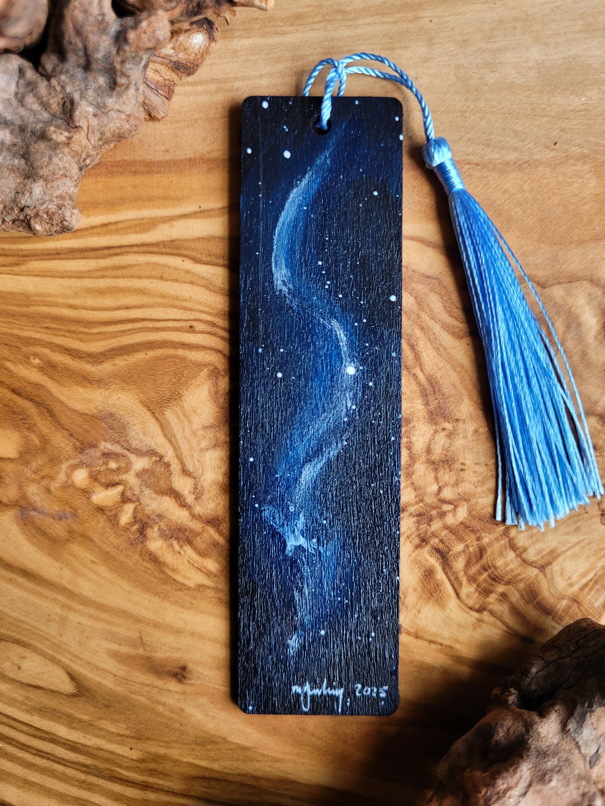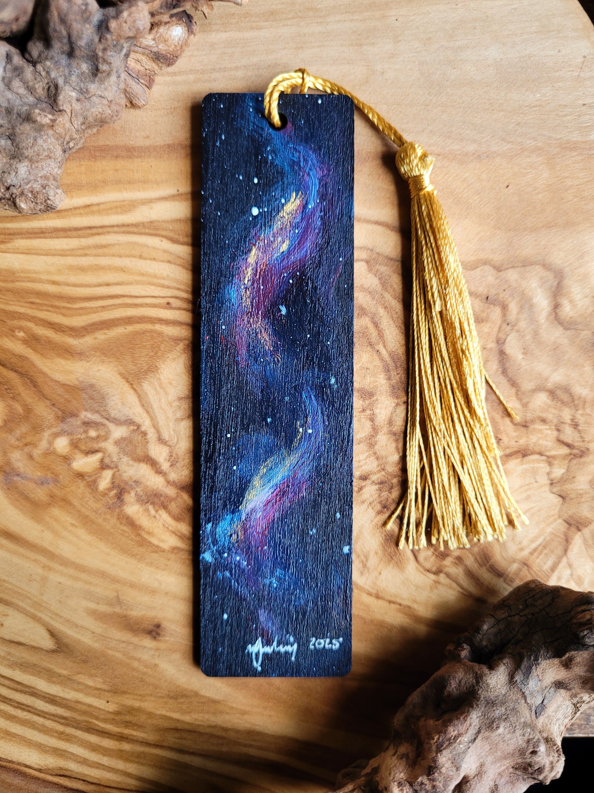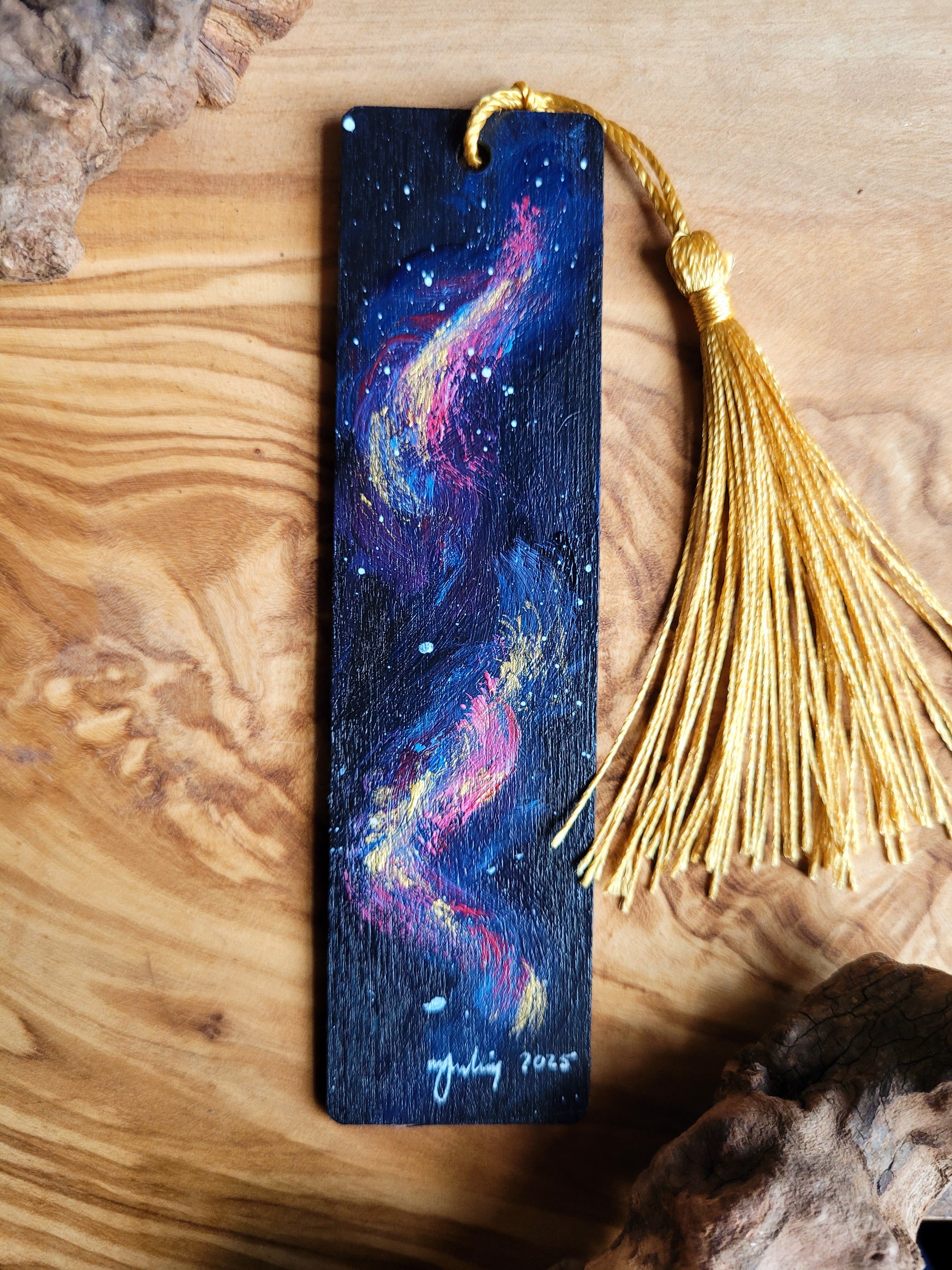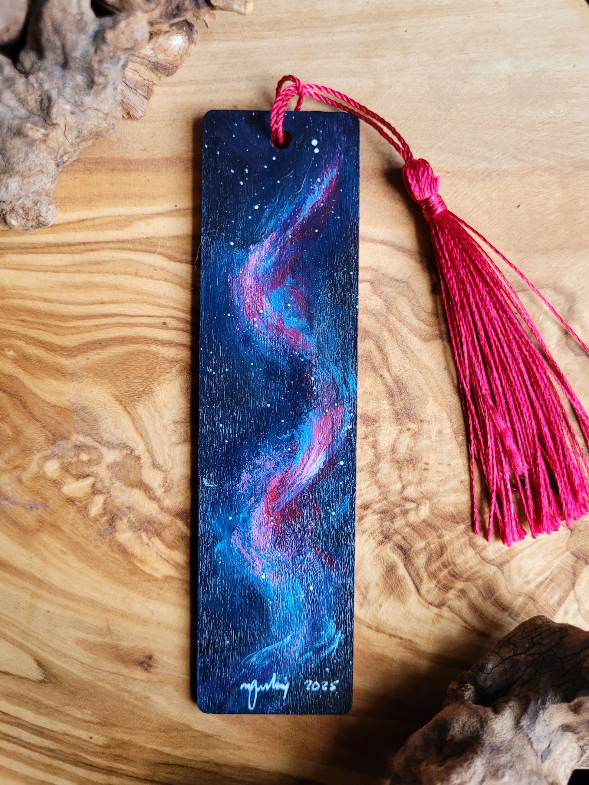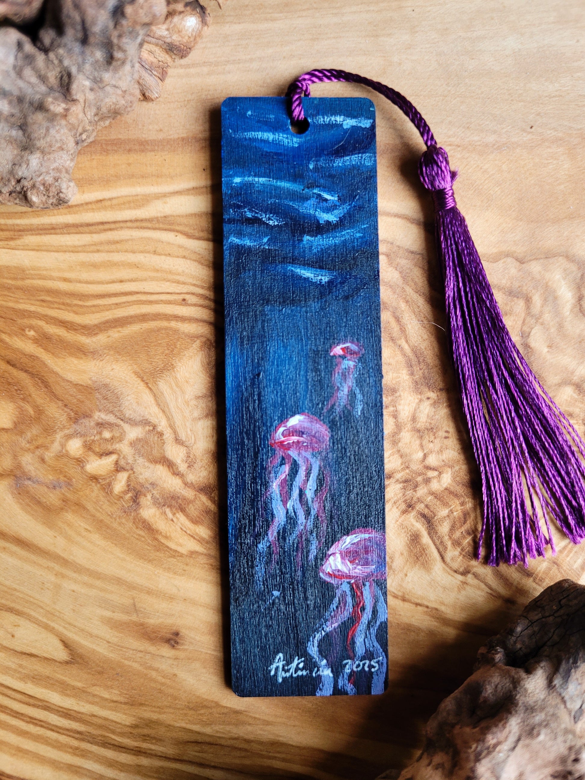 Each bookmark is carefully painted onto smooth wood, then varnished for protection and finished with a soft velvet back for a gentle touch. A colourful tassel adds a bit of charm and makes it easy to find your place.
