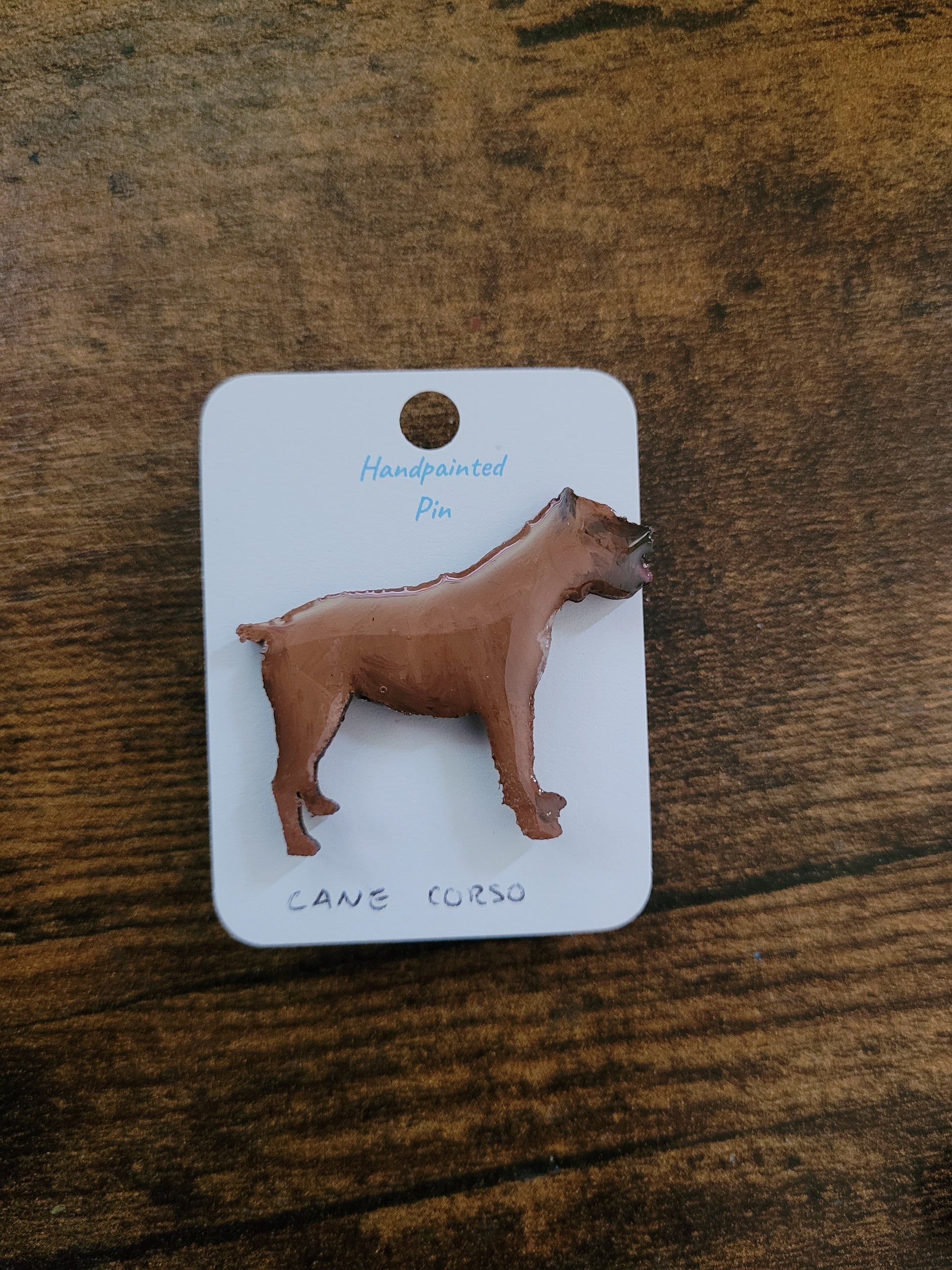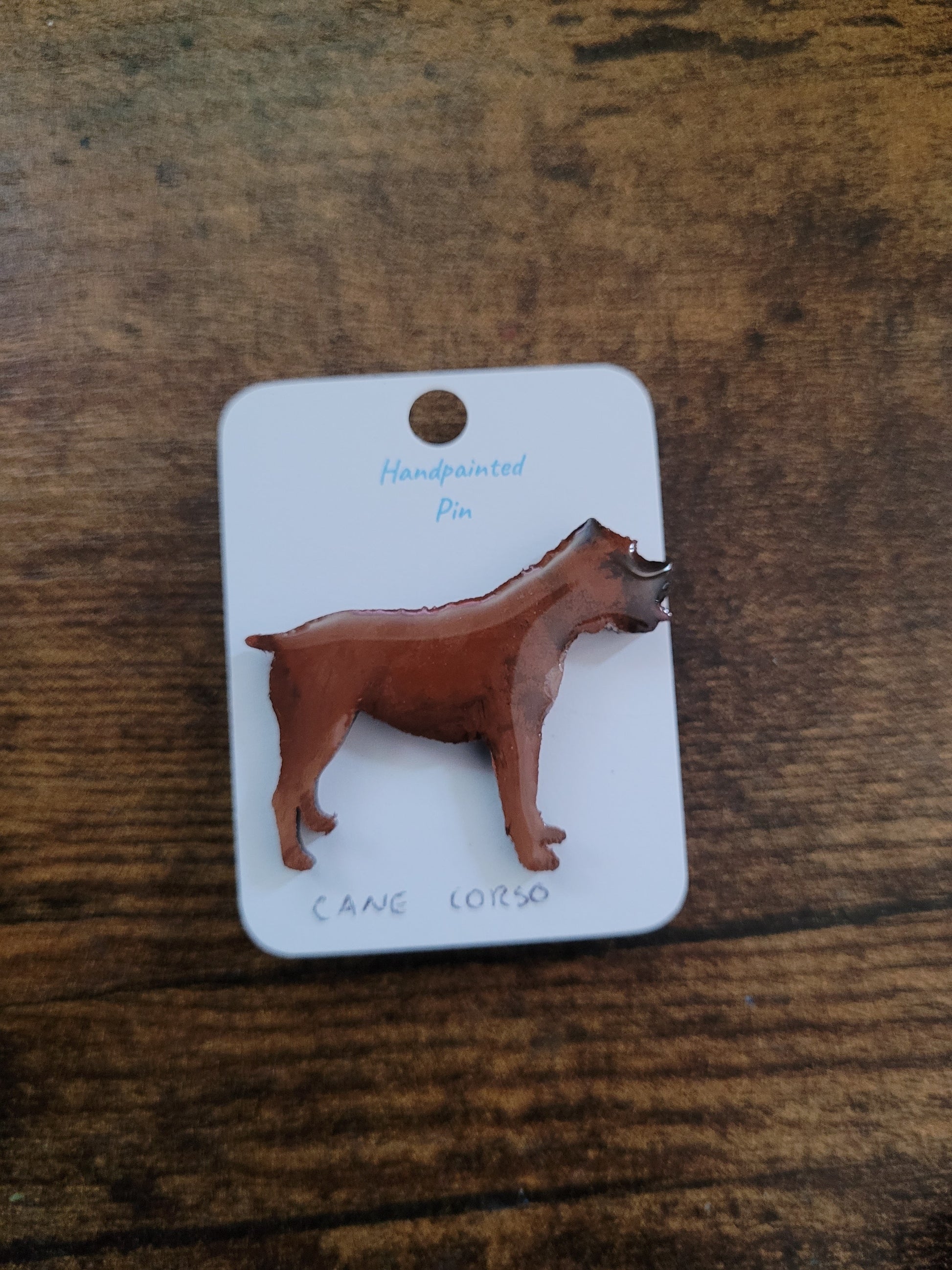 I paint each Cane Corso pin by hand onto wood, then finish it with a glossy resin varnish to help it shine and stay protected for years to come. Each one is about 4 cm in size, just the right little companion for your jacket, bag, or pin board.