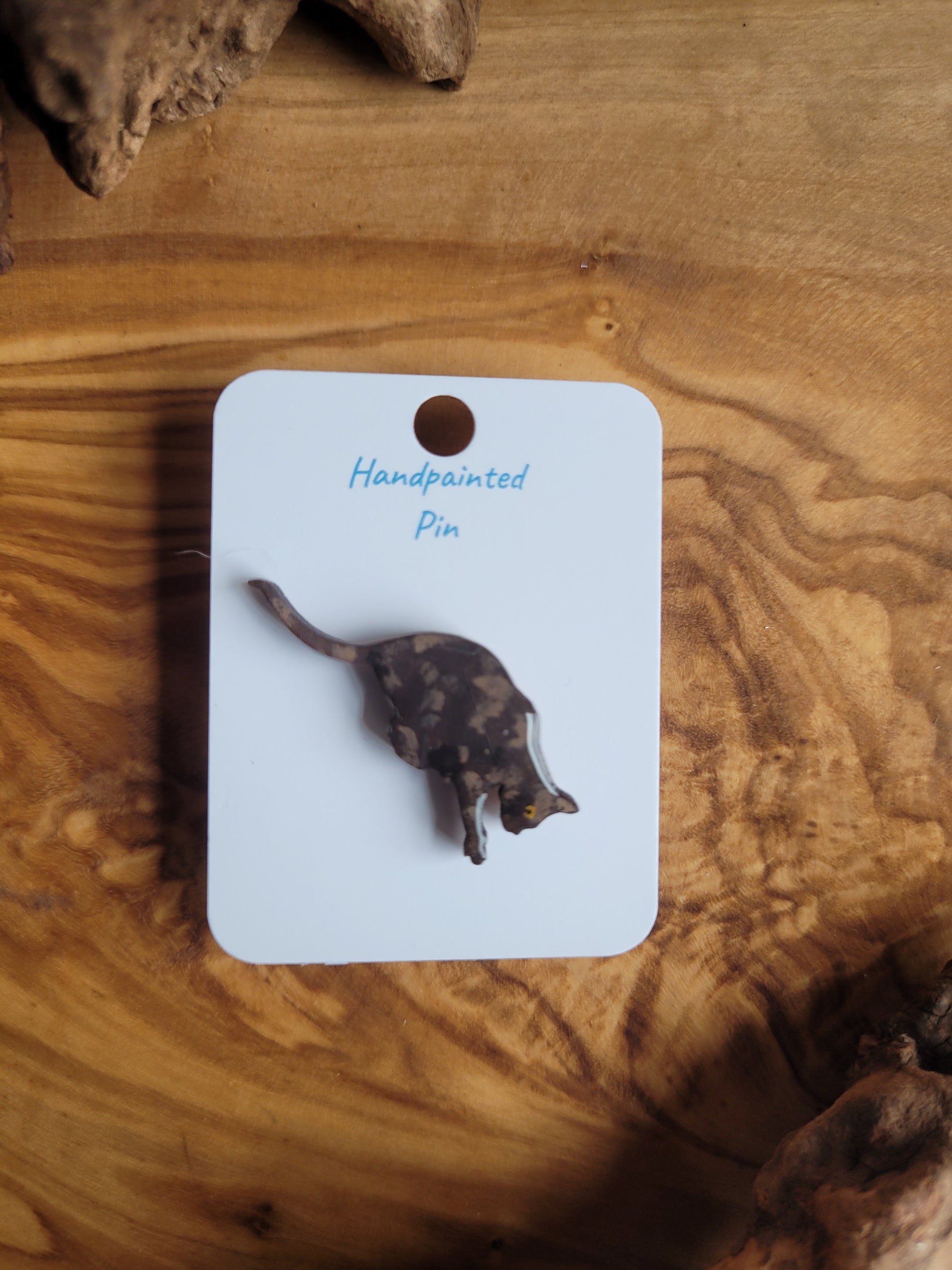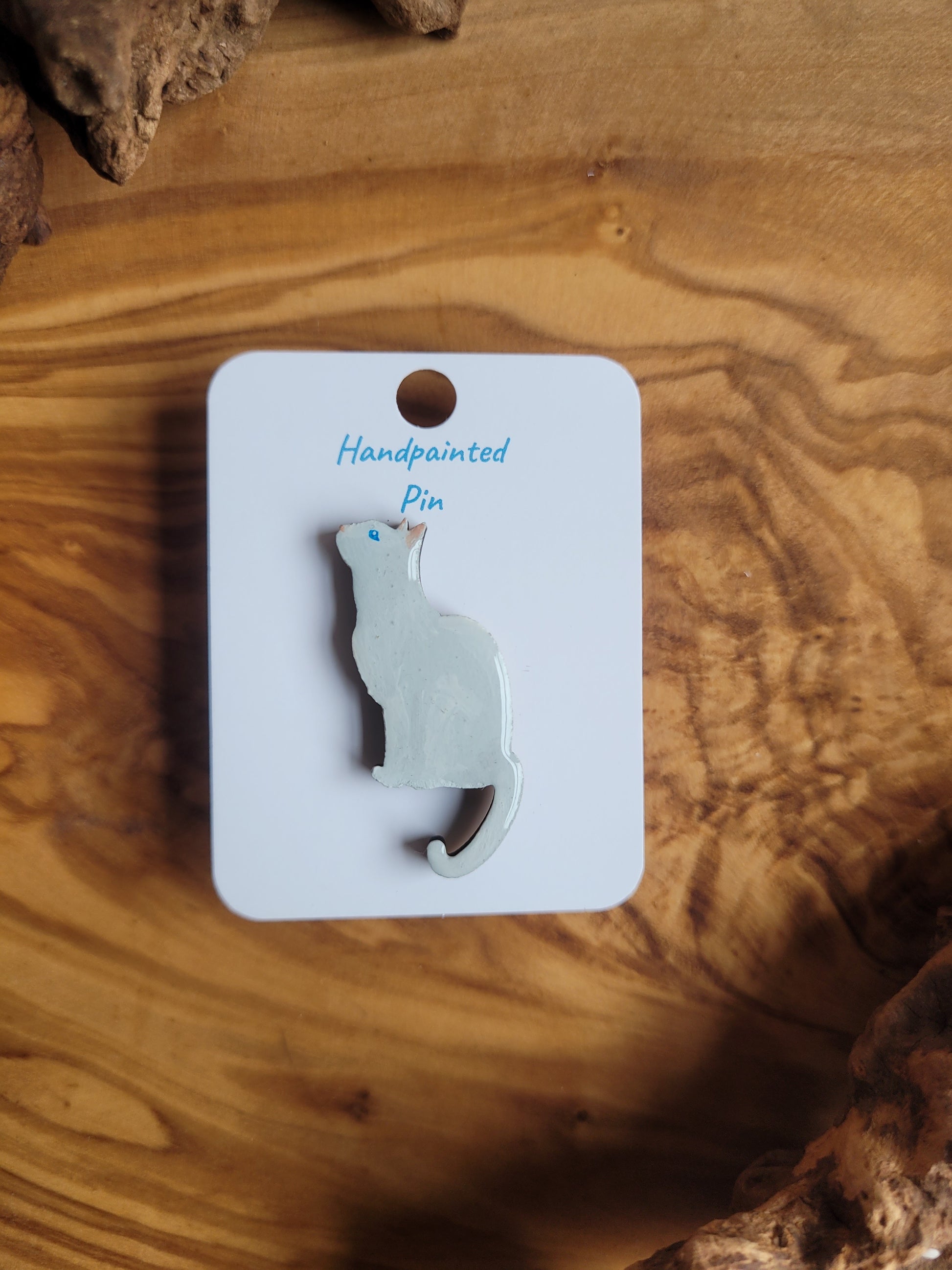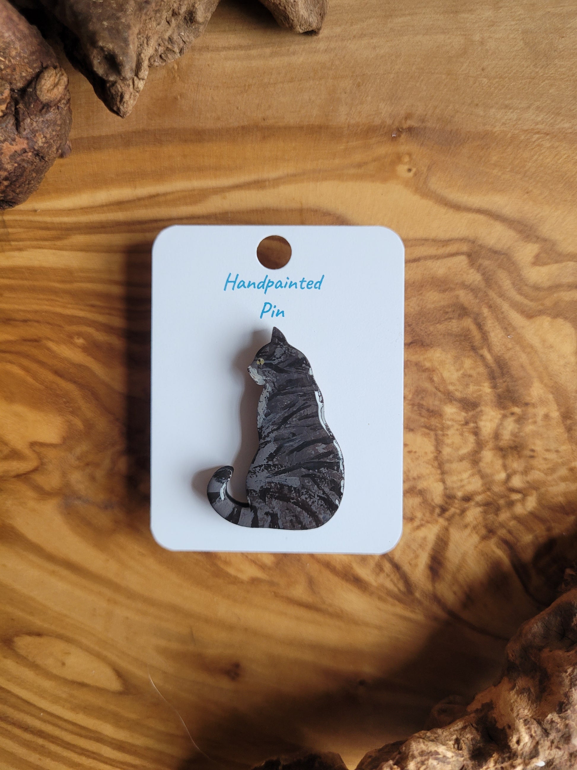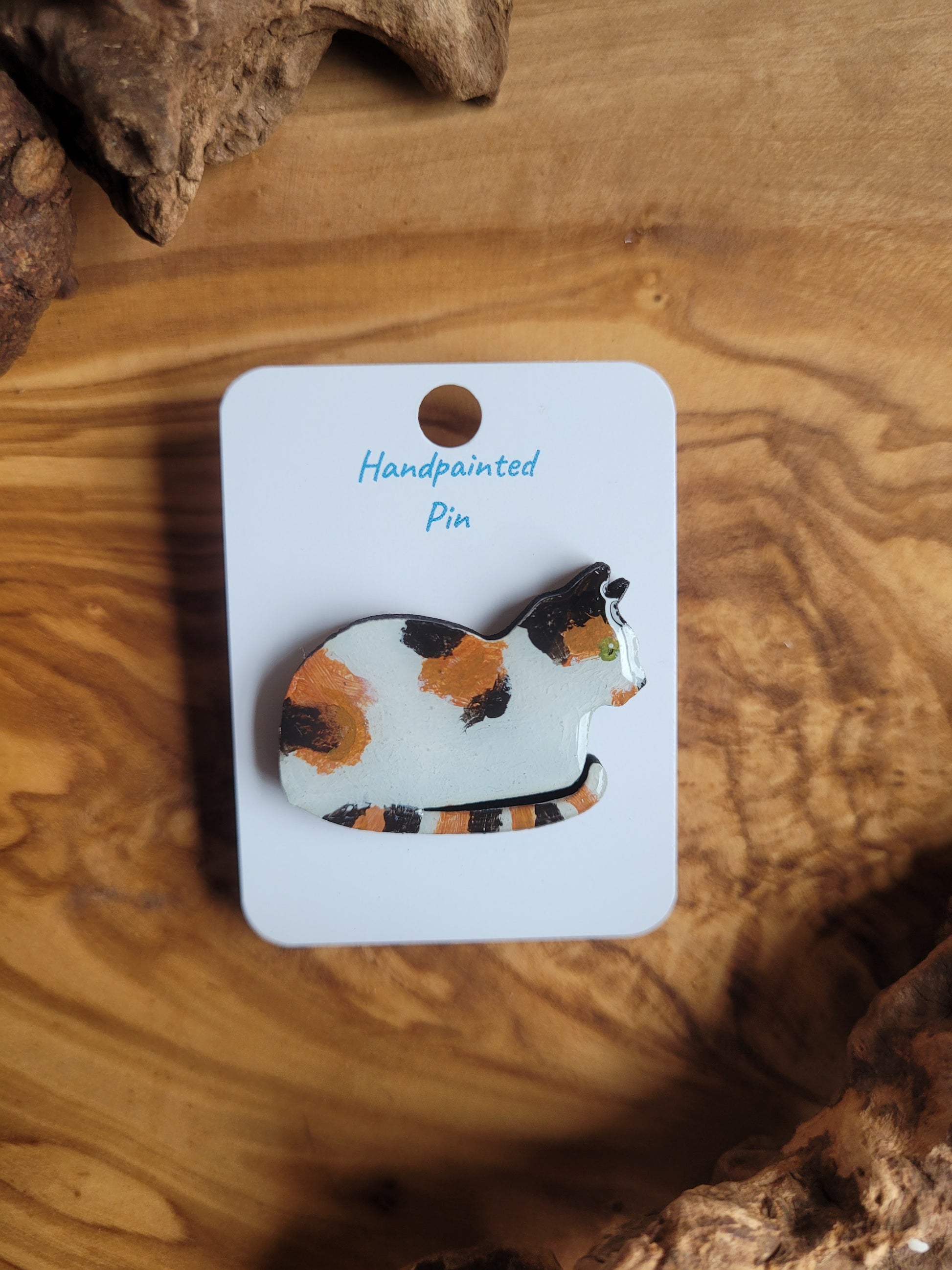 I paint each cat pin by hand onto wood, then finish it with a glossy resin varnish to help it shine and stay protected for years to come. Each one is about 3 cm in size, just the right little companion for your jacket, bag, or pin board.