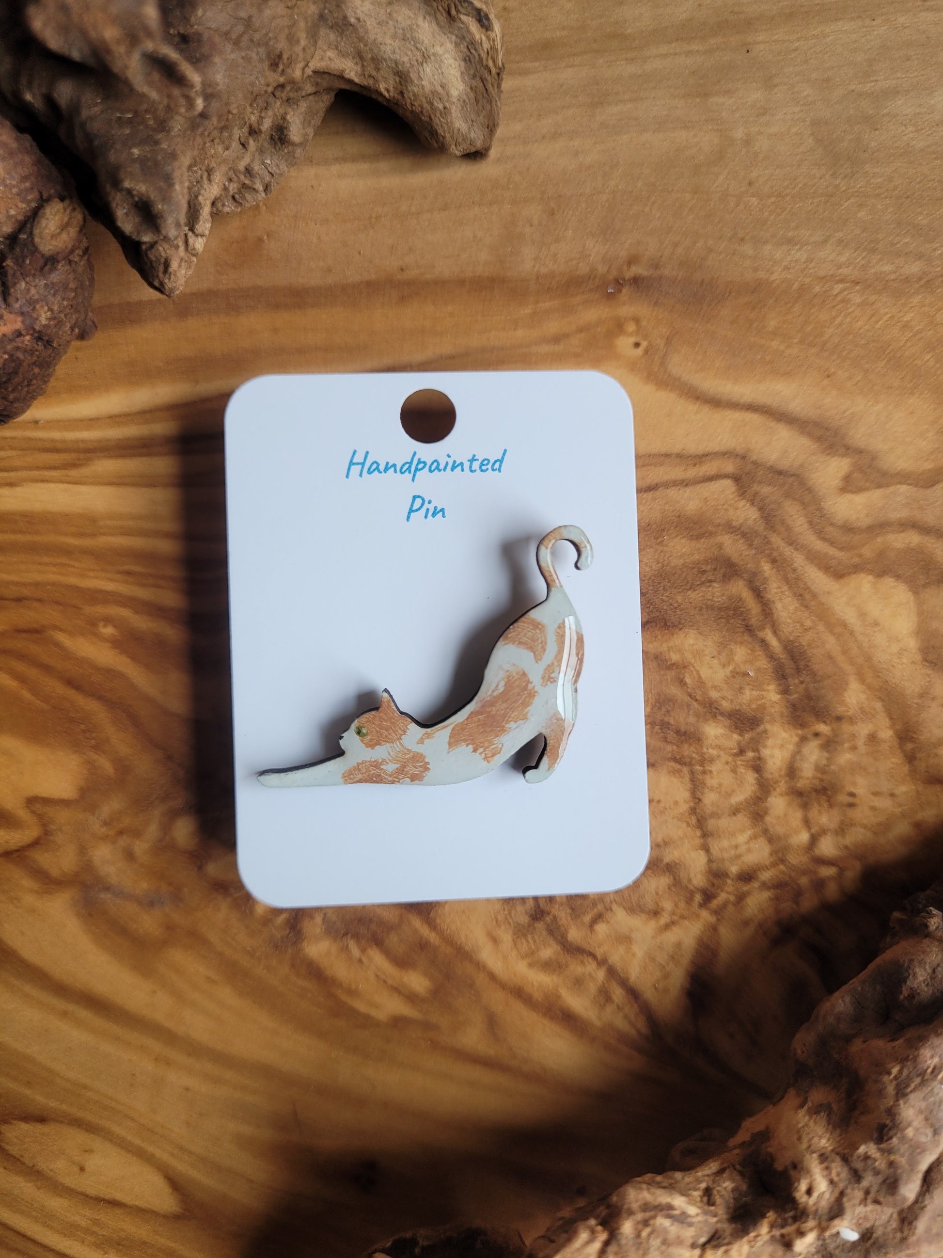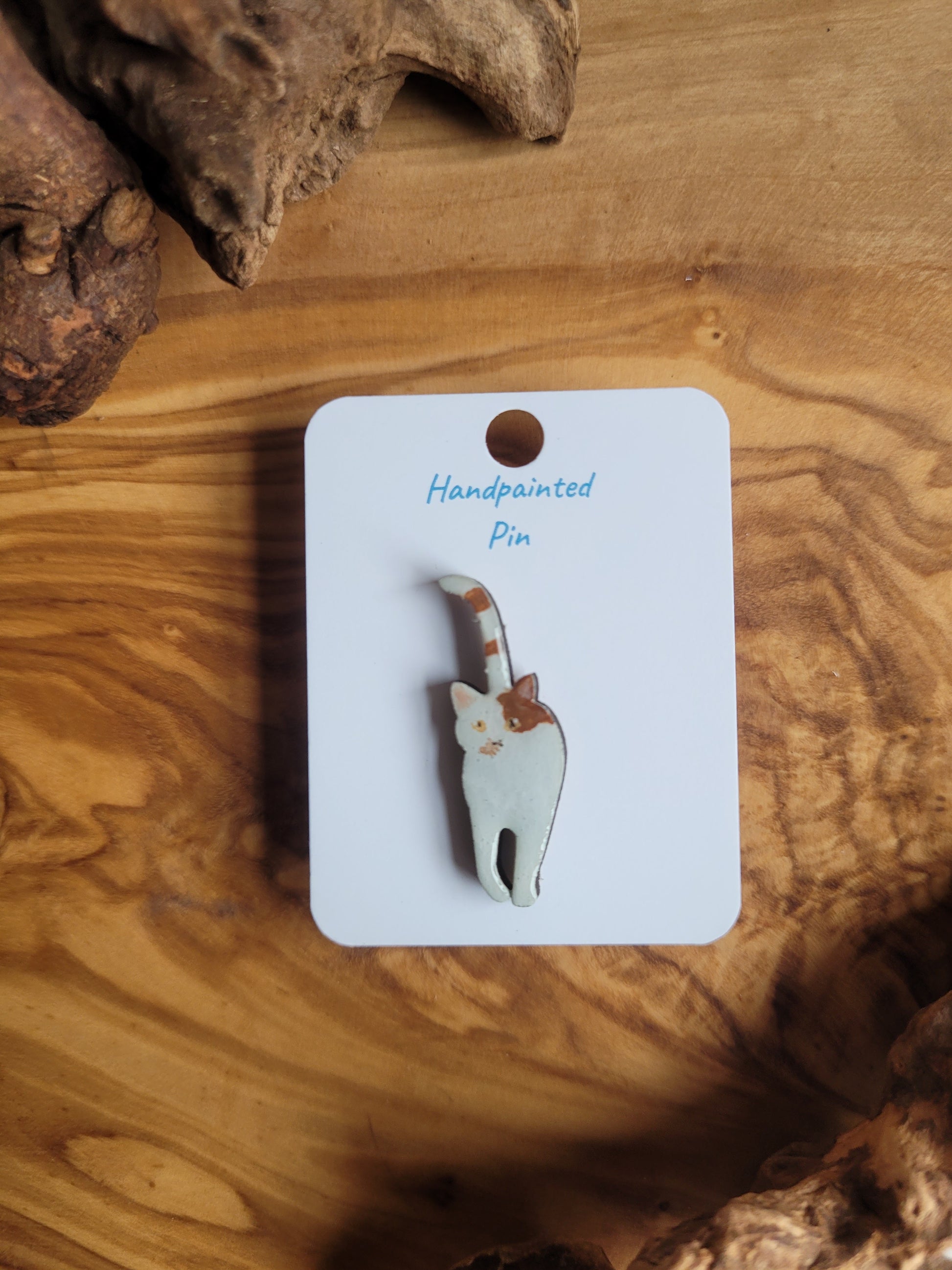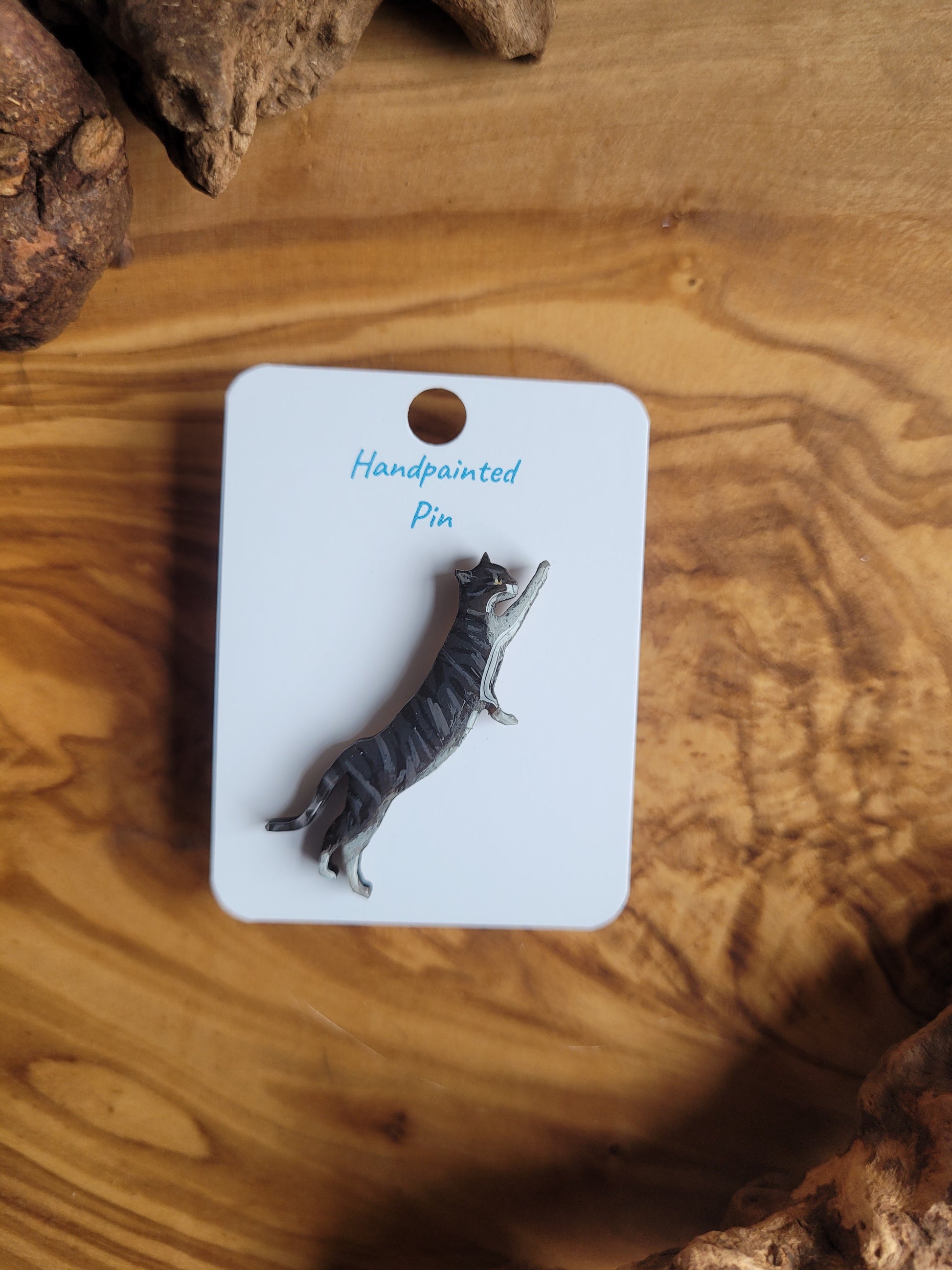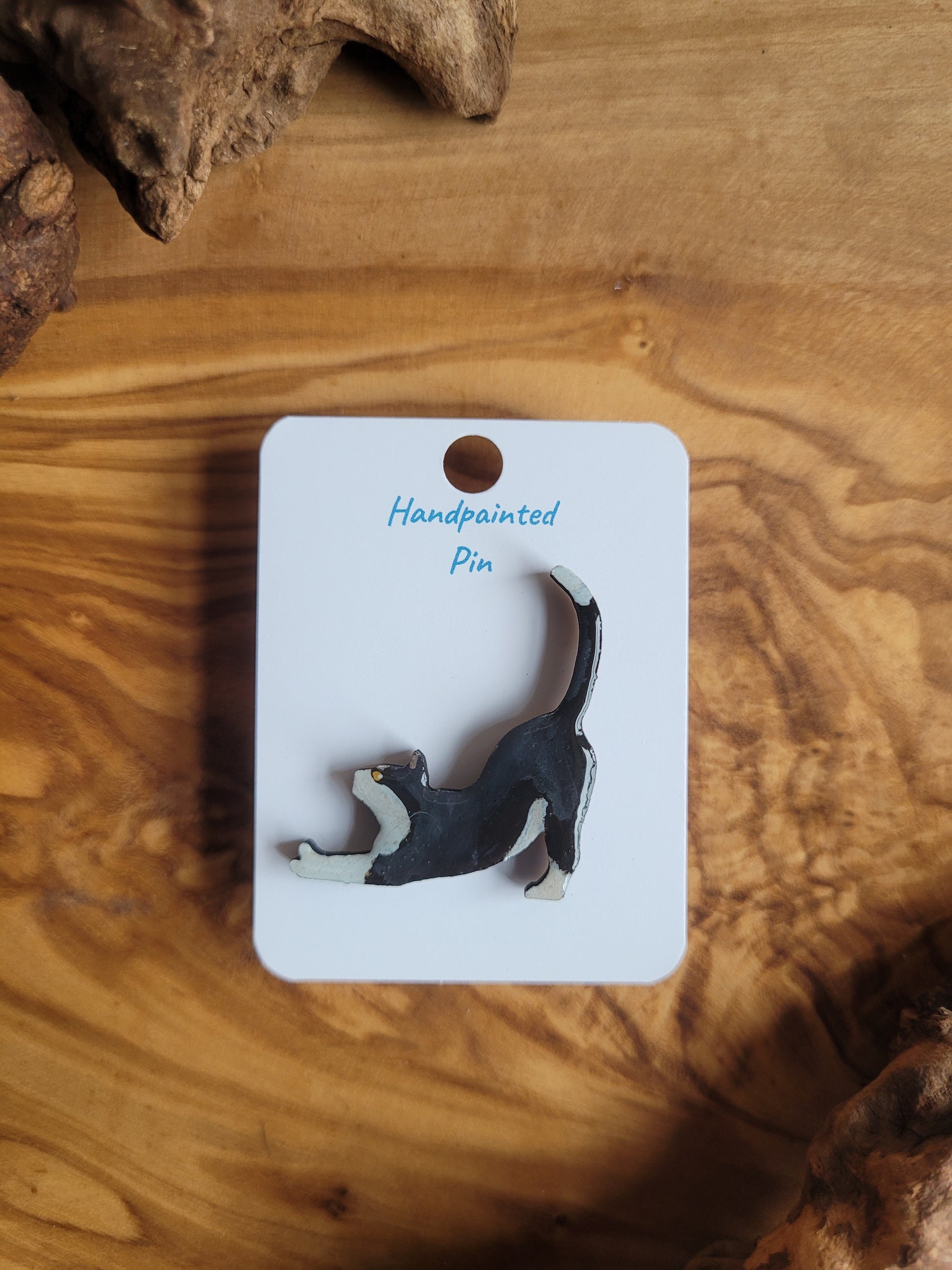 I paint each cat pin by hand onto wood, then finish it with a glossy resin varnish to help it shine and stay protected for years to come. Each one is about 3 cm in size, just the right little companion for your jacket, bag, or pin board.