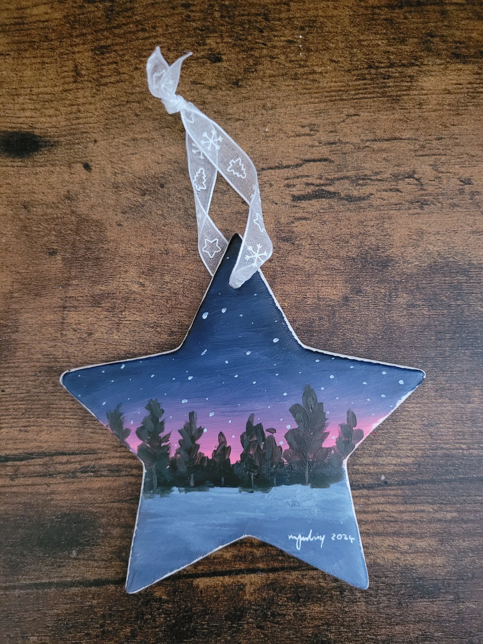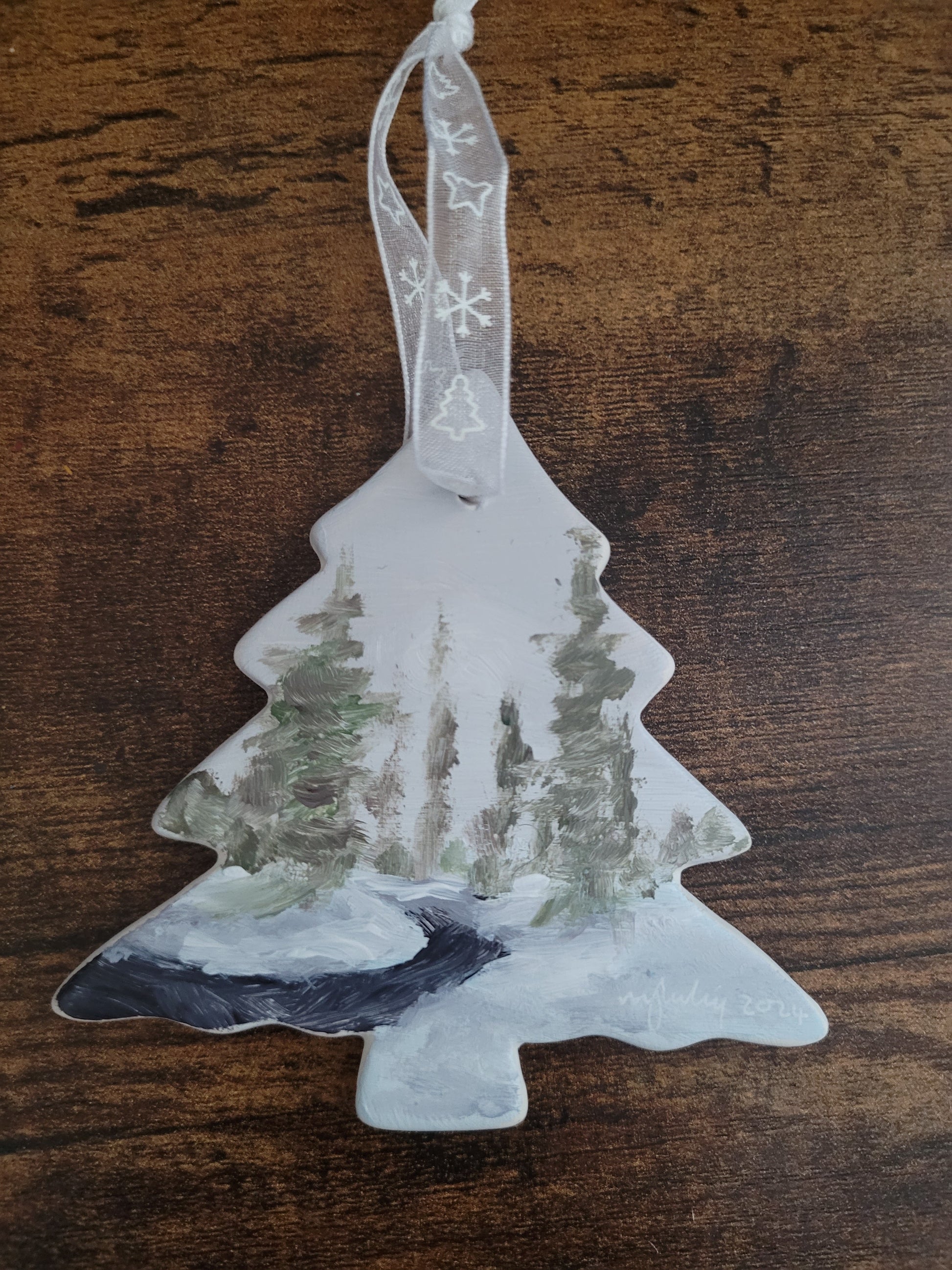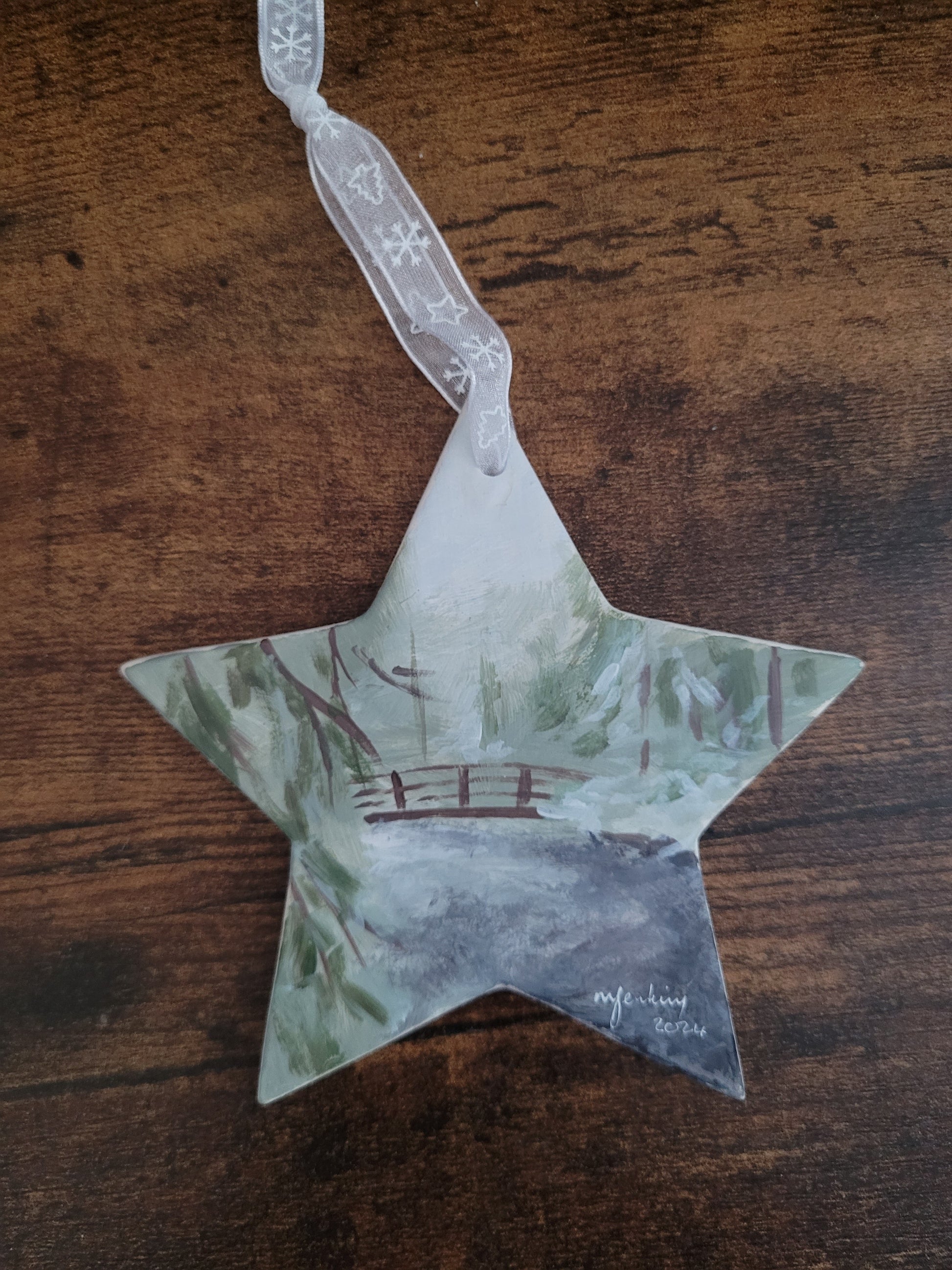 Each ceramic ornament is individually hand-painted with original wintery scenes and festive landscapes — making every piece one of a kind.