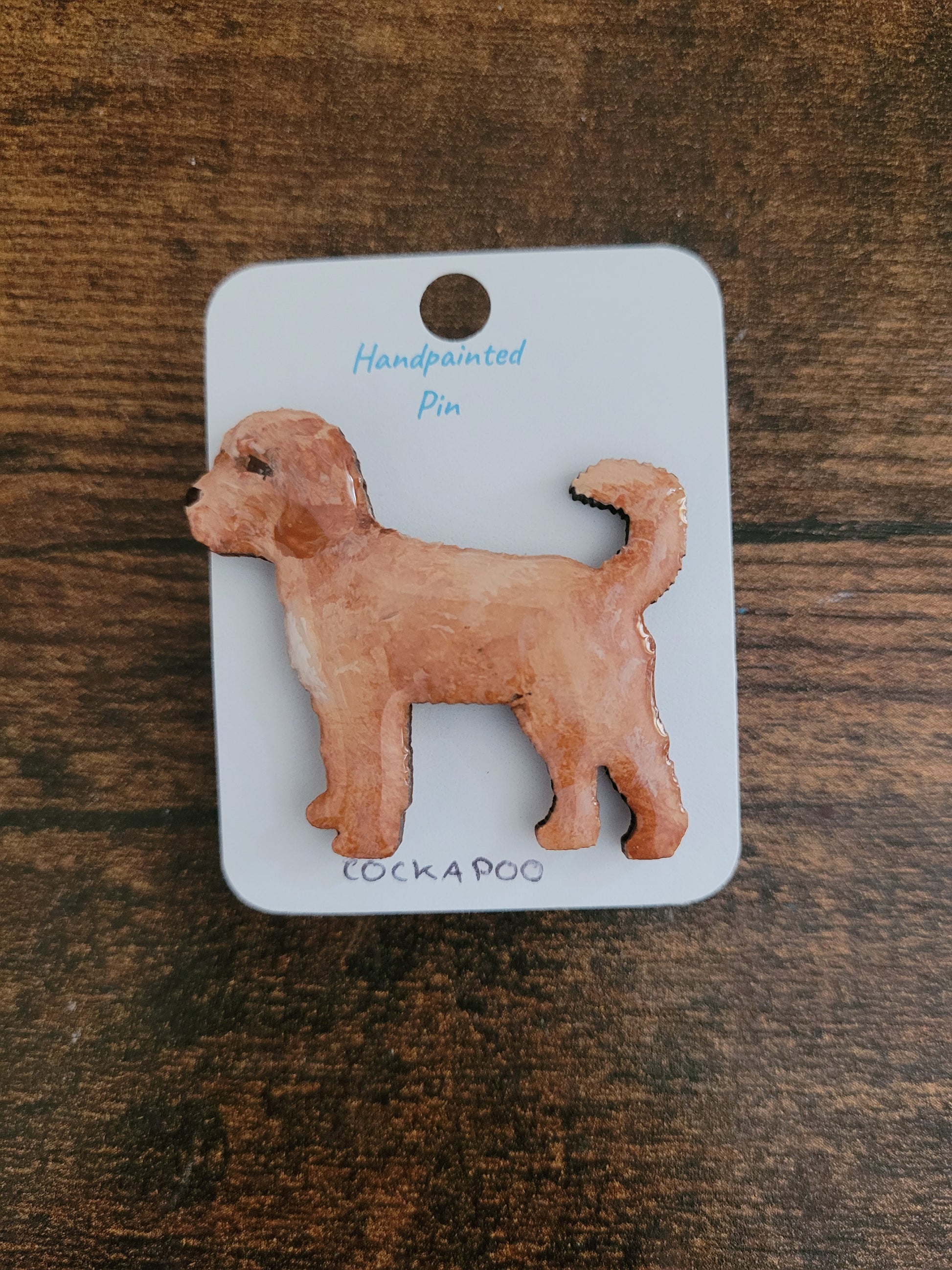 I paint each Cockapoo pin by hand onto wood, then finish it with a glossy resin varnish to help it shine and stay protected for years to come. Each one is about 4 cm in size, just the right little companion for your jacket, bag, or pin board.