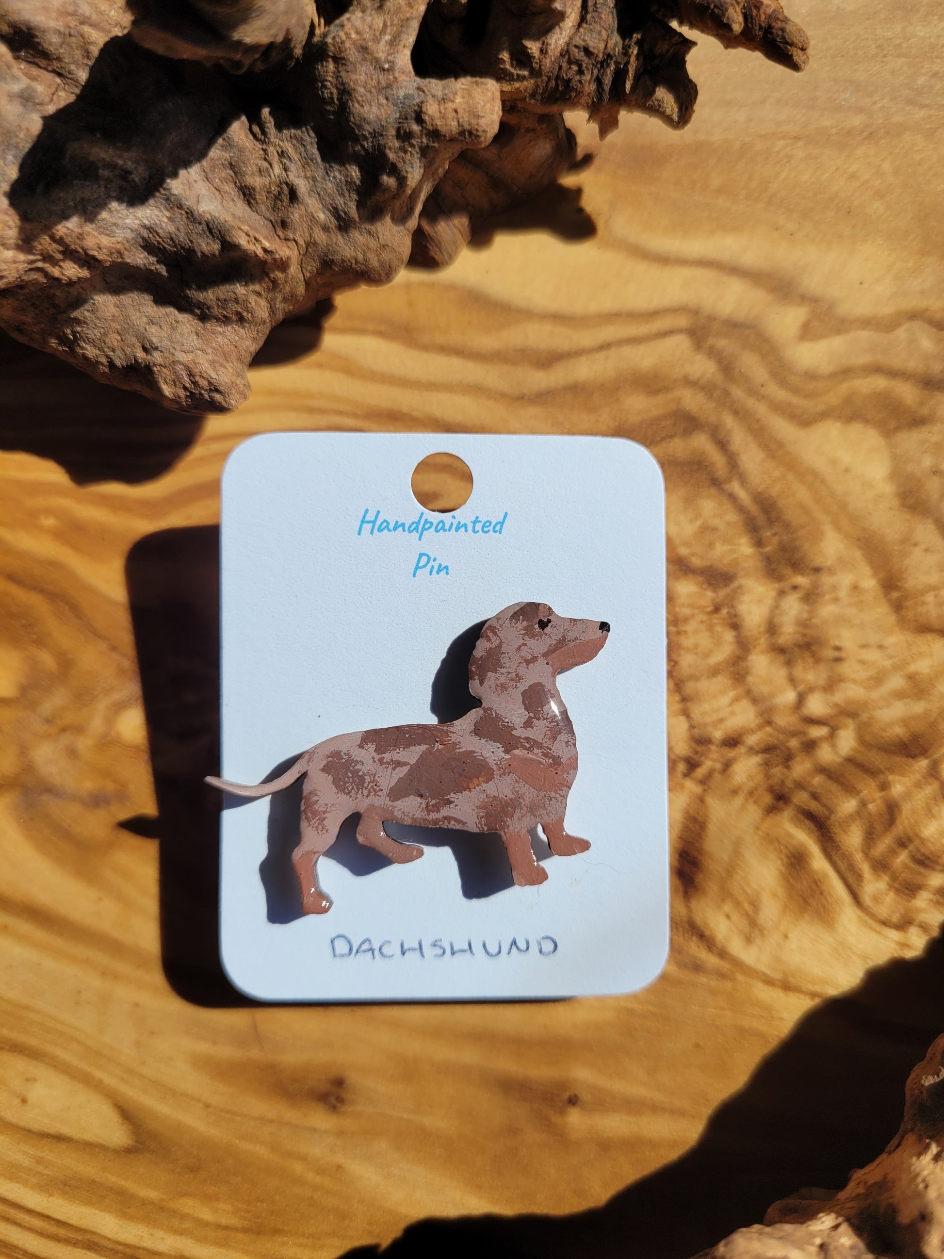 I paint each Dachshund pin by hand onto wood, then finish it with a glossy resin varnish to help it shine and stay protected for years to come. Each one is about 4 cm in size, just the right little companion for your jacket, bag, or pin board.