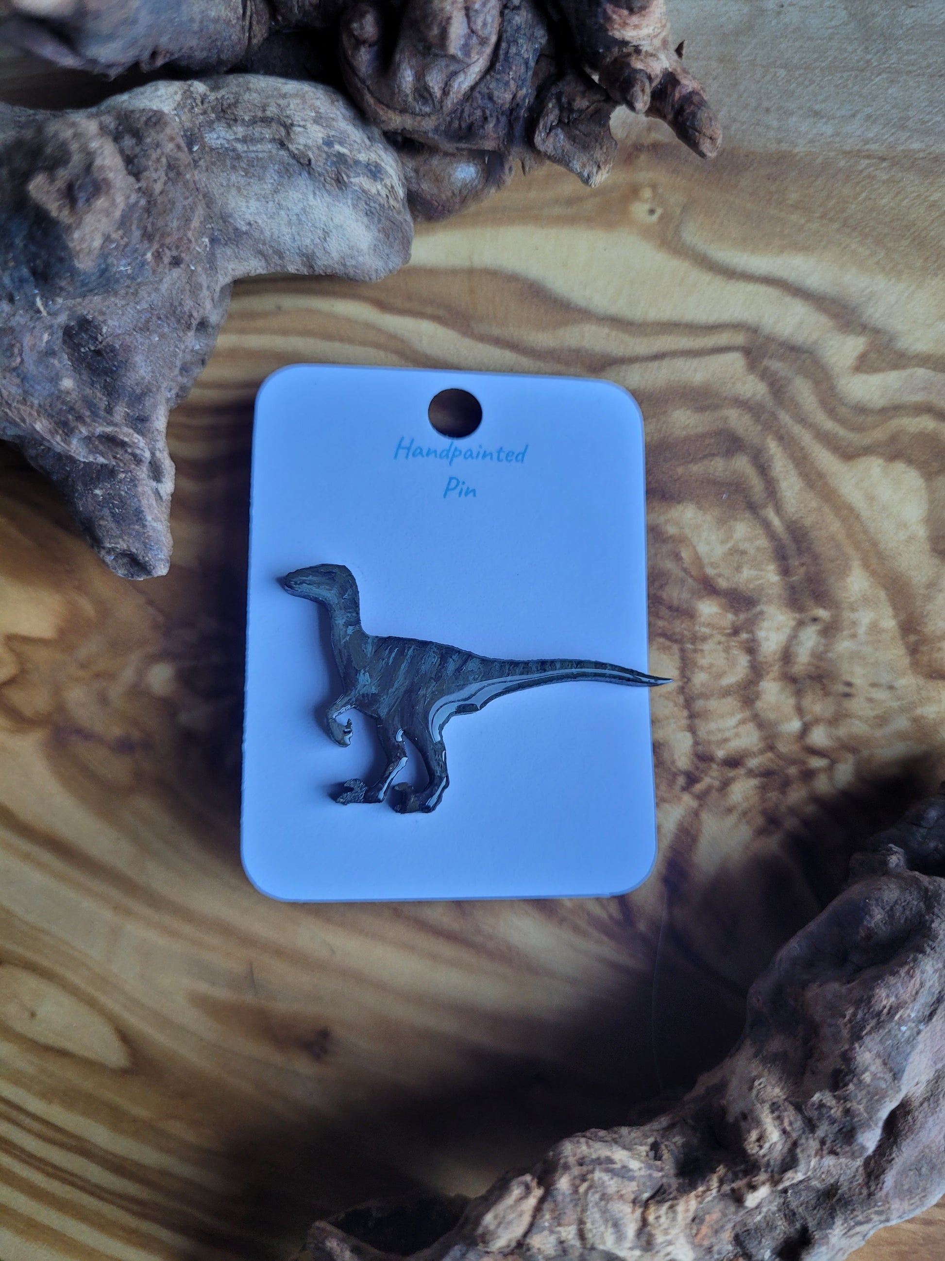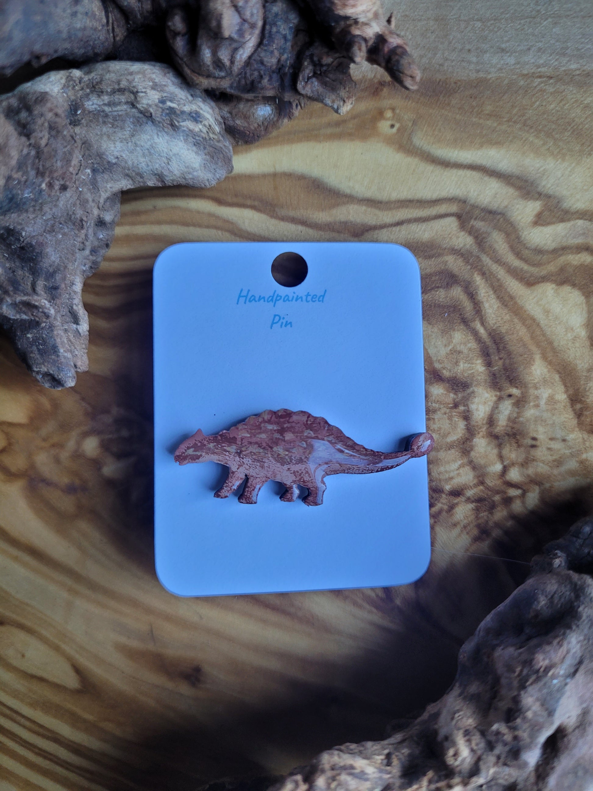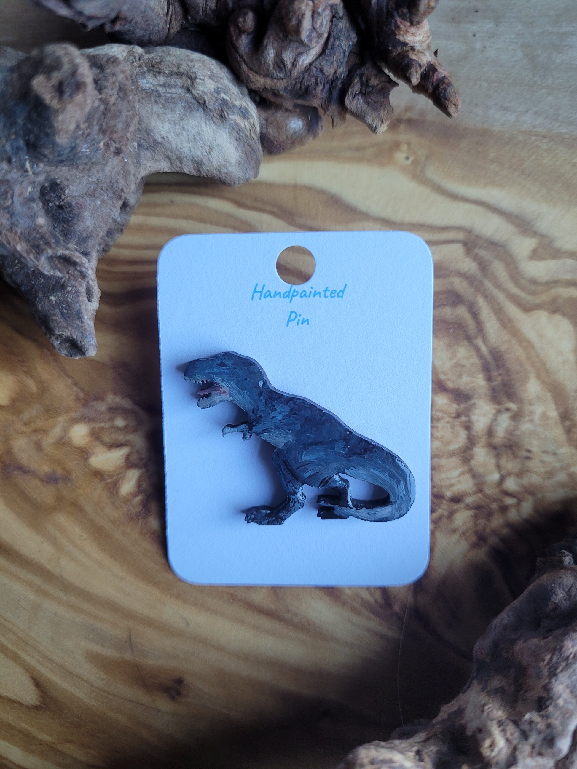 I paint each Dinosaur pin by hand onto wood, then finish it with a glossy resin varnish to help it shine and stay protected for years to come. Each one is about 4 cm in size, just the right little companion for your jacket, bag, or pin board.