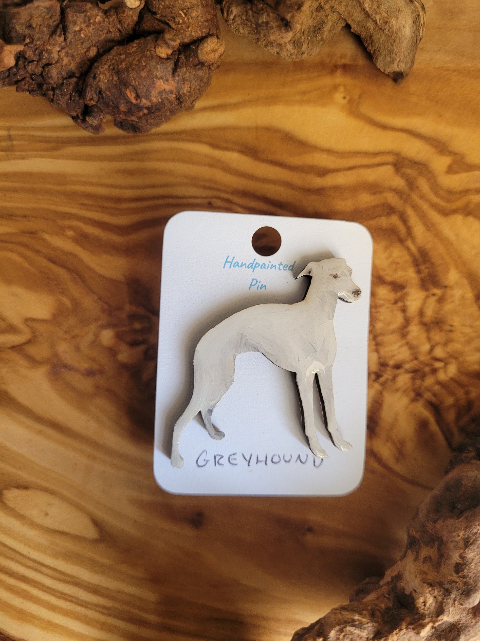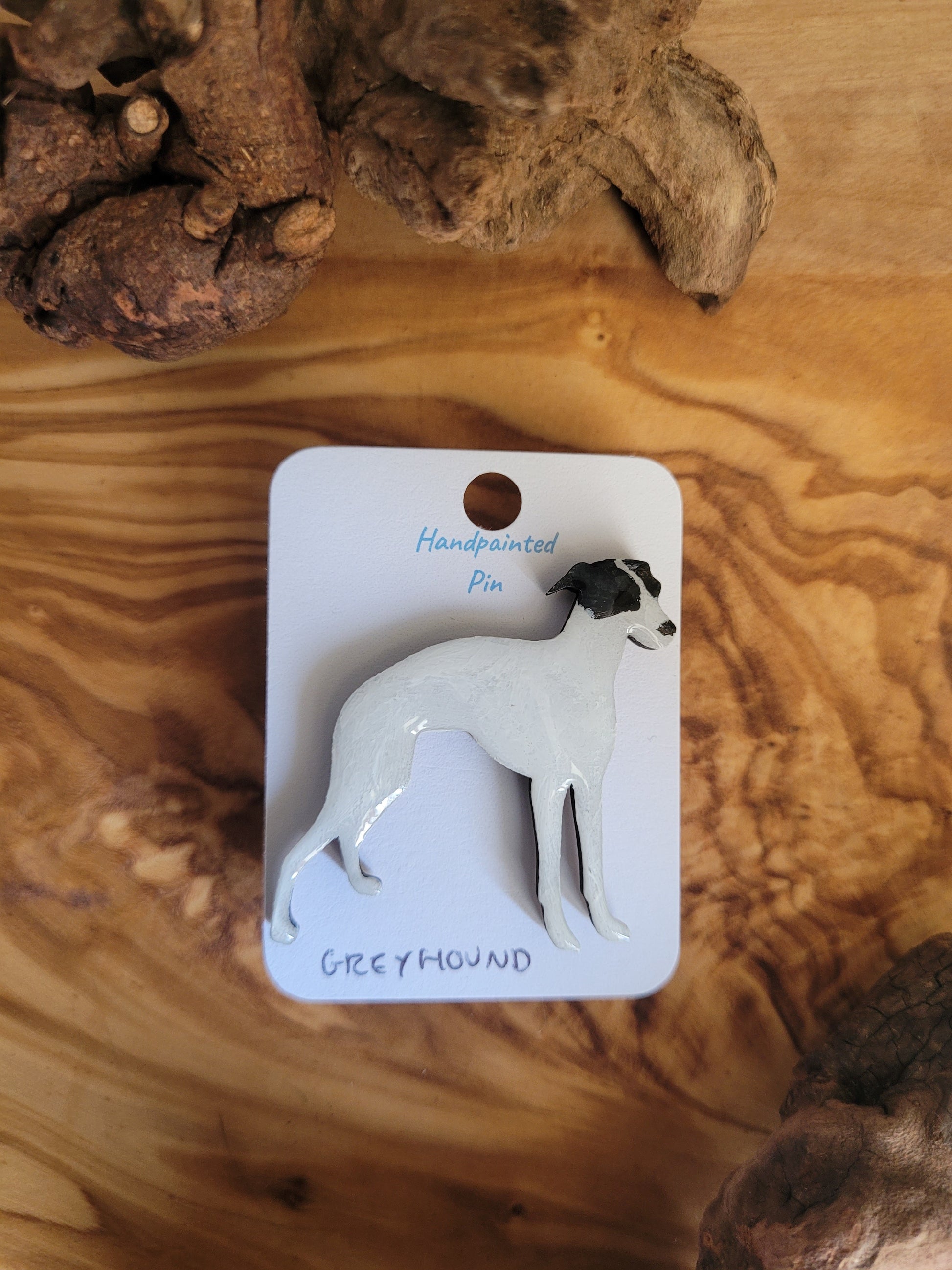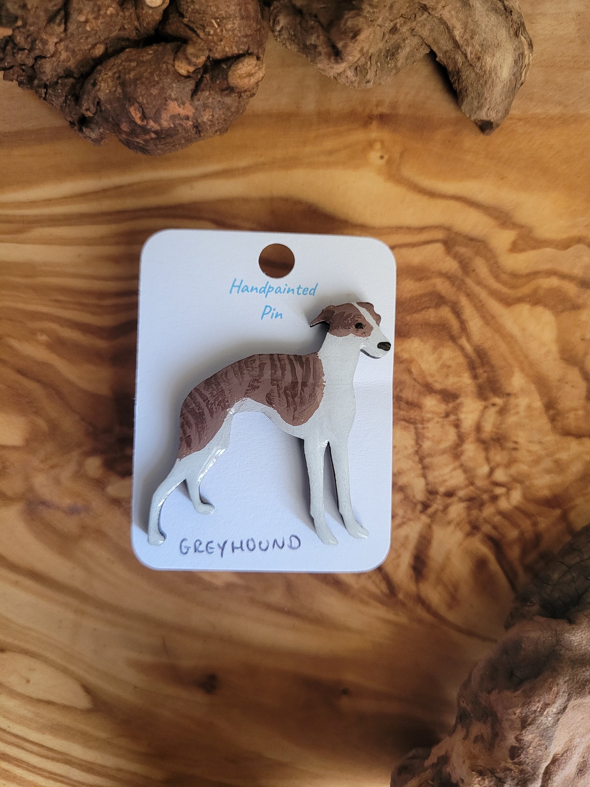 I paint each Greyhound pin by hand onto wood, then finish it with a glossy resin varnish to help it shine and stay protected for years to come. Each one is about 4 cm in size, just the right little companion for your jacket, bag, or pin board.