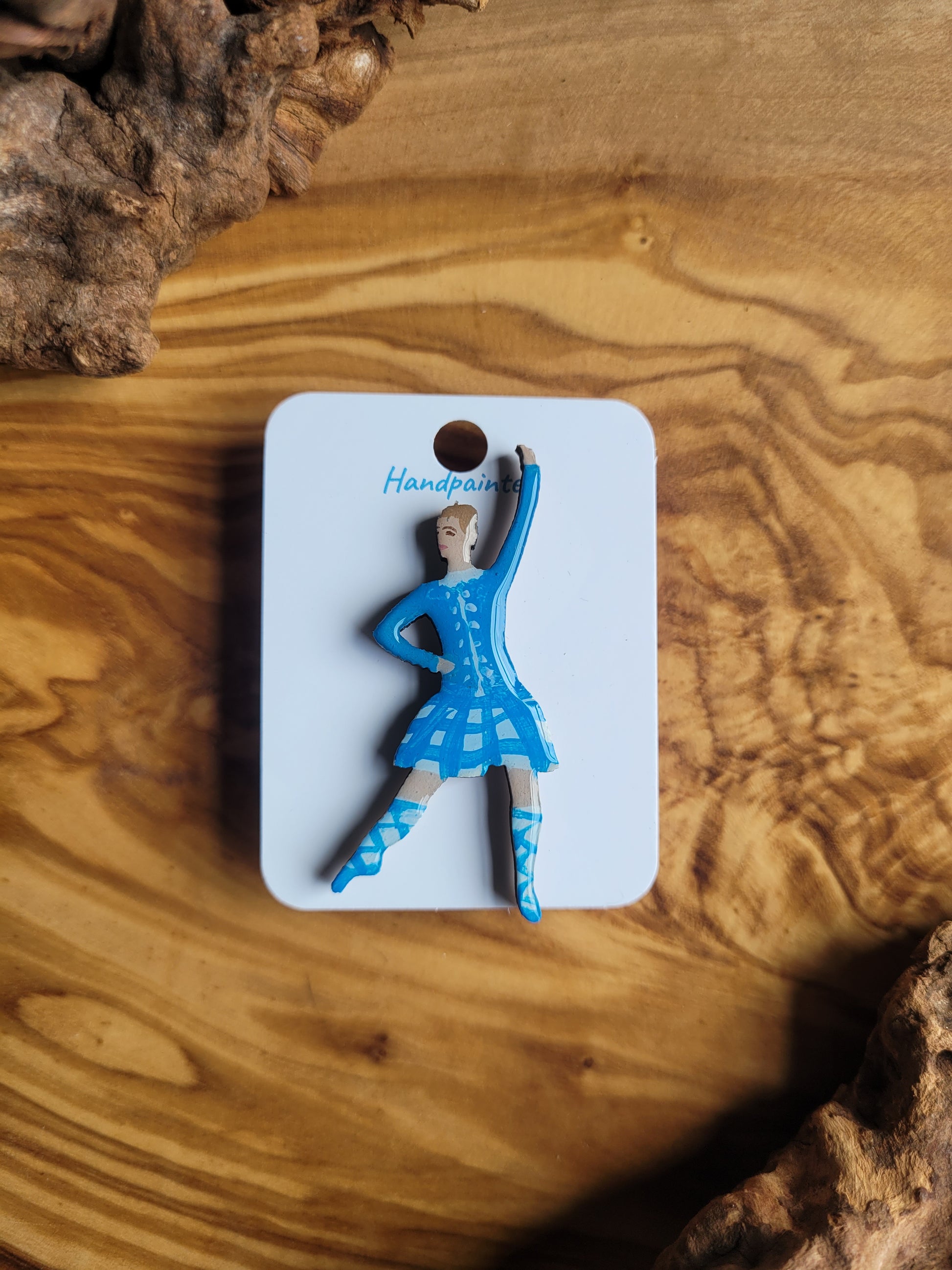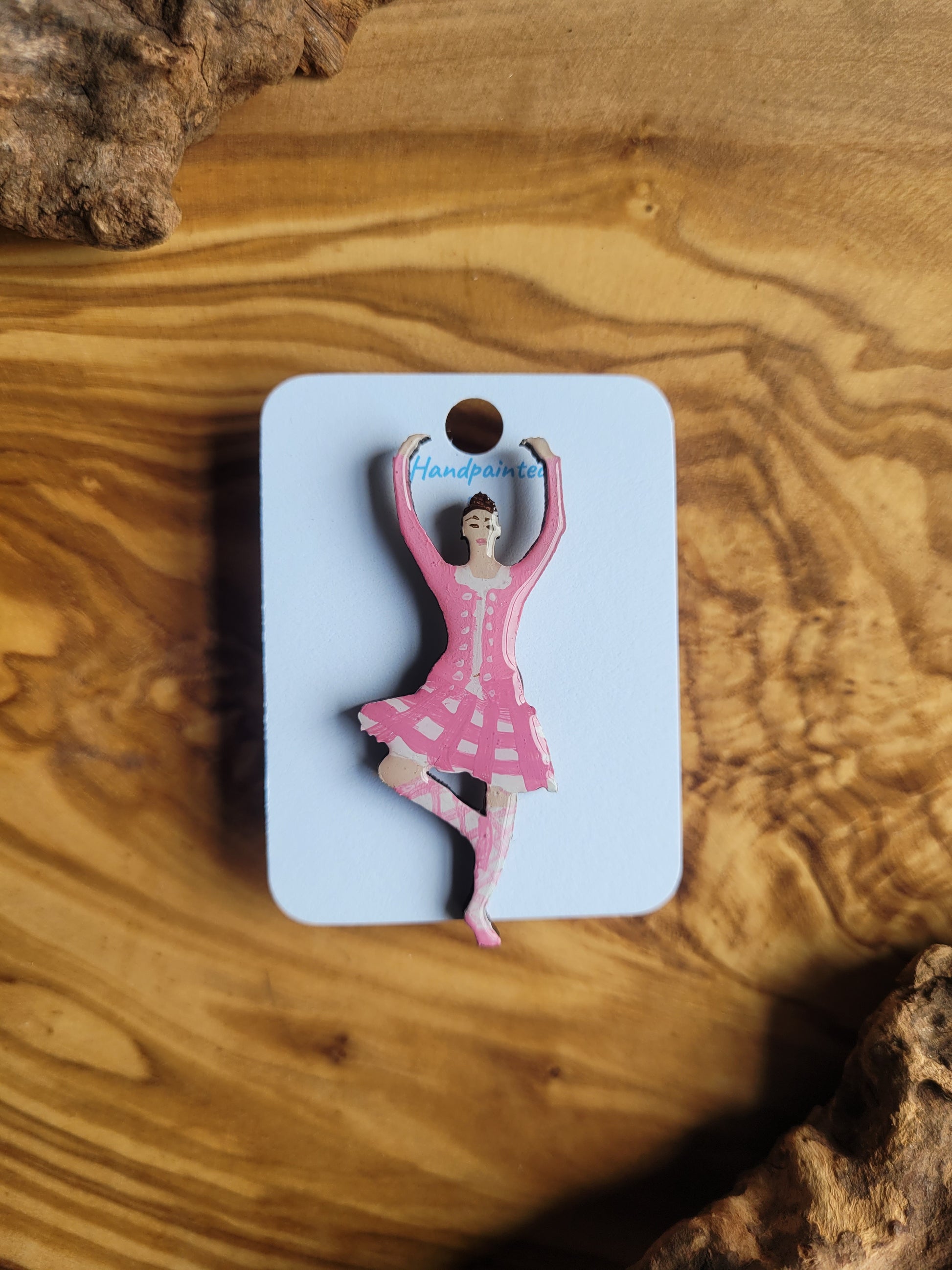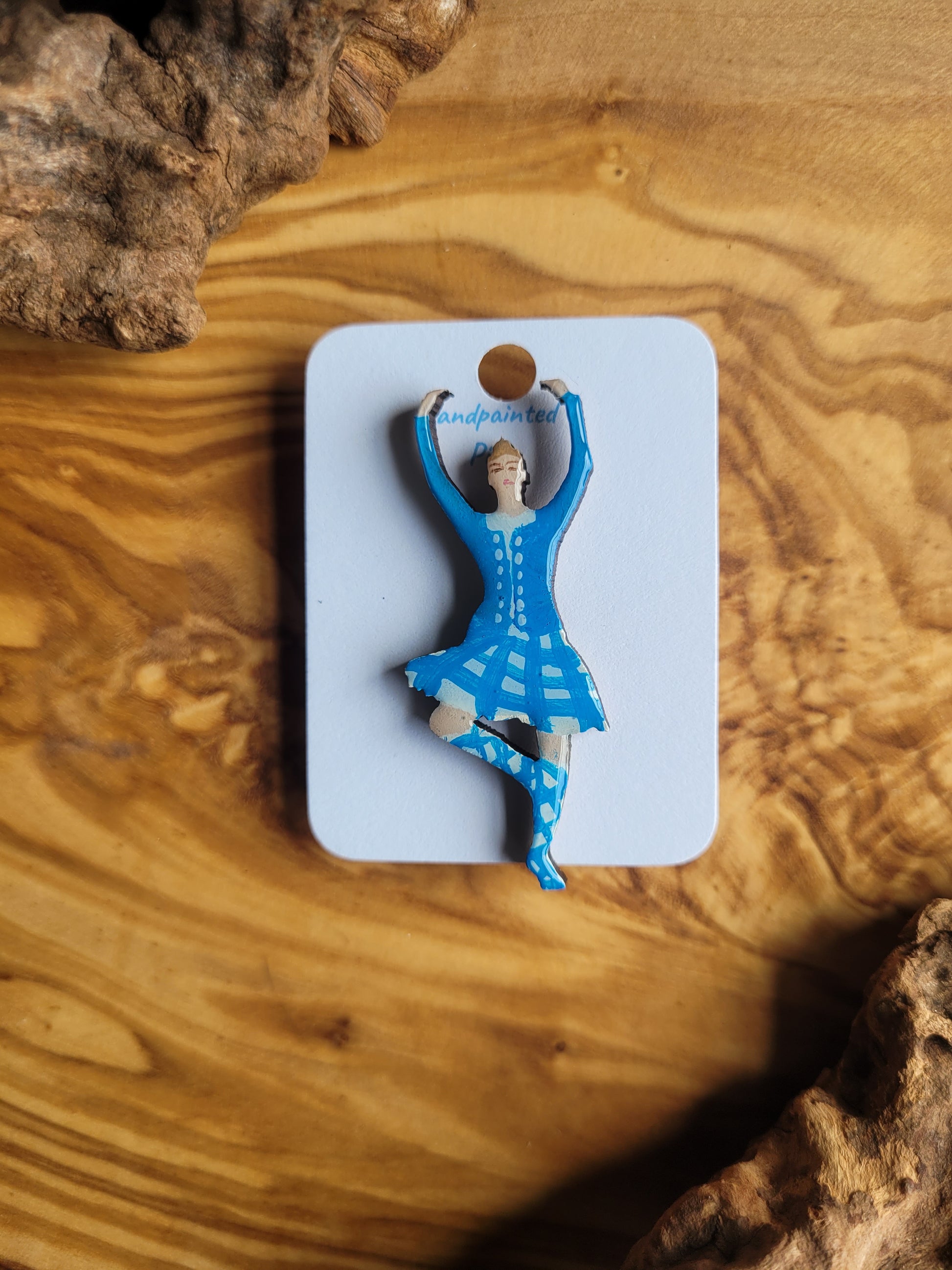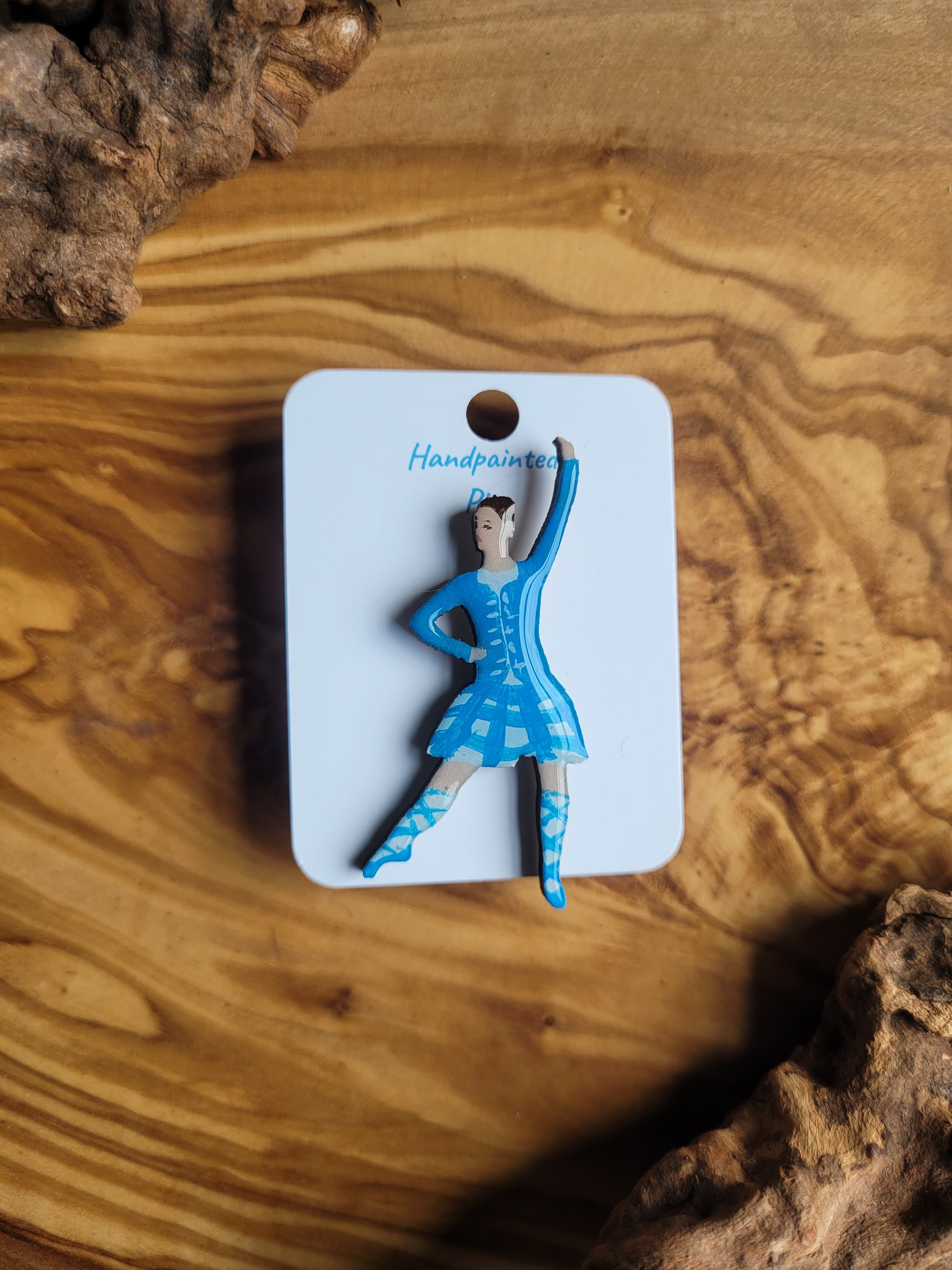 I paint each Highland Dancer pin by hand onto wood, then finish it with a glossy resin varnish to help it shine and stay protected for years to come. Each one is about 5 cm in size, just the right little companion for your jacket, bag, or pin board.