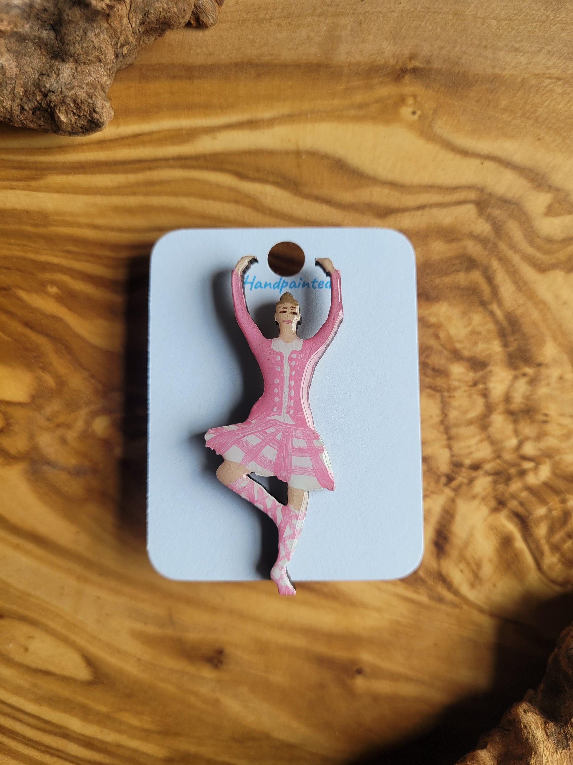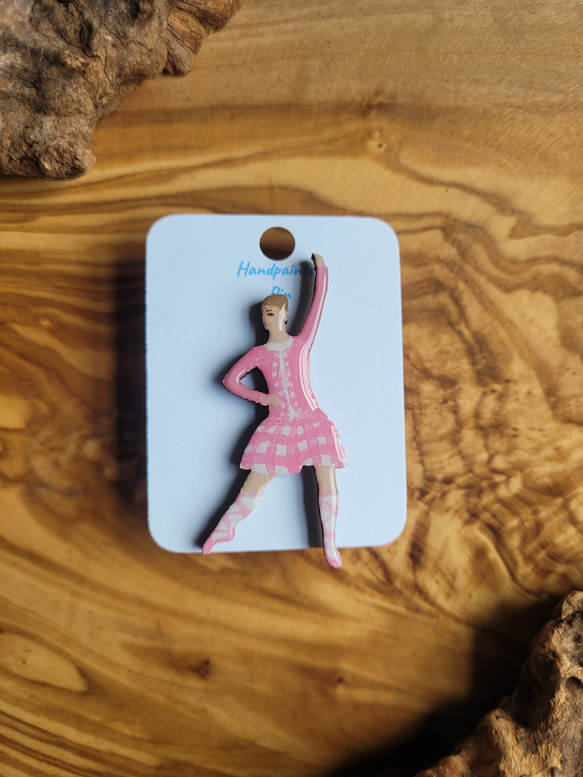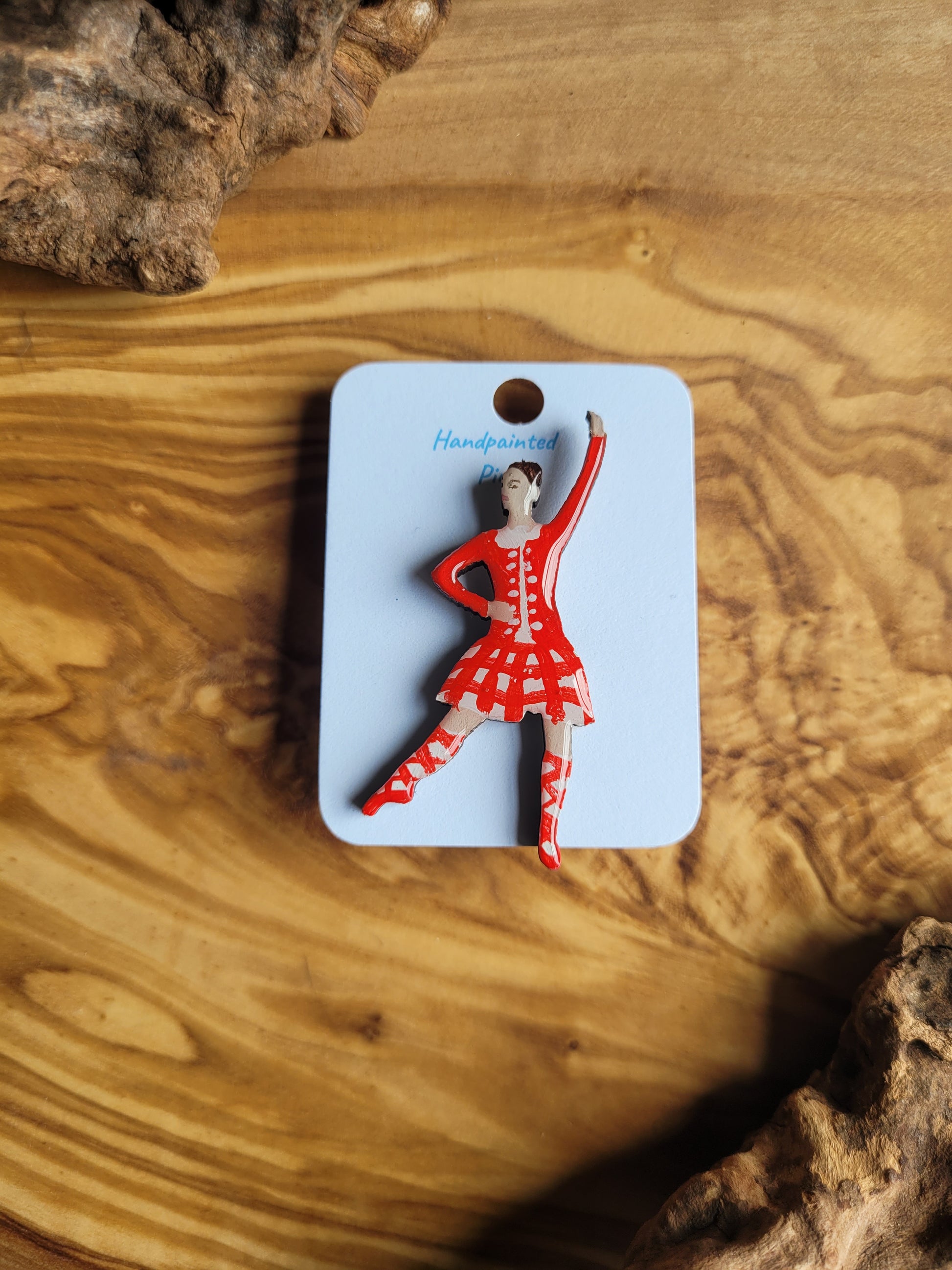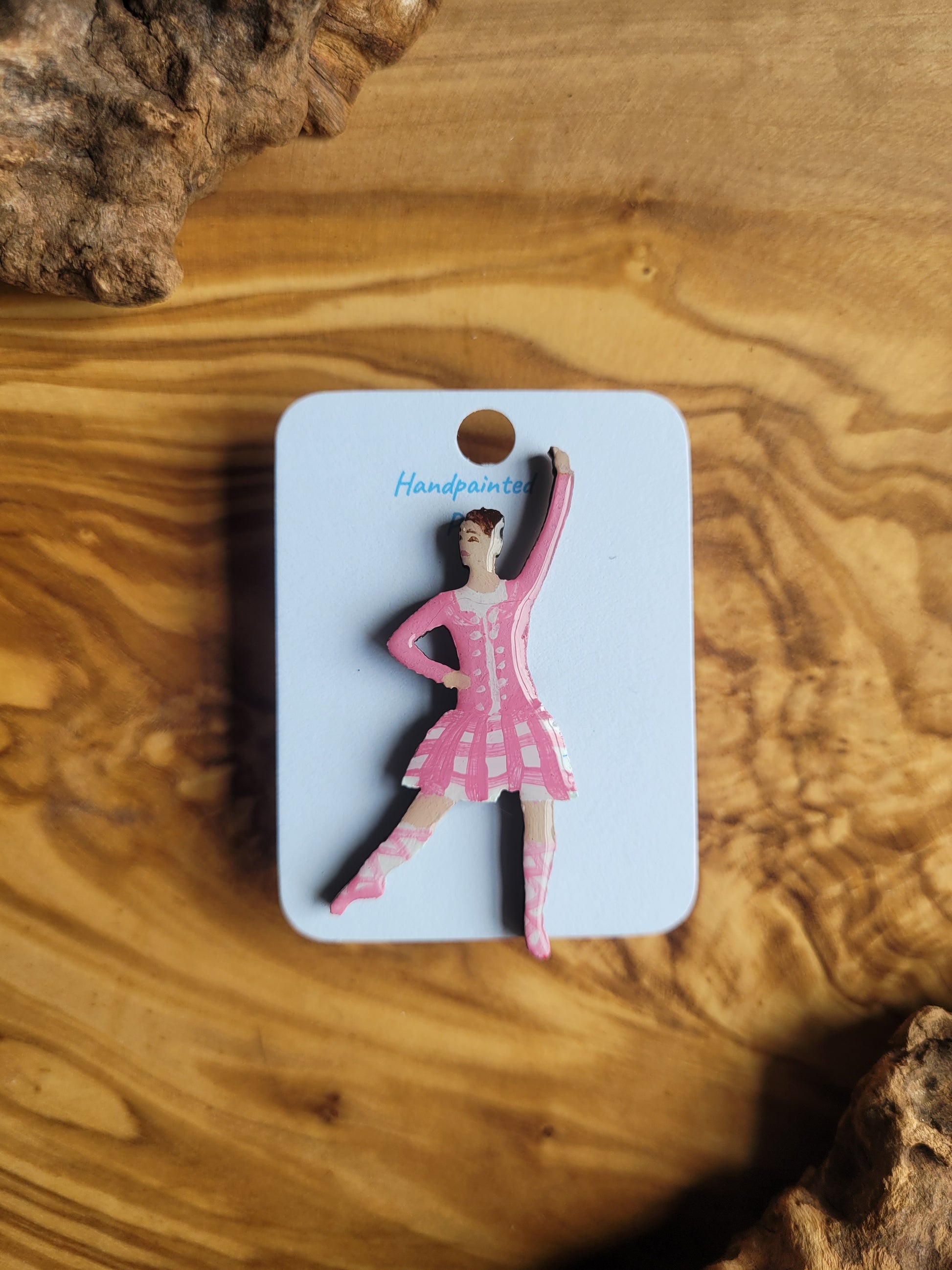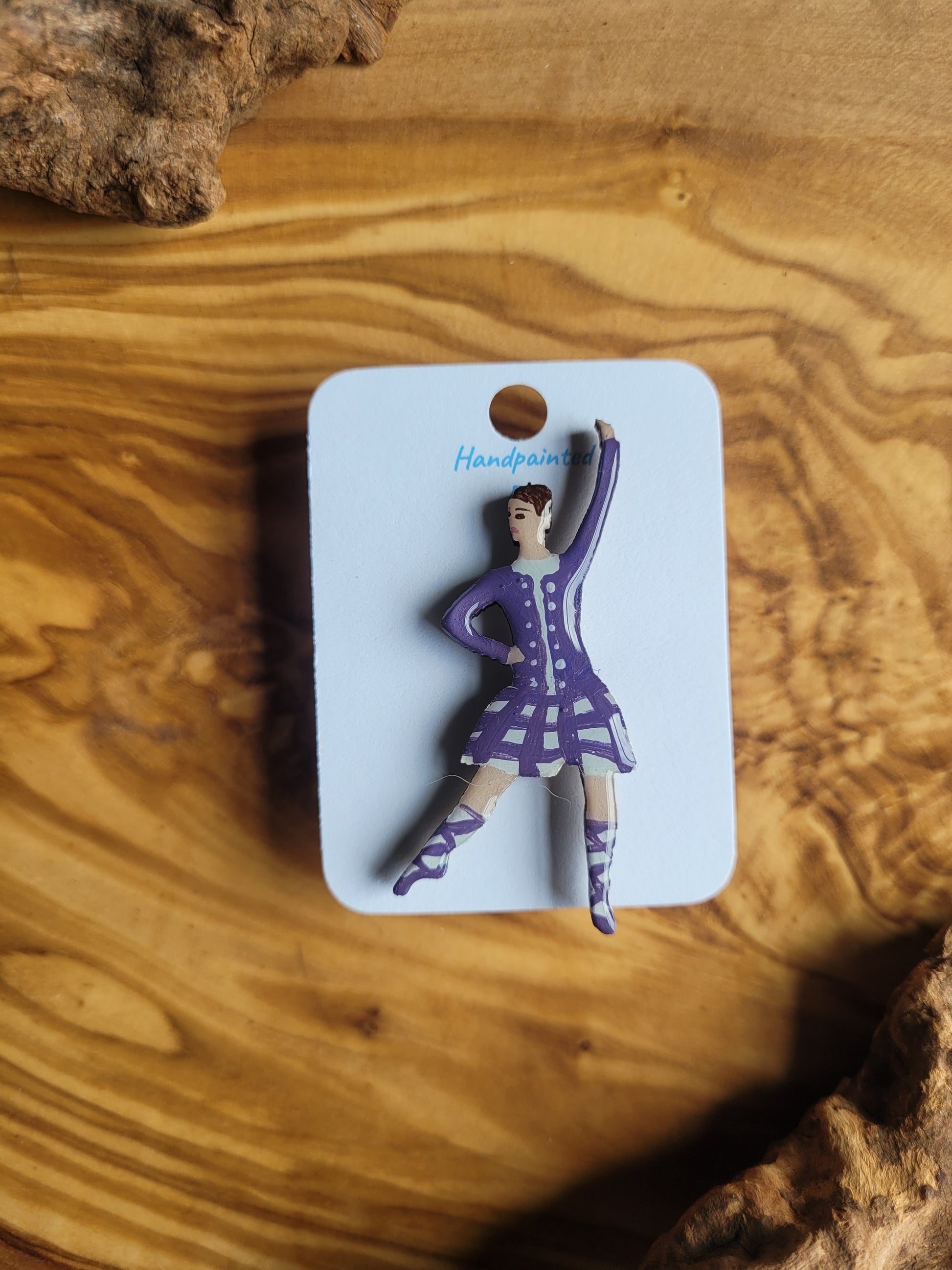 I paint each Highland Dancer pin by hand onto wood, then finish it with a glossy resin varnish to help it shine and stay protected for years to come. Each one is about 5 cm in size, just the right little companion for your jacket, bag, or pin board.