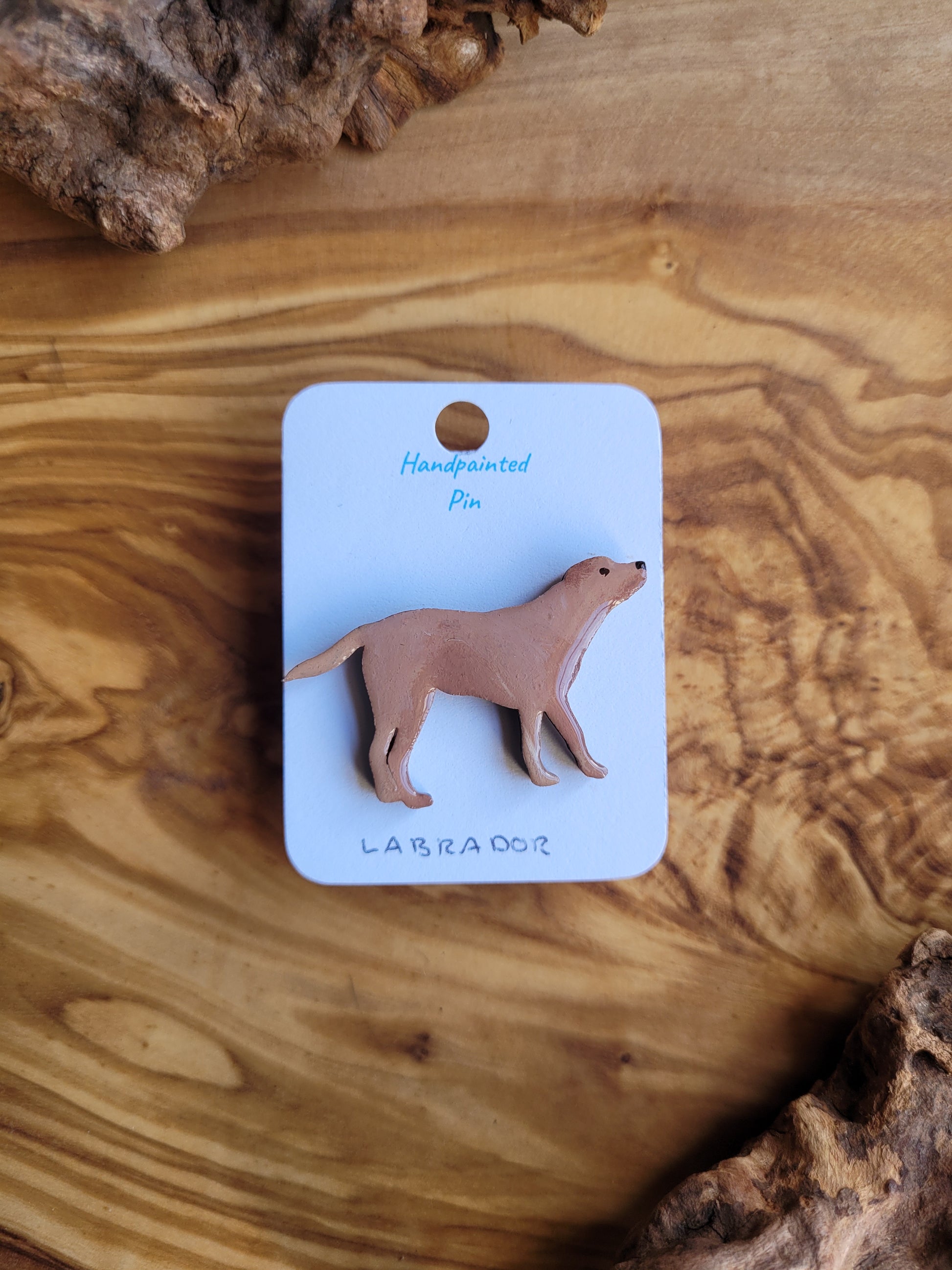 I paint each Labrador pin by hand onto wood, then finish it with a glossy resin varnish to help it shine and stay protected for years to come. Each one is about 4 cm in size, just the right little companion for your jacket, bag, or pin board.