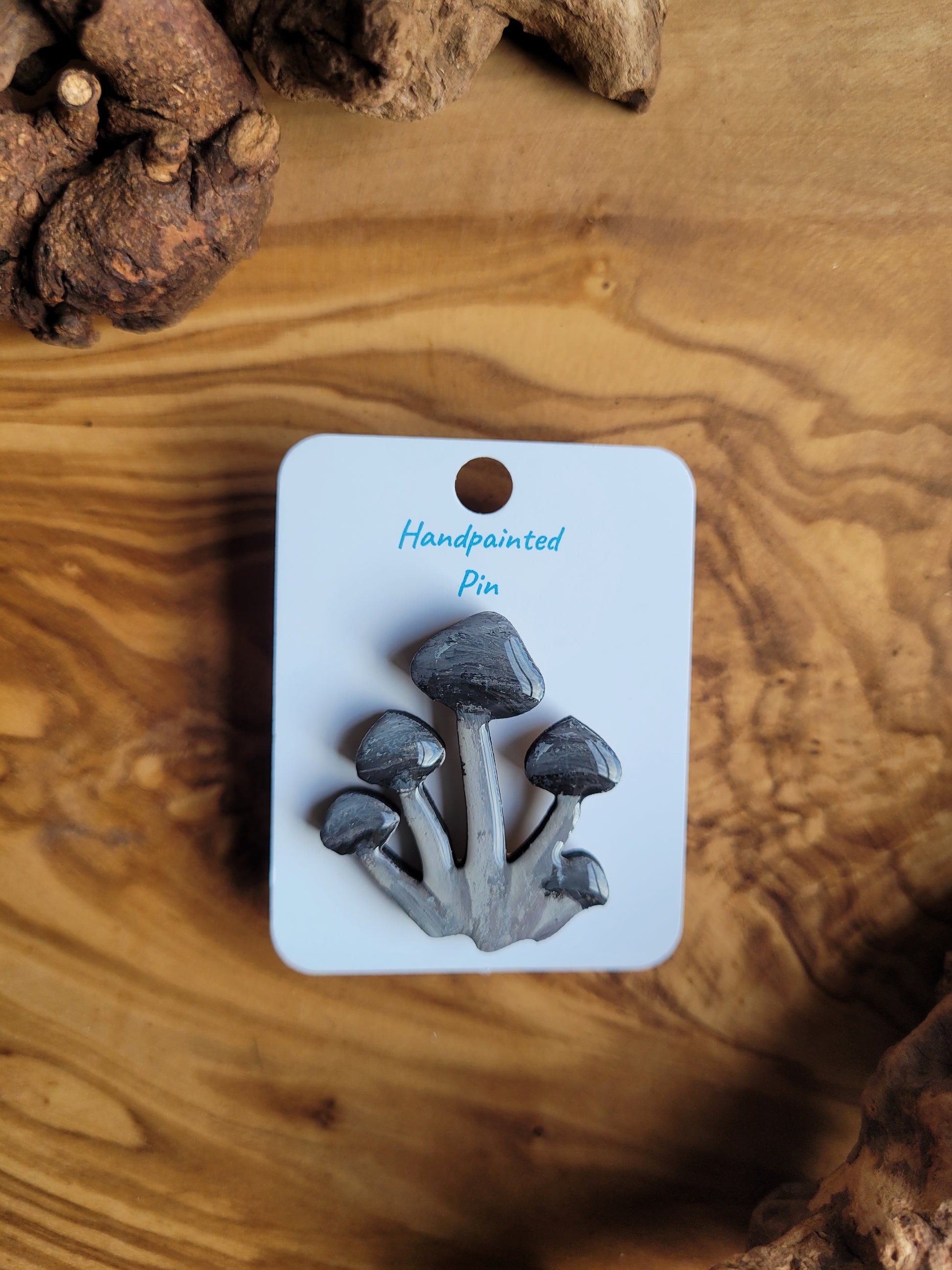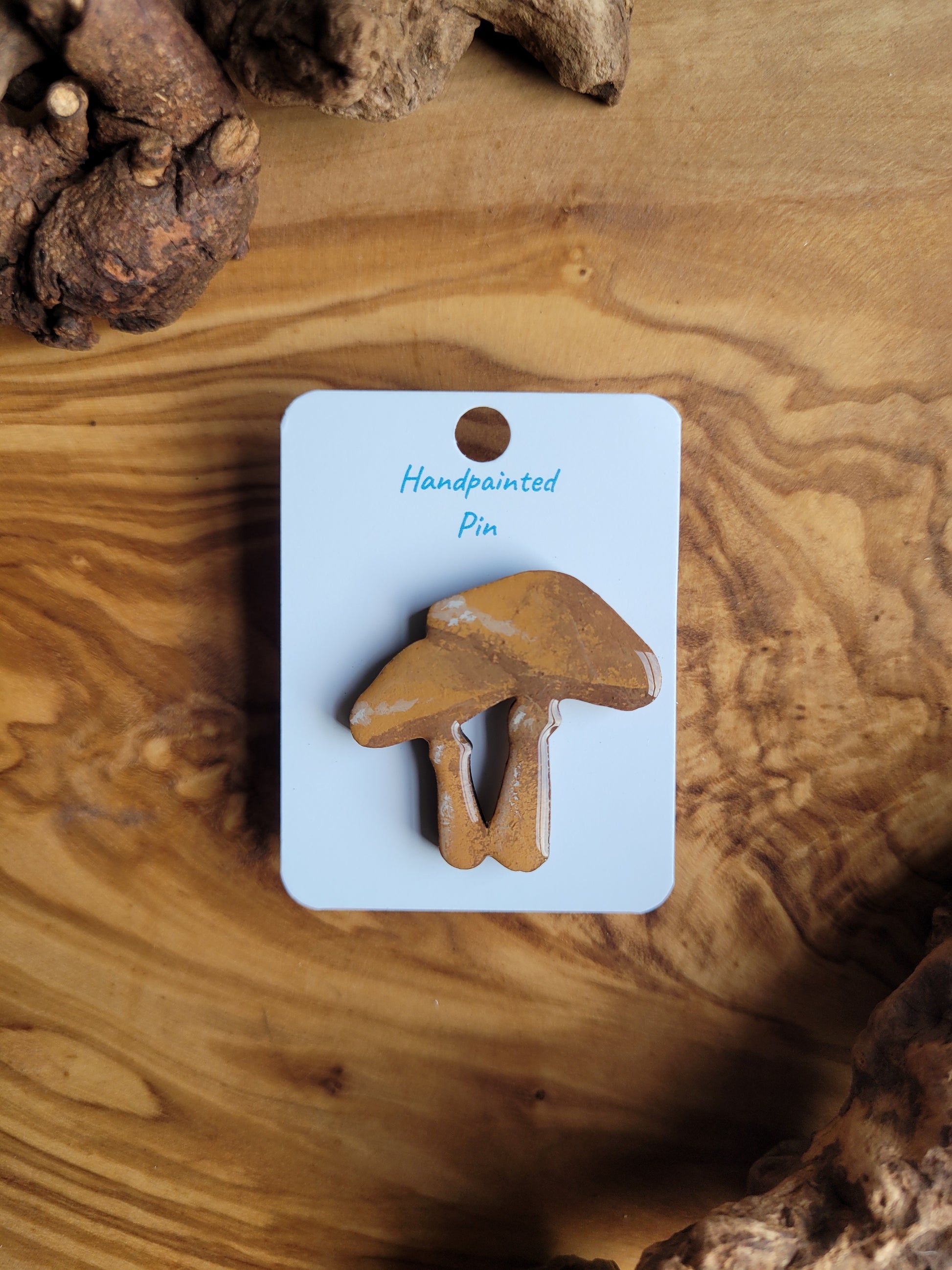 I paint each Mushroom pin by hand onto wood, then finish it with a glossy resin varnish to help it shine and stay protected for years to come. Each one is about 4 cm in size, just the right little companion for your jacket, bag, or pin board.