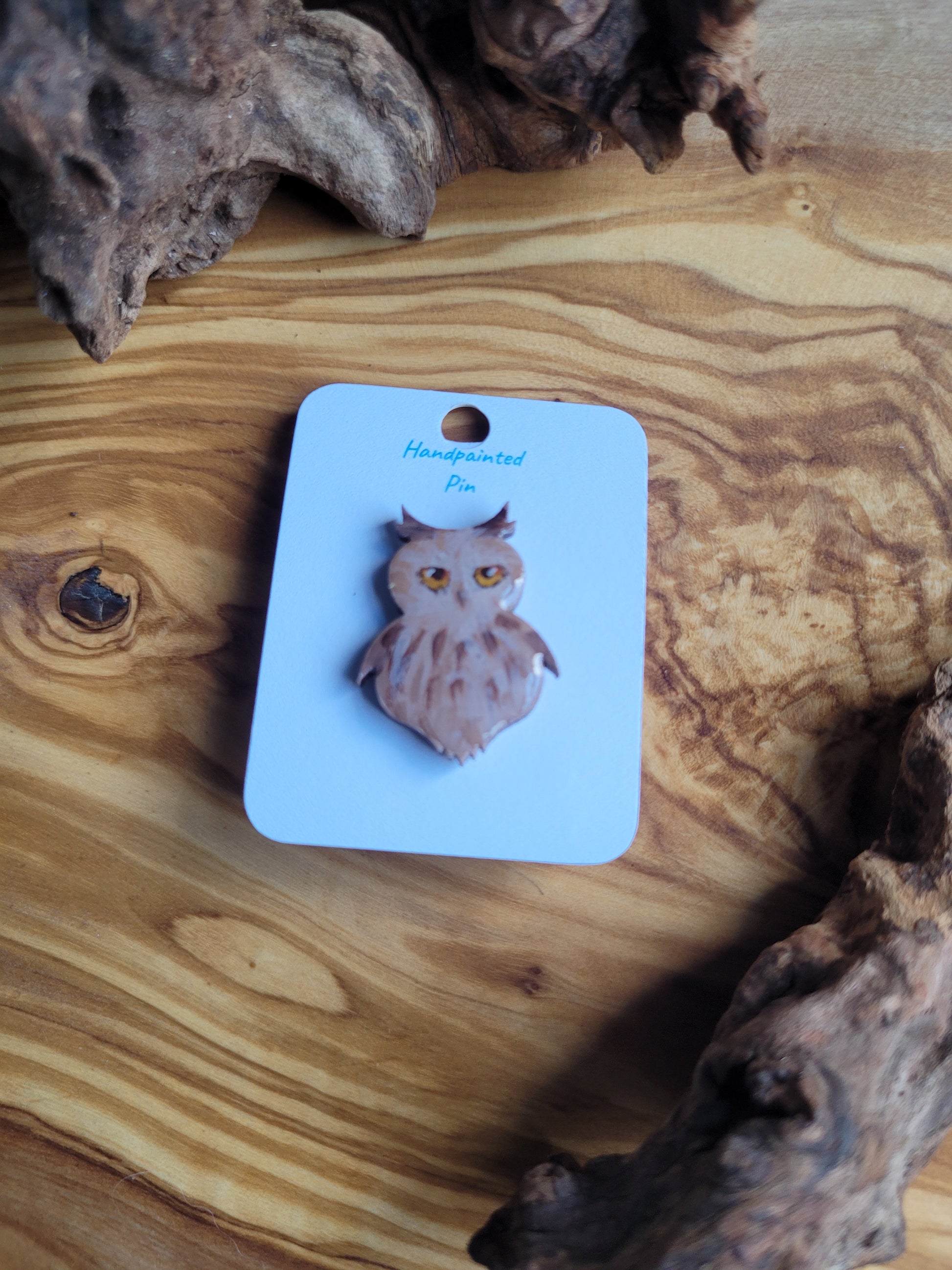 I paint each owl pin by hand onto wood, then finish it with a glossy resin varnish to help it shine and stay protected for years to come. Each one is about 3 cm in size, just the right little companion for your jacket, bag, or pin board.