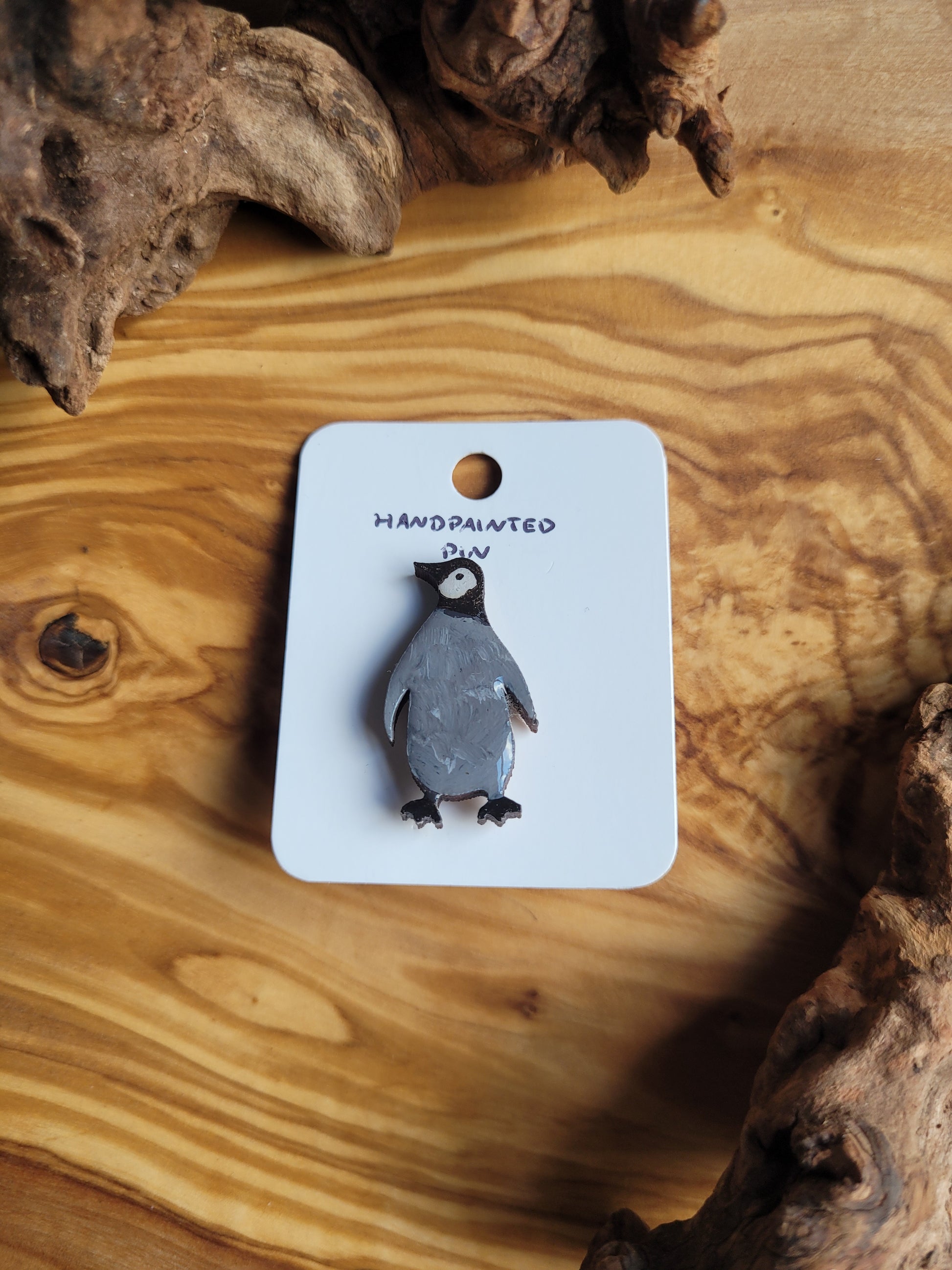 I paint each Penguin pin by hand onto wood, then finish it with a glossy resin varnish to help it shine and stay protected for years to come. Each one is about 4 cm in size, just the right little companion for your jacket, bag, or pin board.