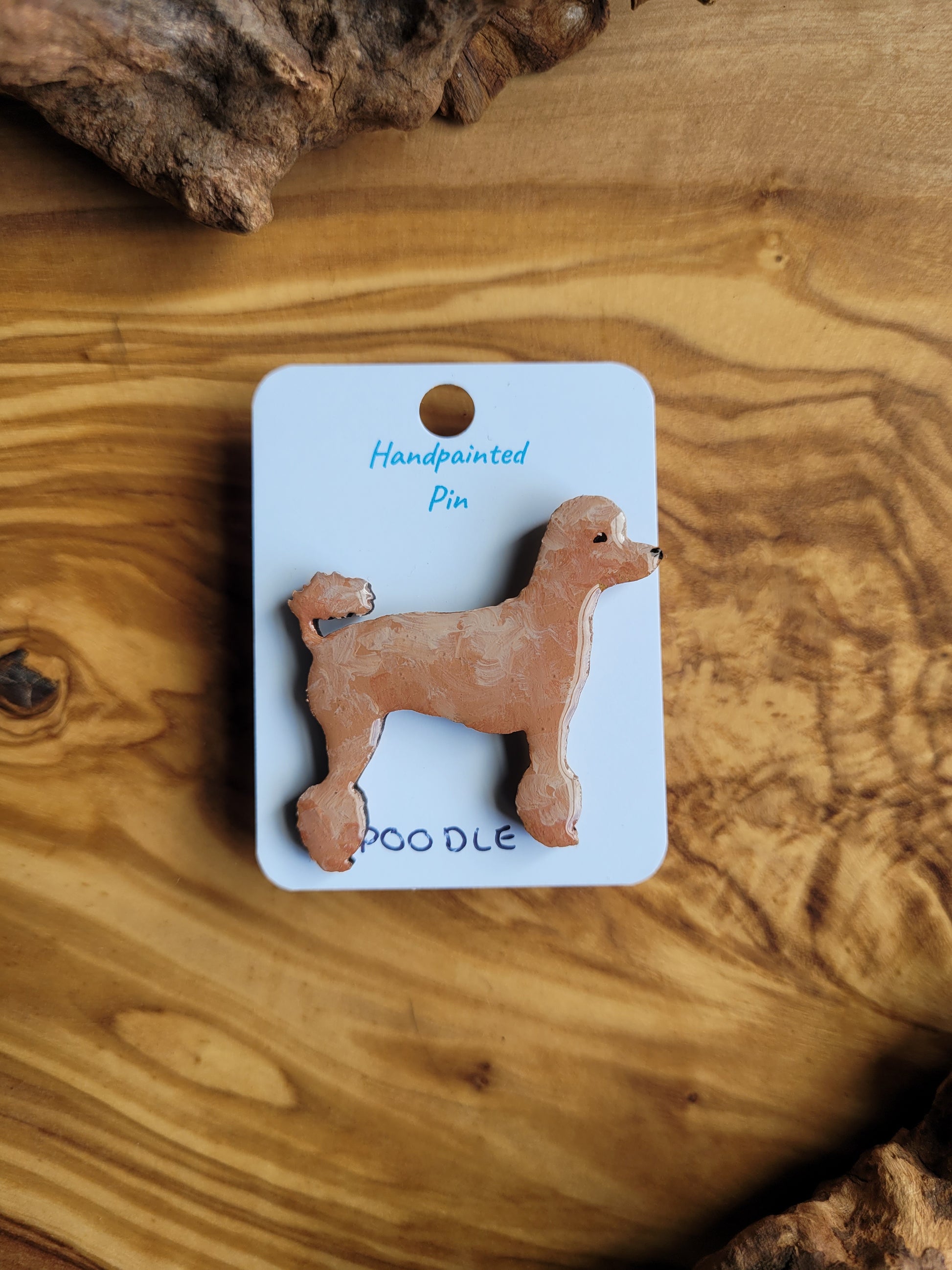 I paint each Poodle pin by hand onto wood, then finish it with a glossy resin varnish to help it shine and stay protected for years to come. Each one is about 4 cm in size, just the right little companion for your jacket, bag, or pin board.