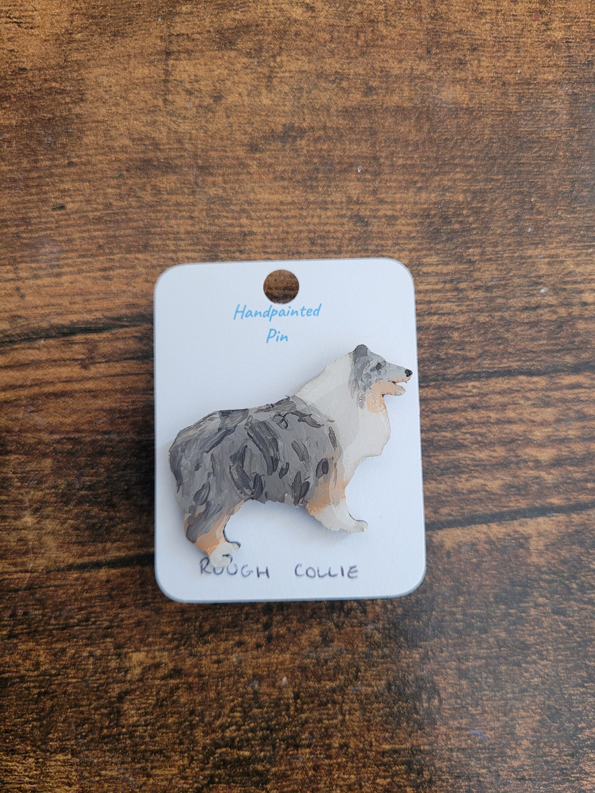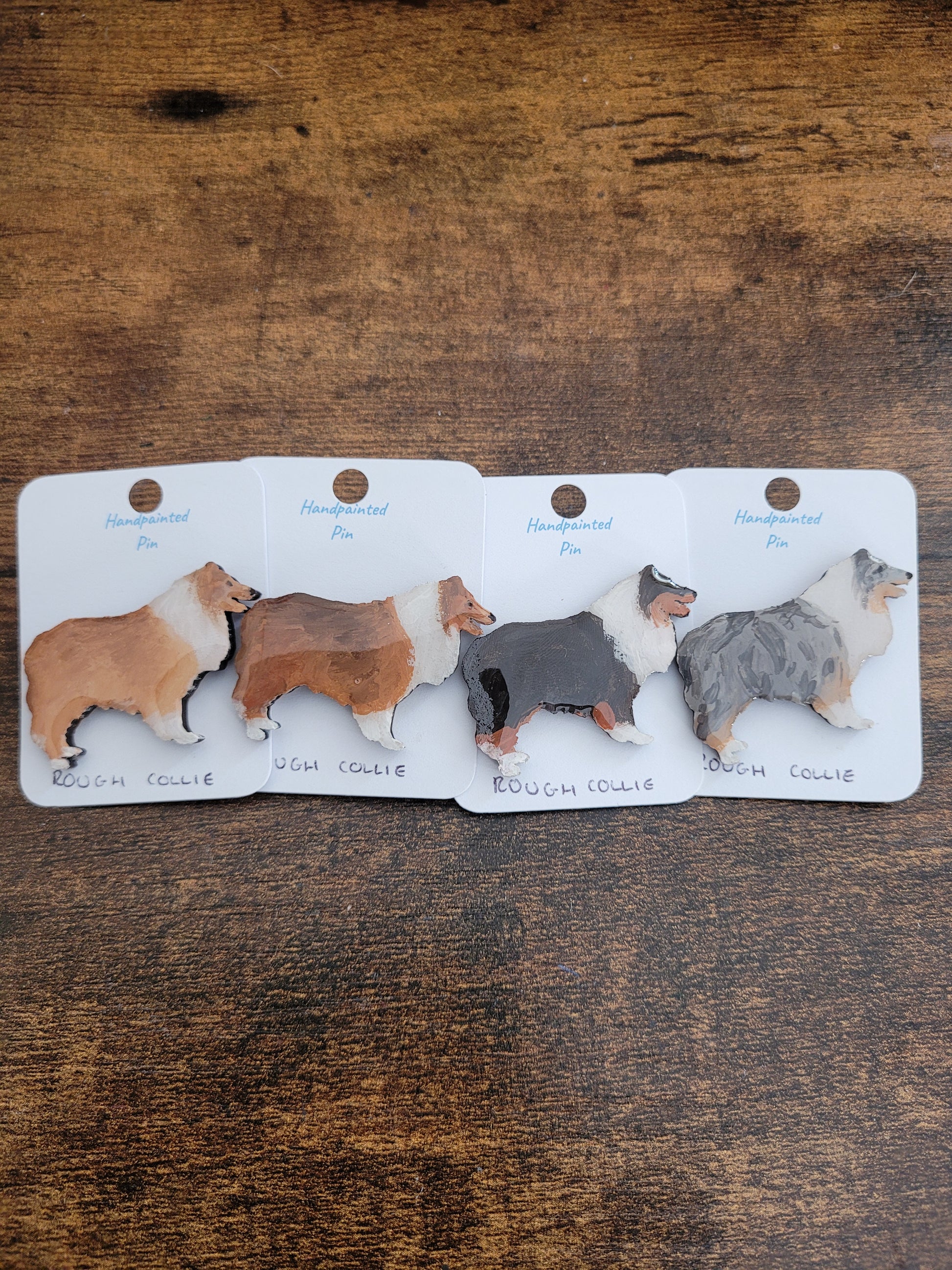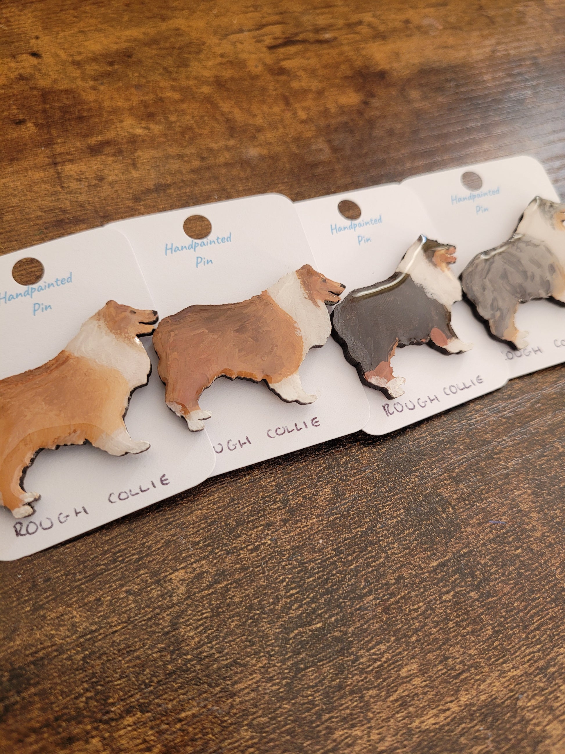 I paint each Rough Collie pin by hand onto wood, then finish it with a glossy resin varnish to help it shine and stay protected for years to come. Each one is about 4 cm in size, just the right little companion for your jacket, bag, or pin board.