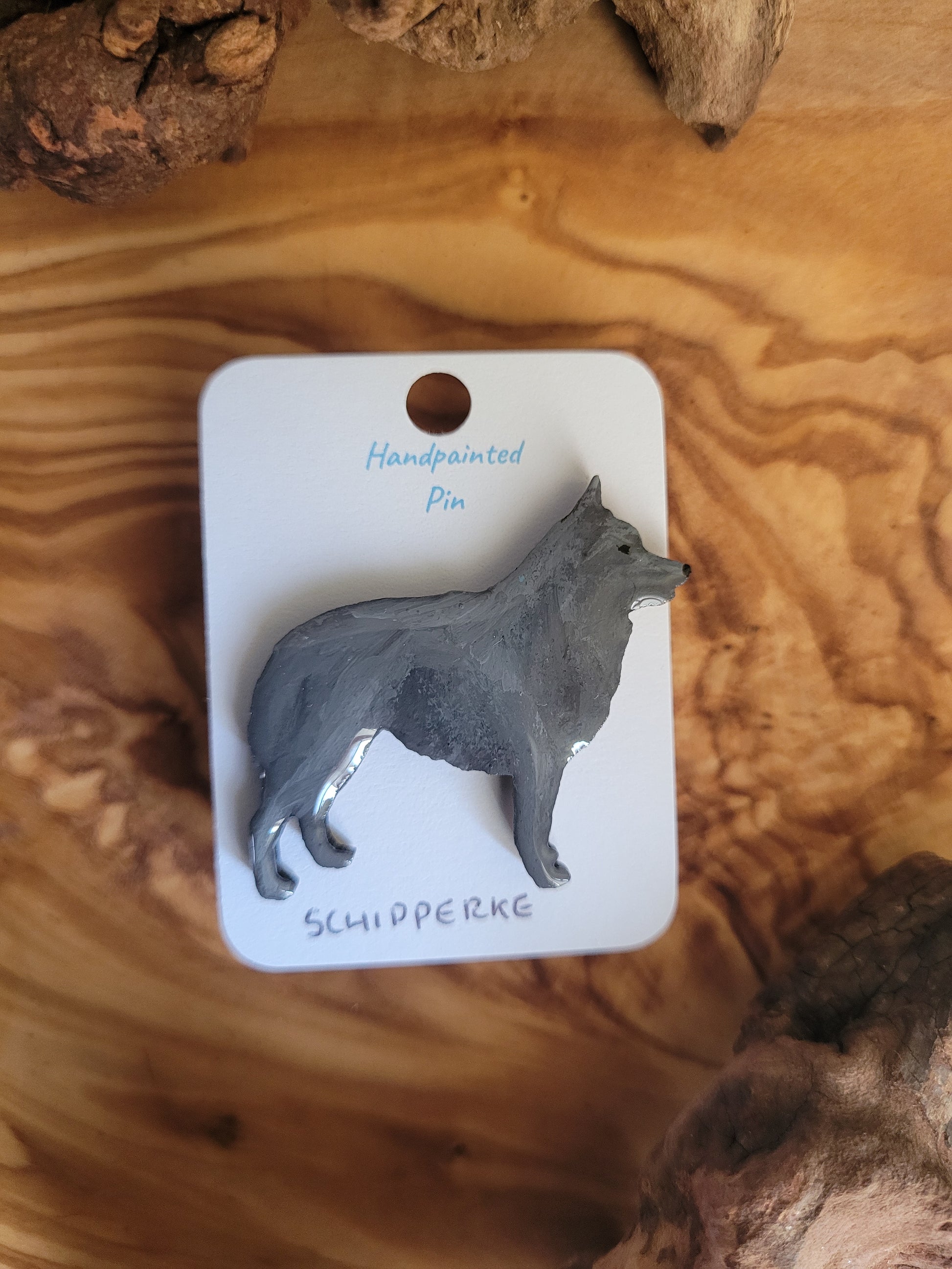 I paint each Schipperke pin by hand onto wood, then finish it with a glossy resin varnish to help it shine and stay protected for years to come. Each one is about 4 cm in size, just the right little companion for your jacket, bag, or pin board.