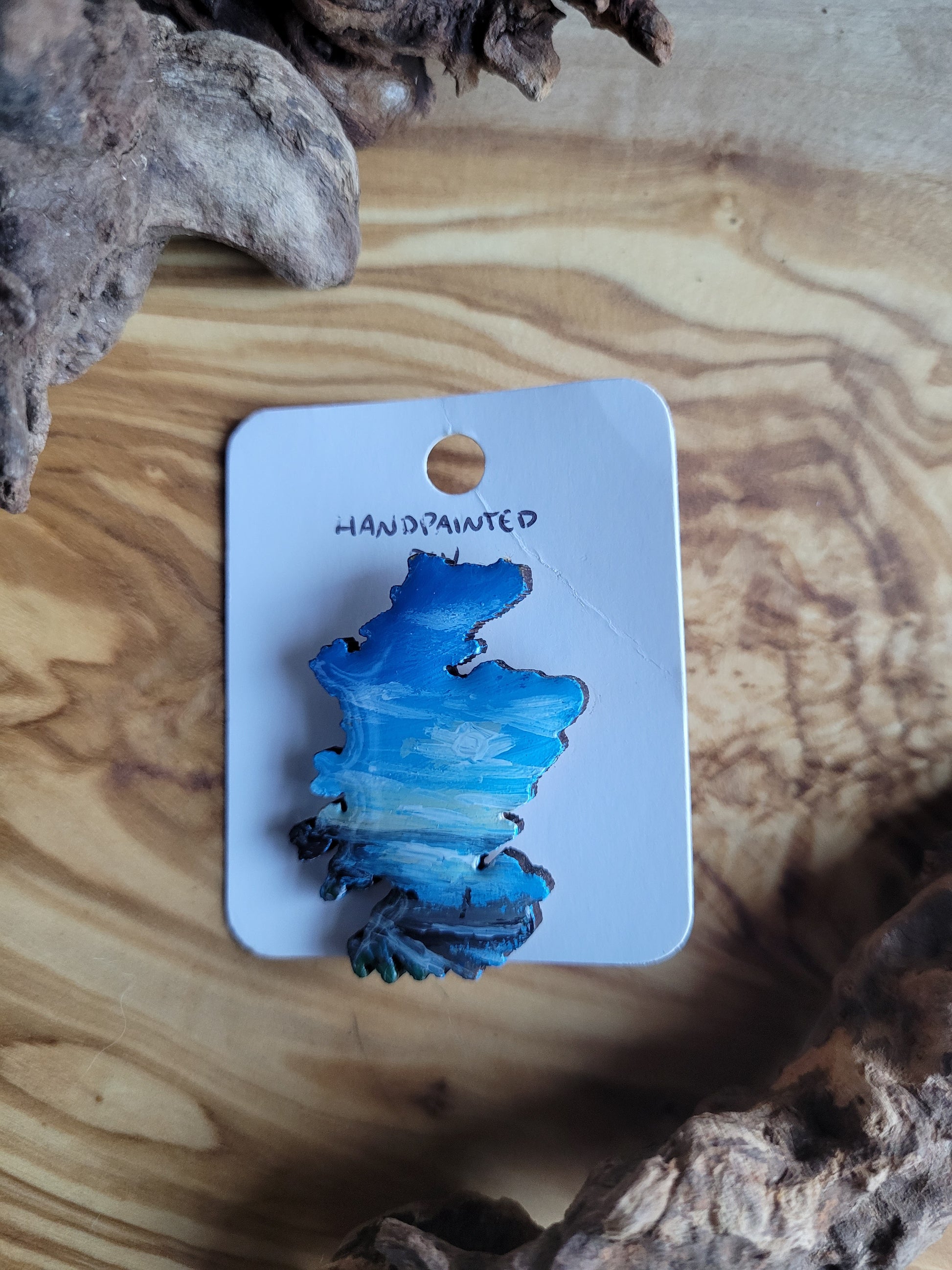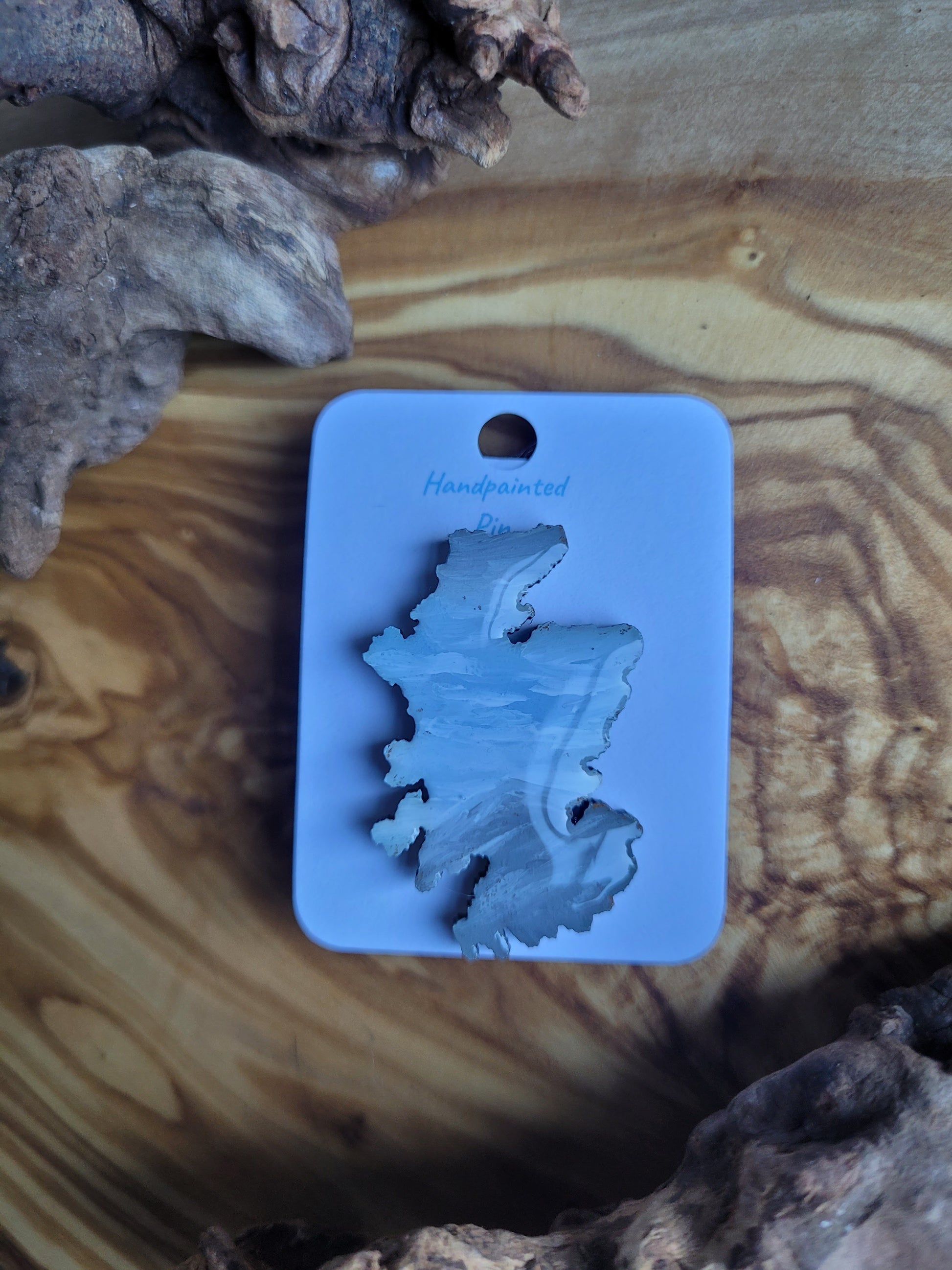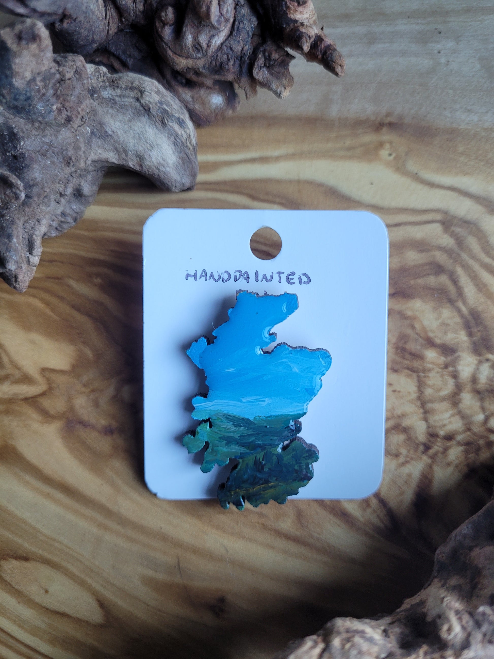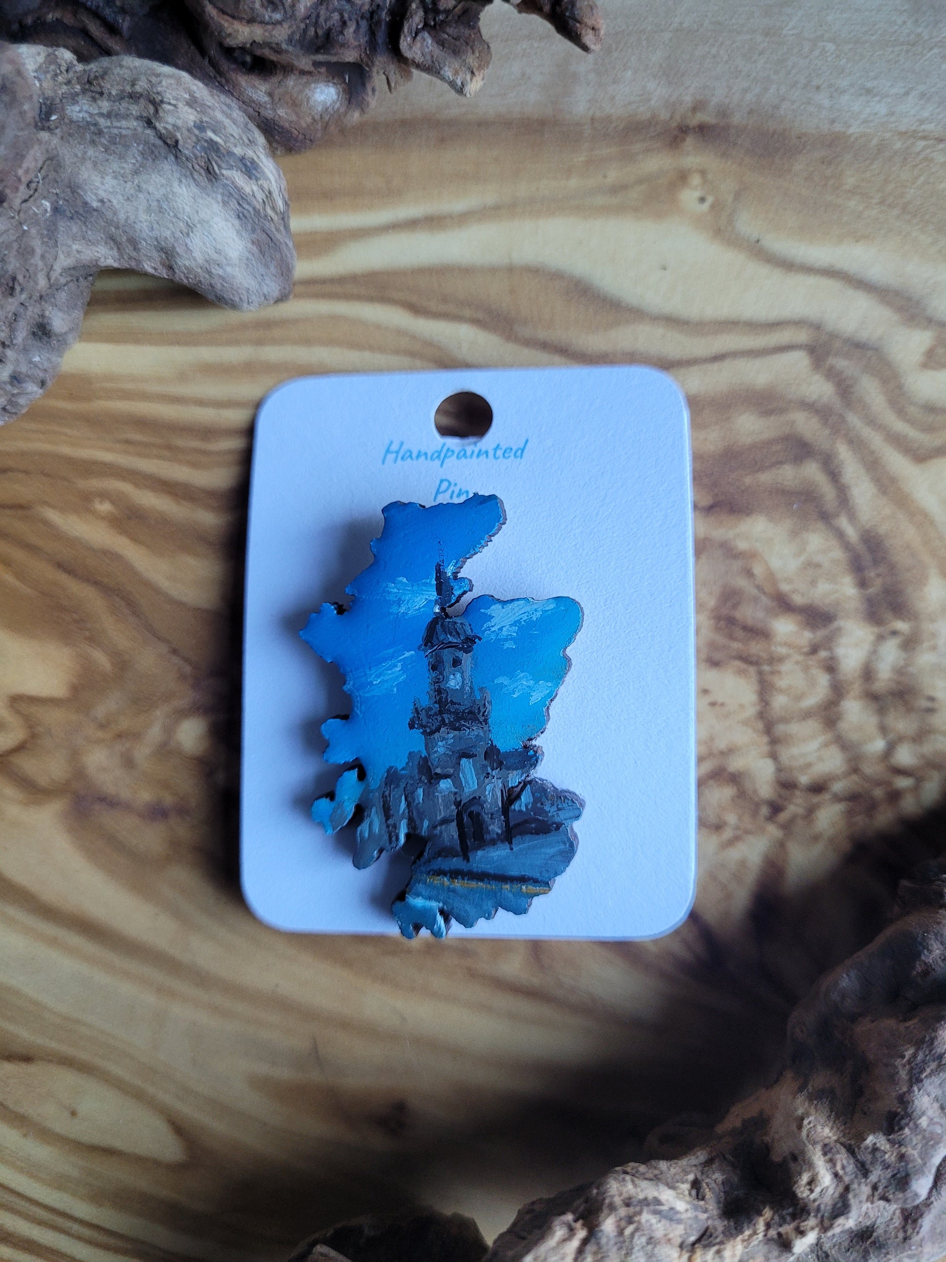 I paint each Scotland shaped pin by hand onto wood, then finish it with a glossy resin varnish to help it shine and stay protected for years to come. Each one is about 4 cm in size, just the right little companion for your jacket, bag, or pin board.