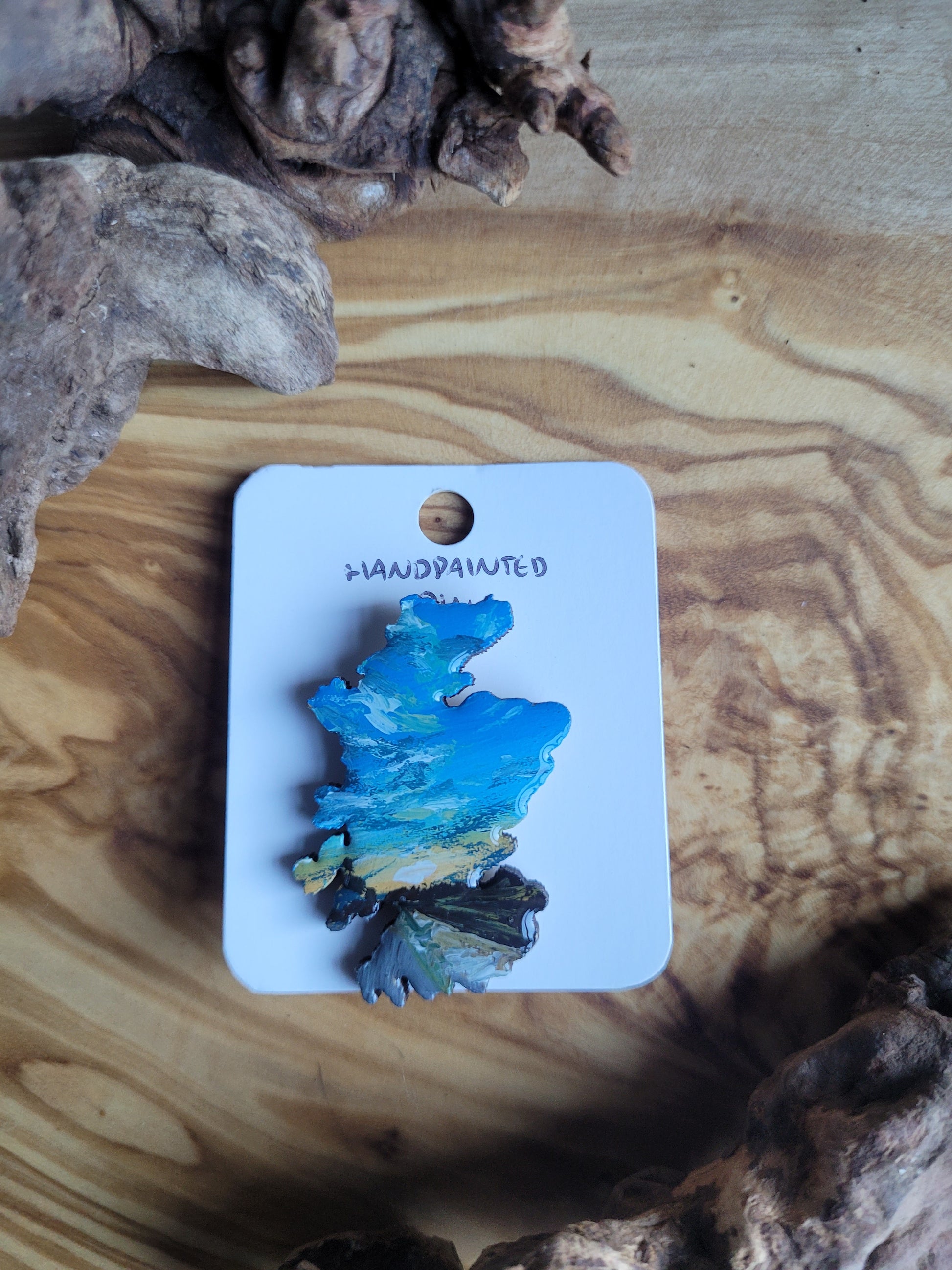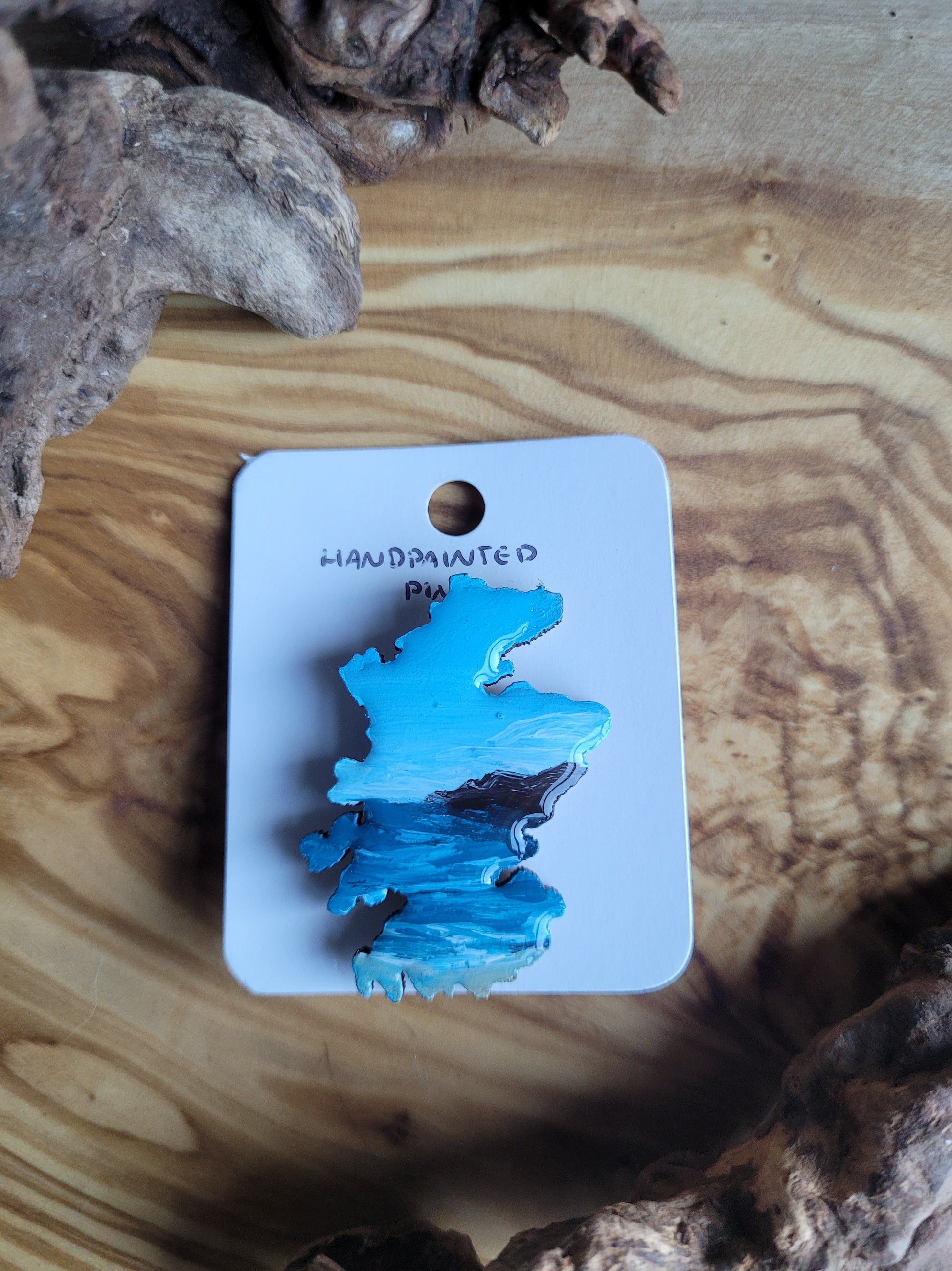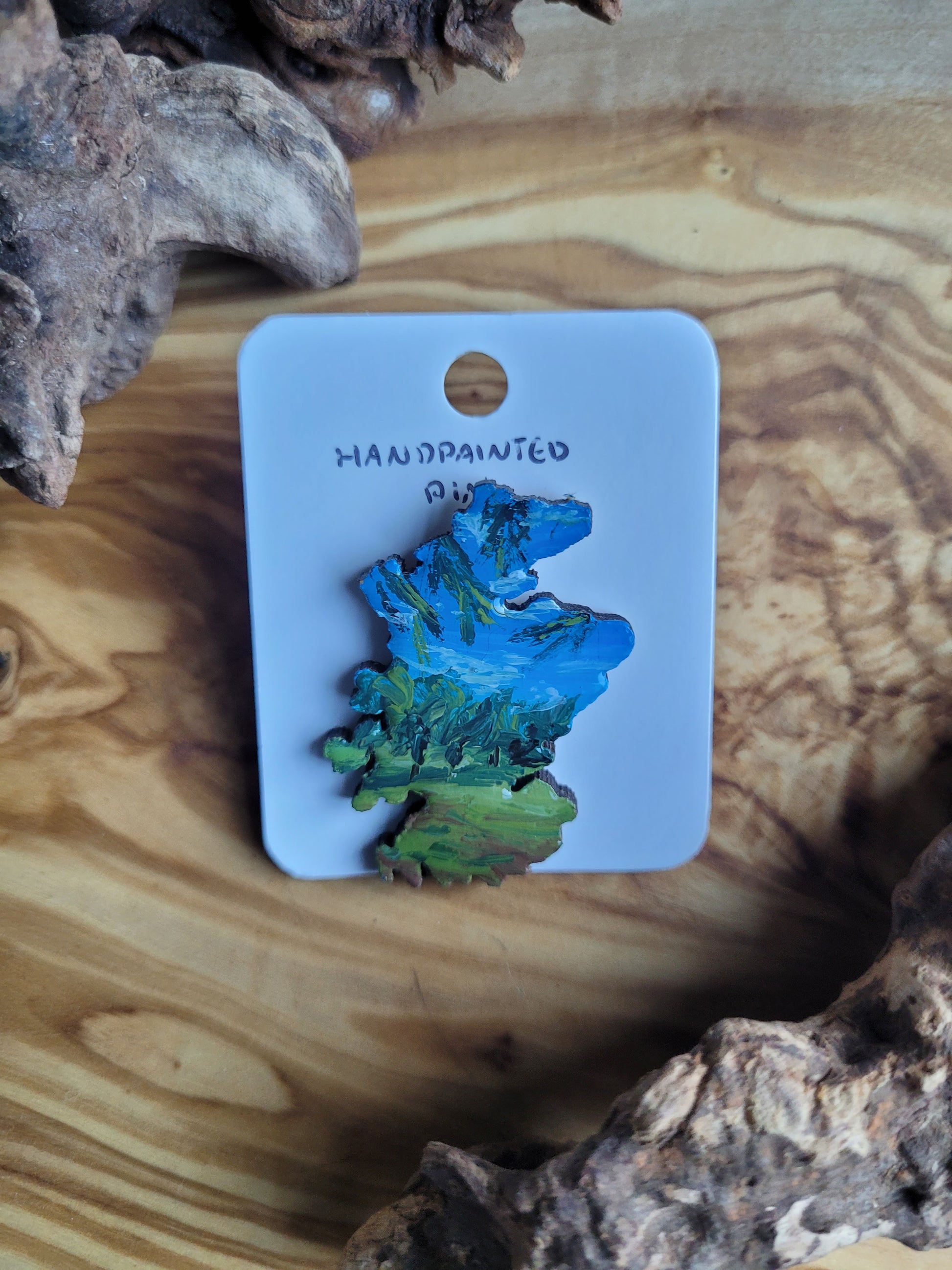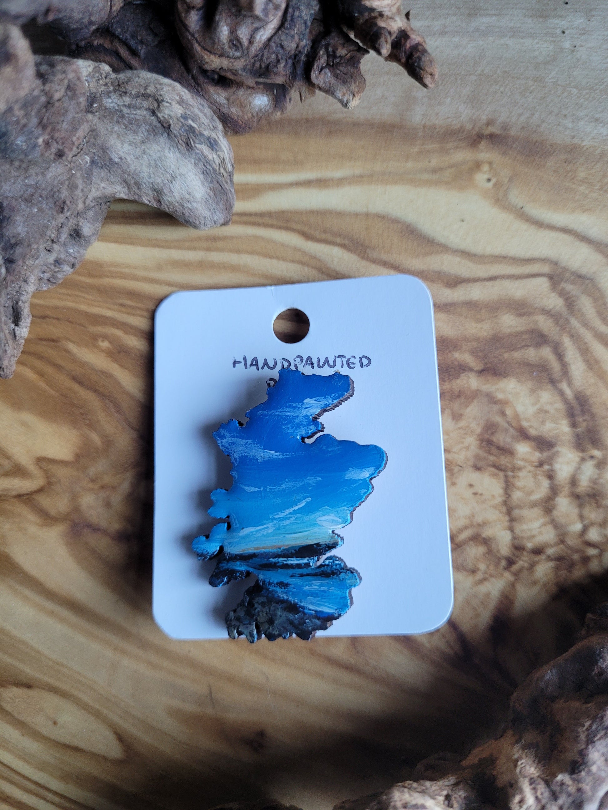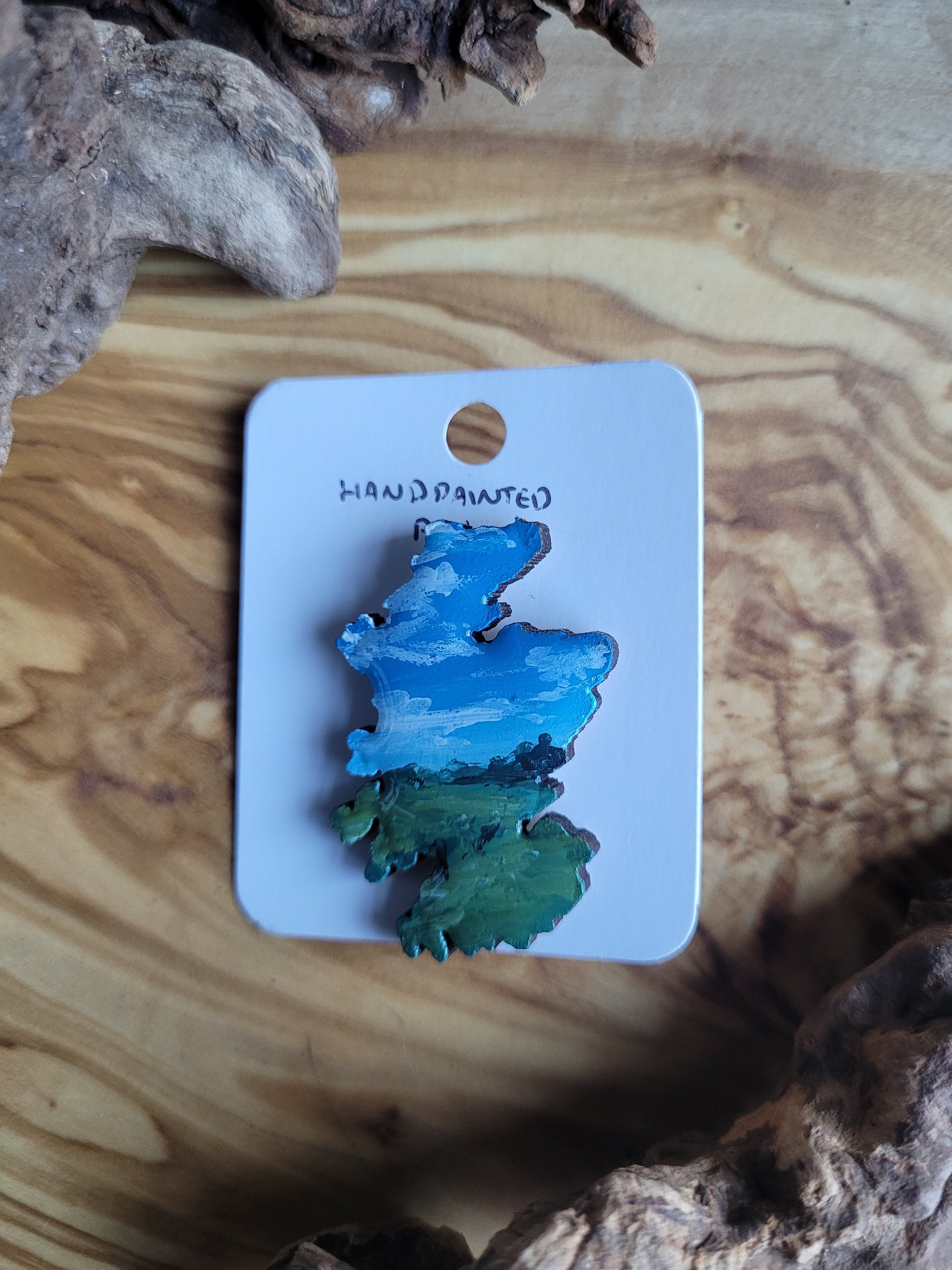 I paint each Scotland shaped pin by hand onto wood, then finish it with a glossy resin varnish to help it shine and stay protected for years to come. Each one is about 4 cm in size, just the right little companion for your jacket, bag, or pin board.