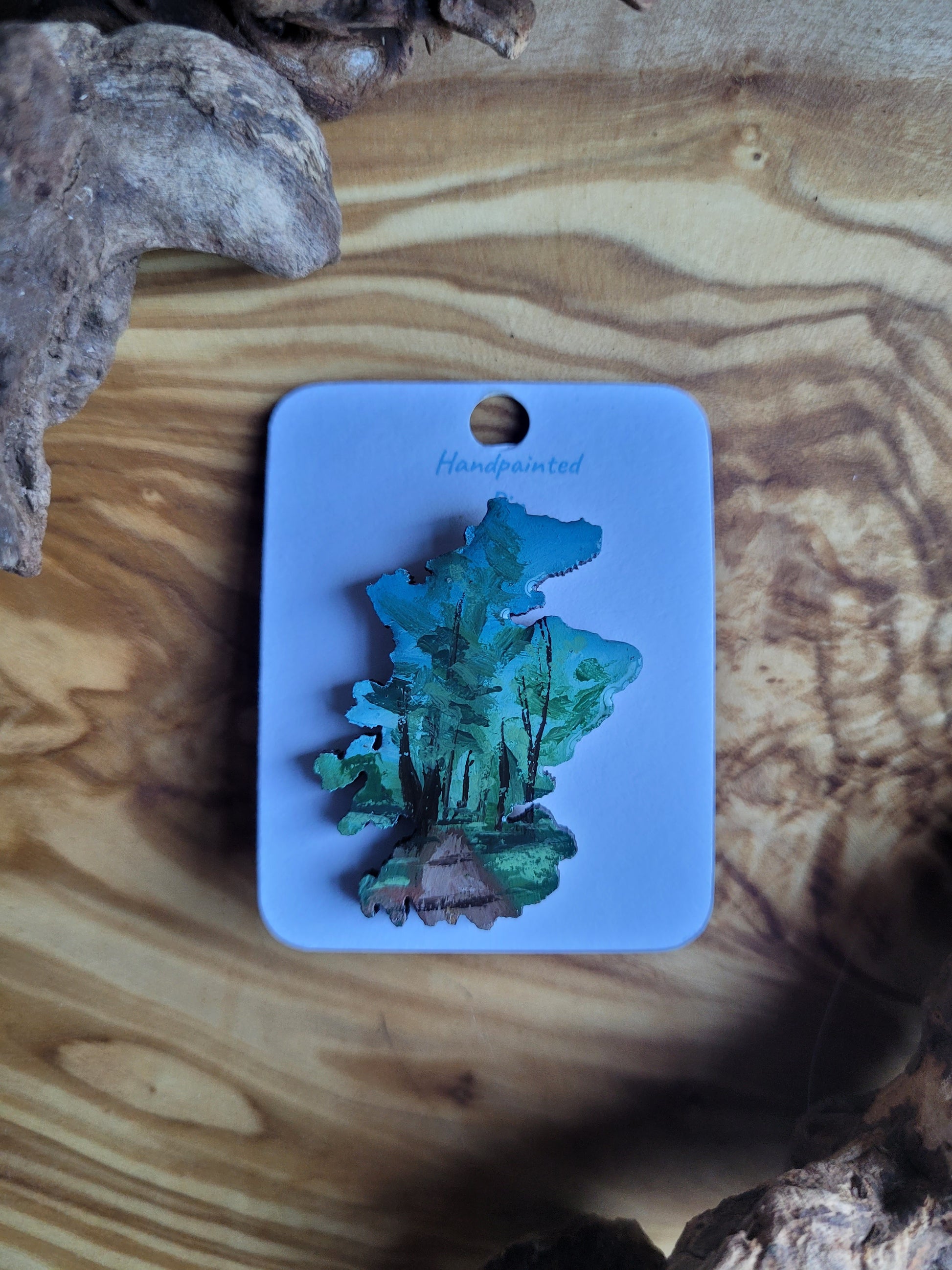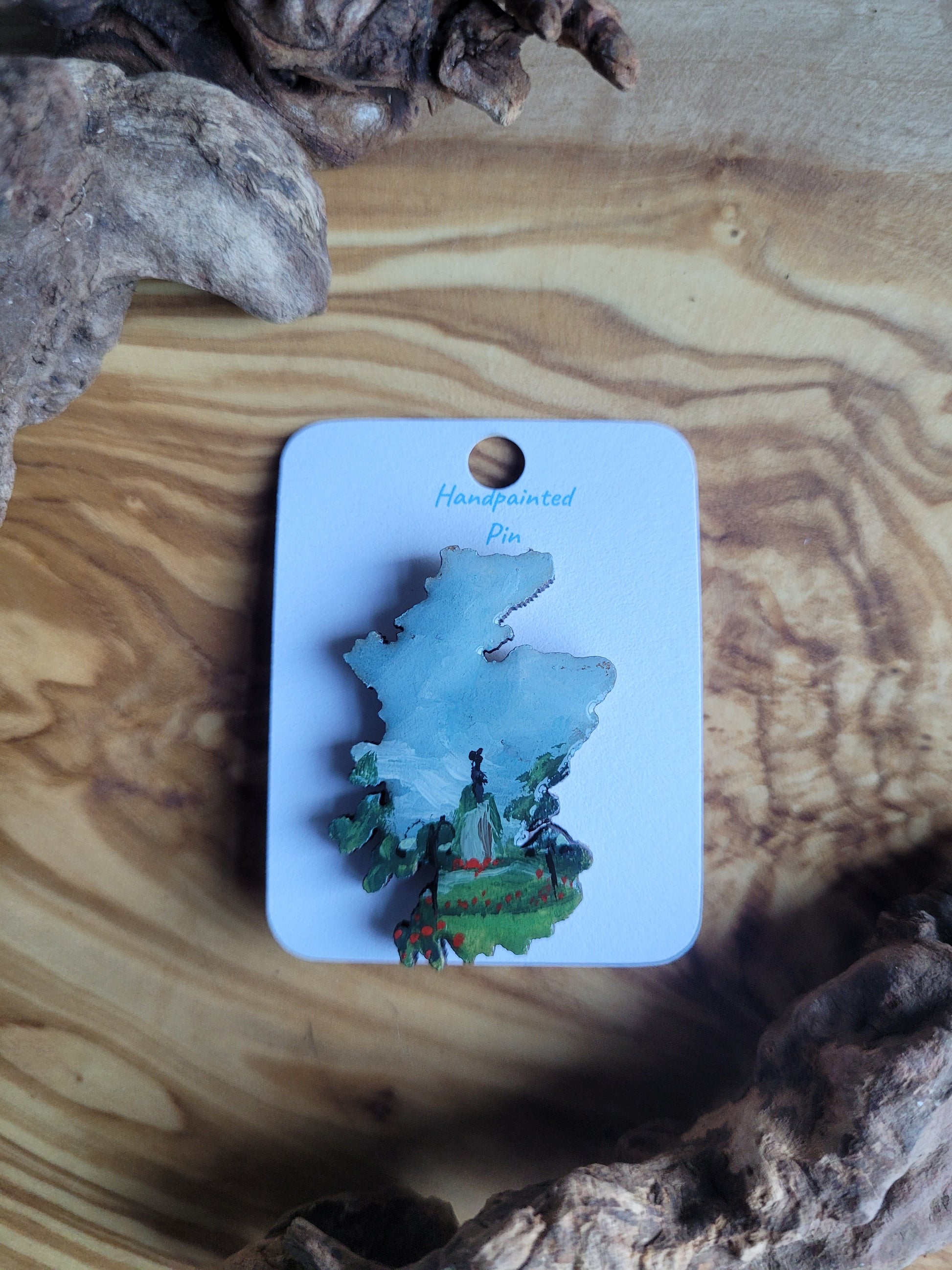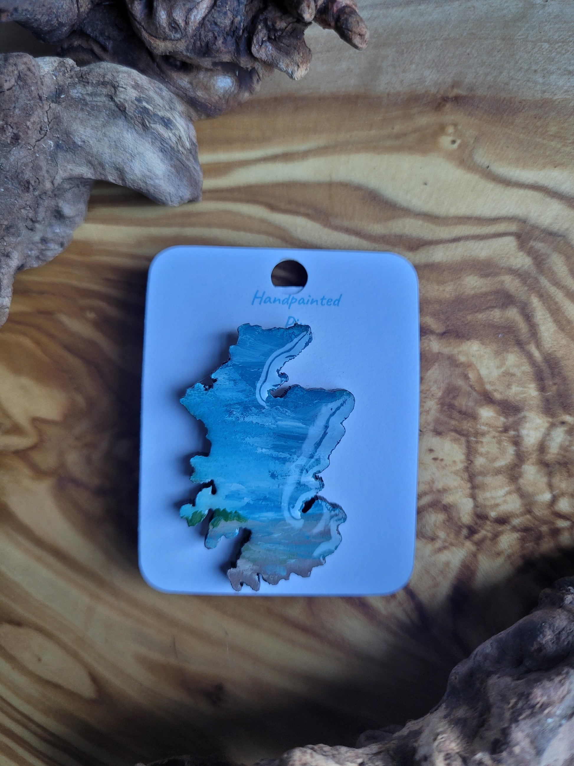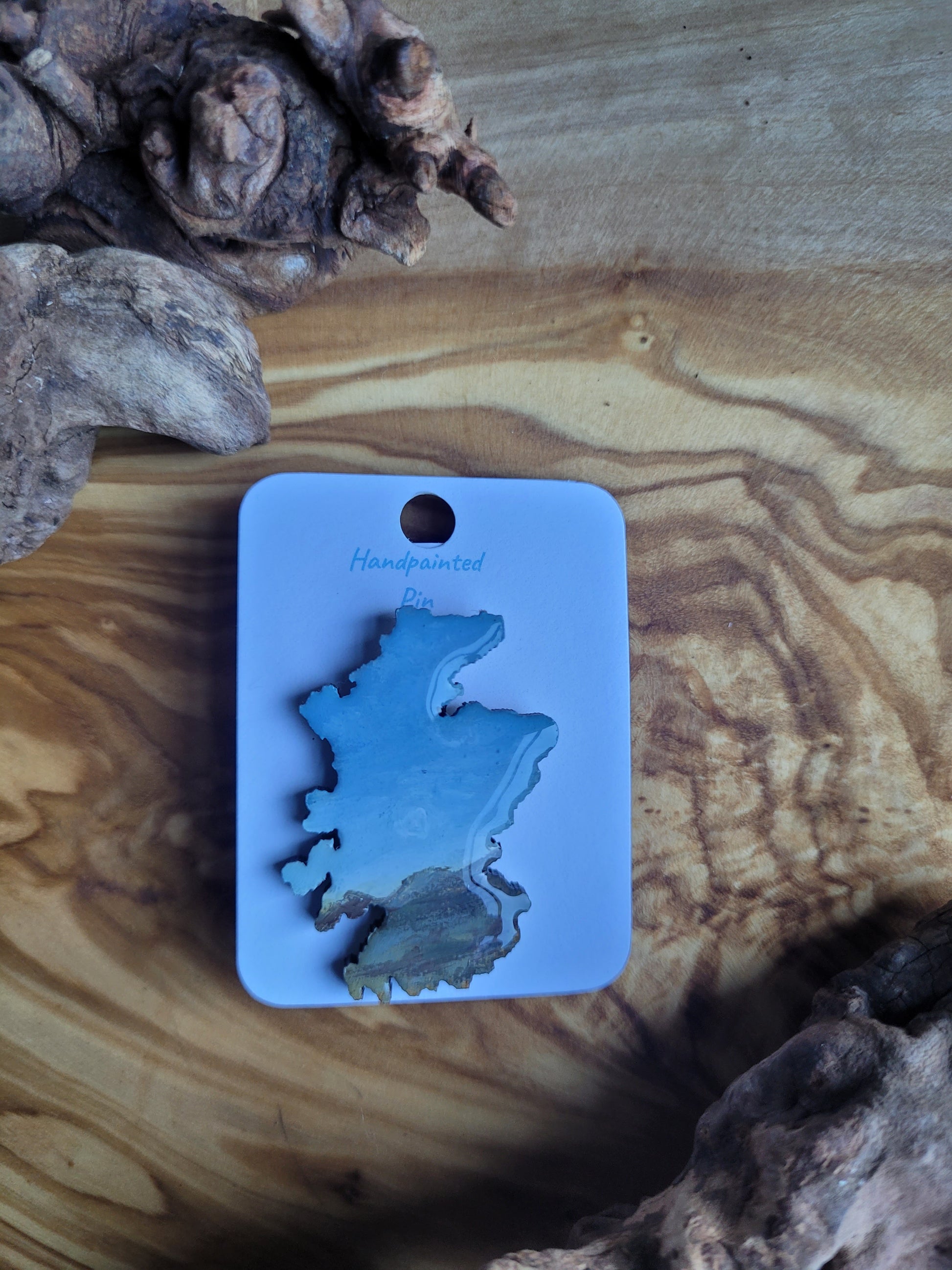 I paint each Scotland shaped pin by hand onto wood, then finish it with a glossy resin varnish to help it shine and stay protected for years to come. Each one is about 4 cm in size, just the right little companion for your jacket, bag, or pin board.