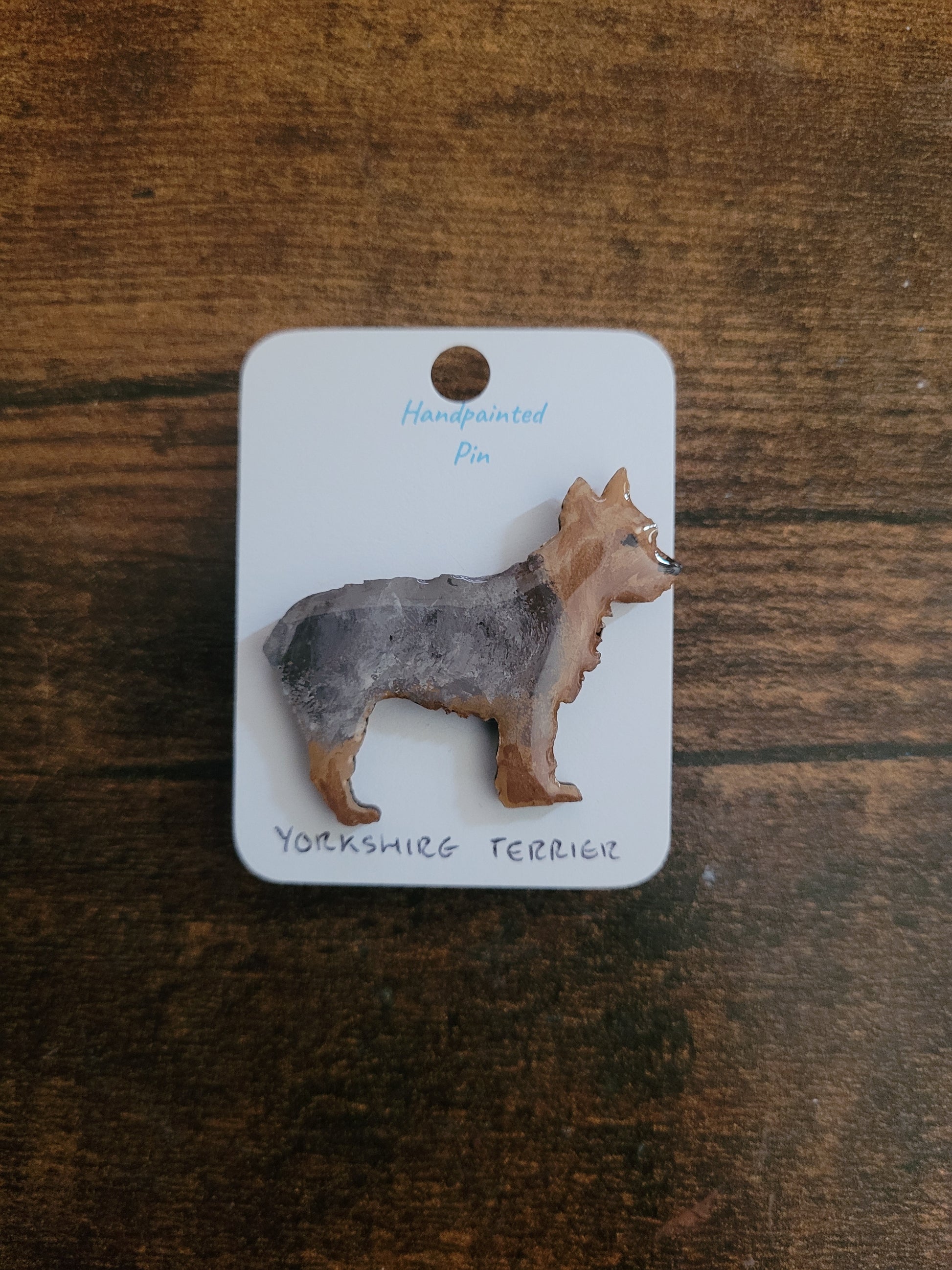 I paint each Yorkshire Terrier pin by hand onto wood, then finish it with a glossy resin varnish to help it shine and stay protected for years to come. Each one is about 4 cm in size, just the right little companion for your jacket, bag, or pin board.